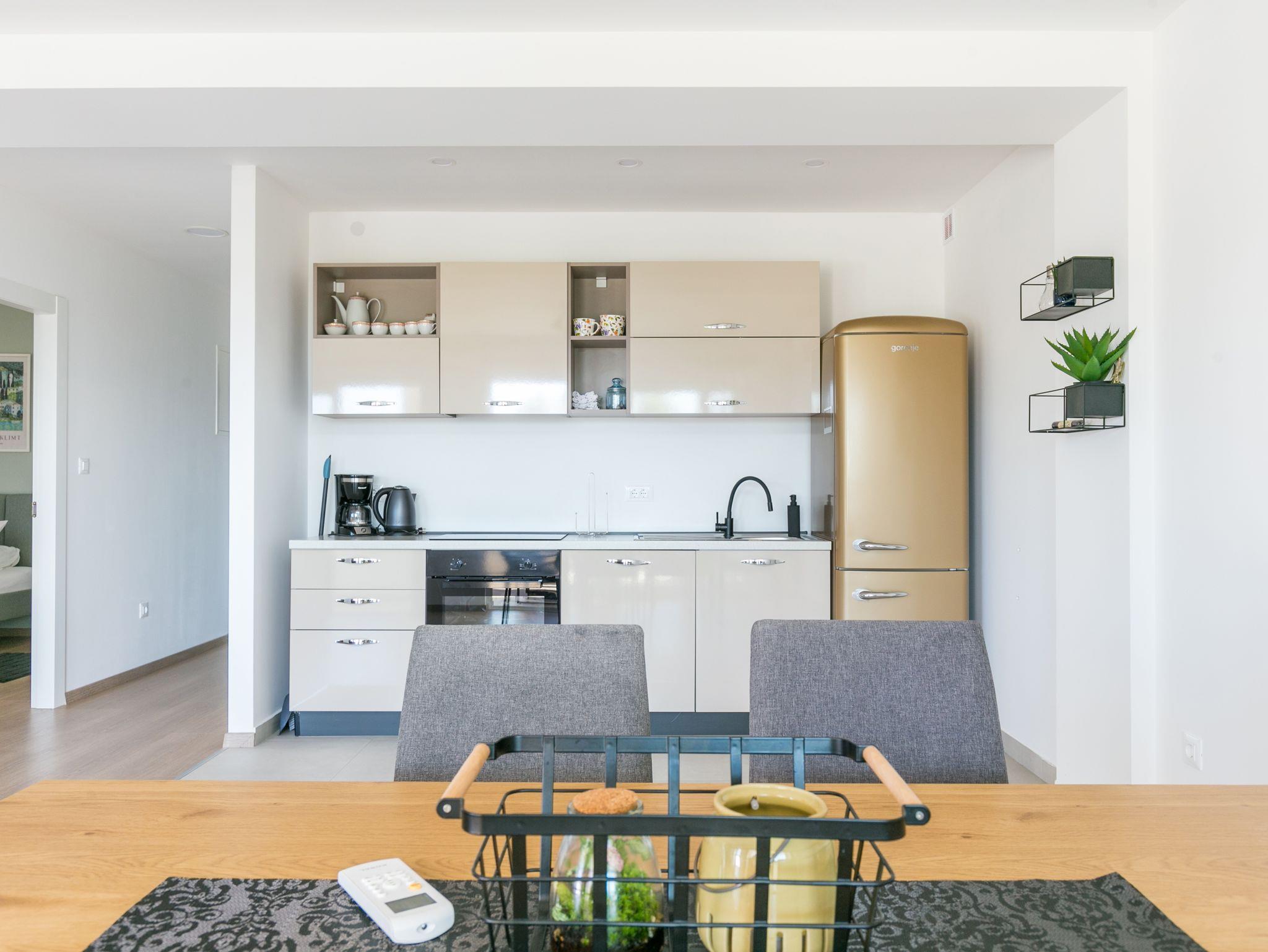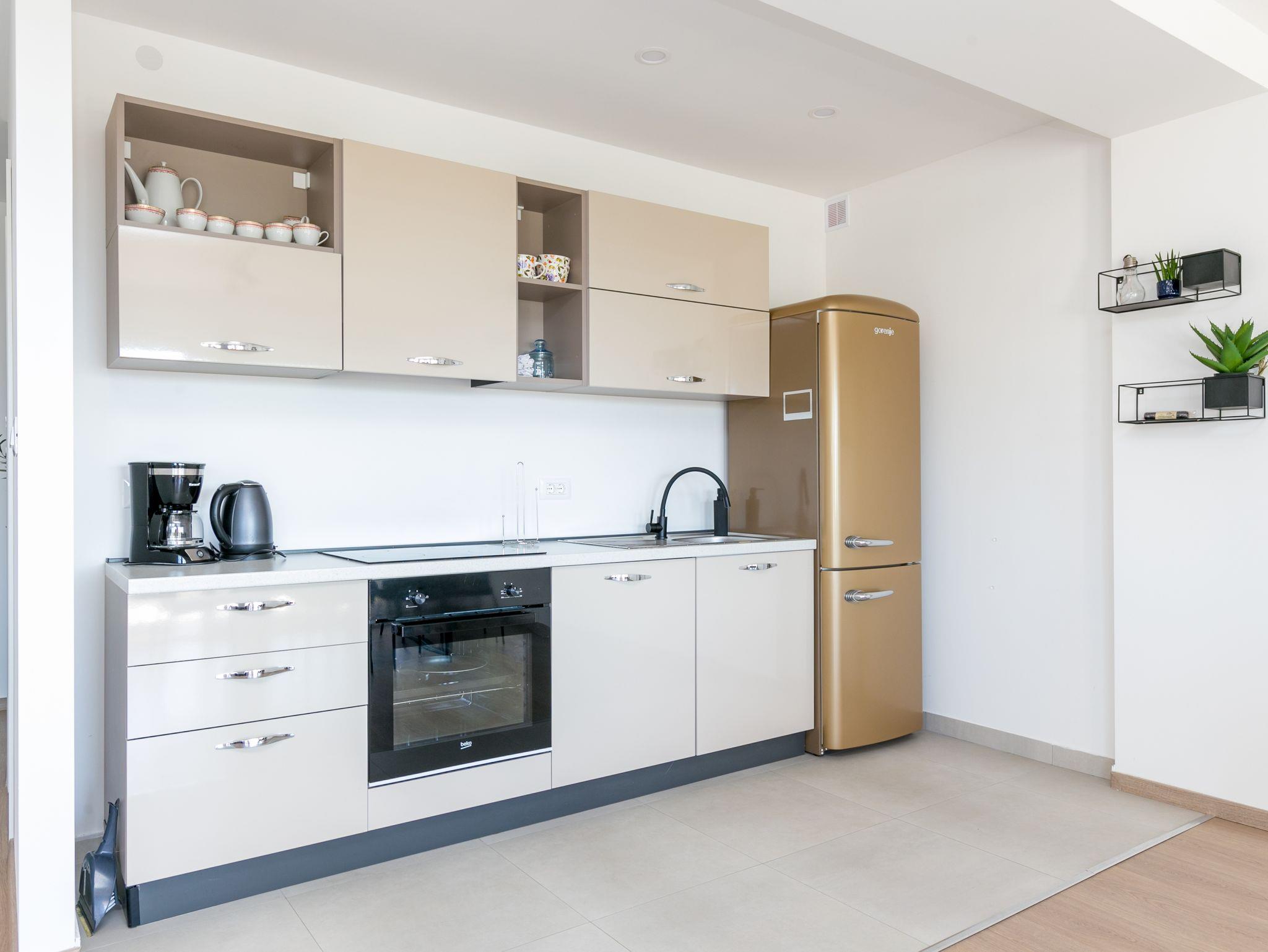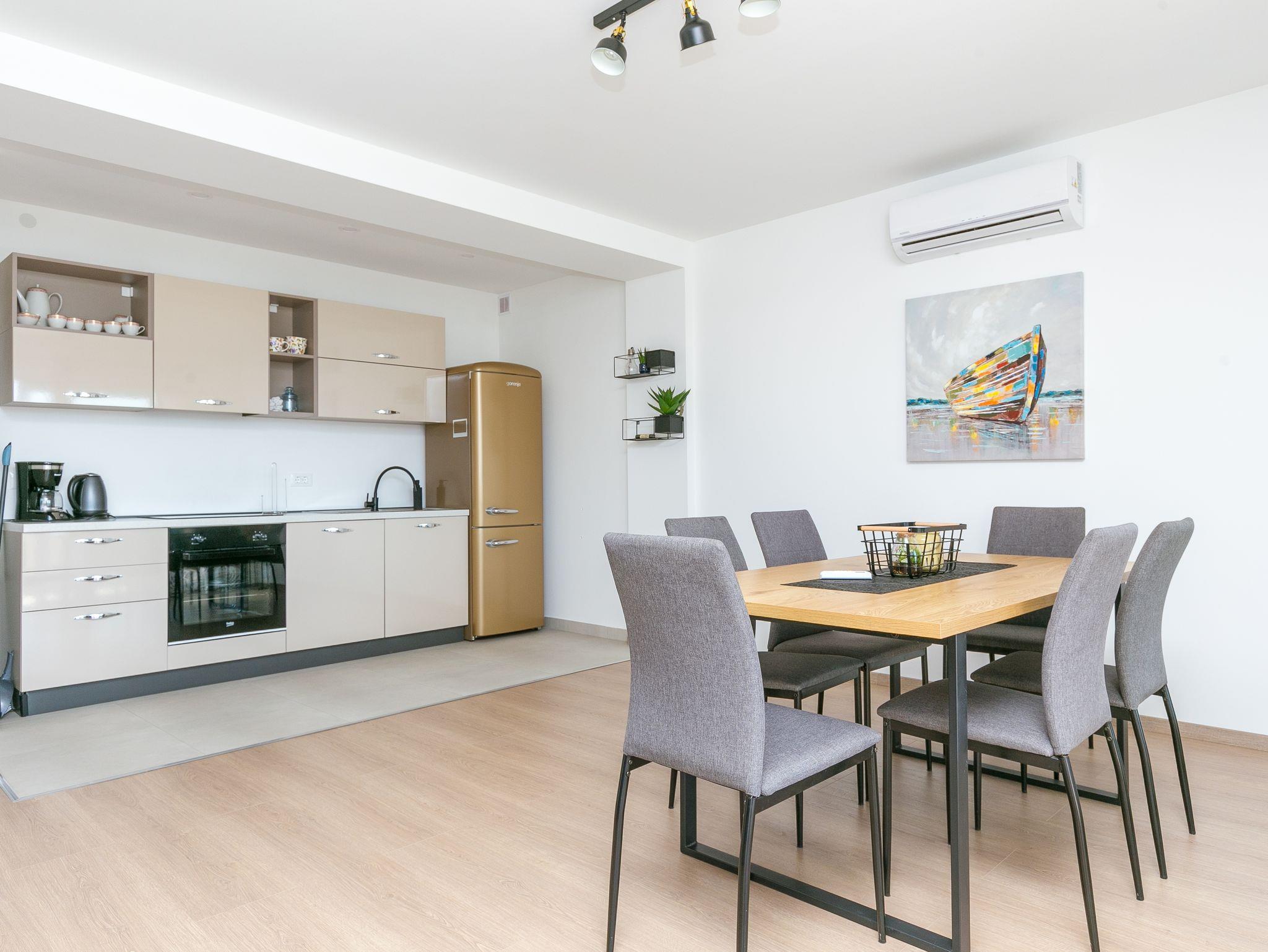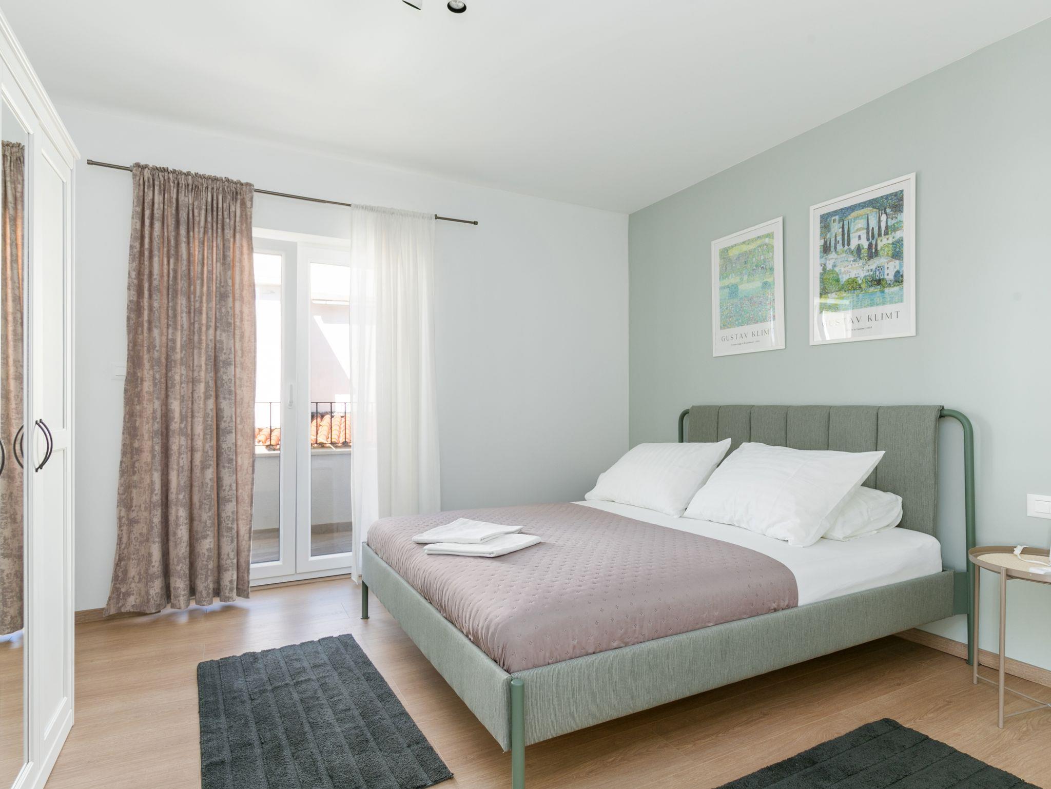Ferienwohnung bietet Platz für 4 Gäste. Die Betten sind in Schlafzimmern, die es 2 gibt, innerhalb einer Gesamtfläche von 89m2, angeordnet. Die Gäste haben eine eigene Terrasse zur Verfügung, auf der sie in warmen Sommernächten genießen können. Das Apartment bietet Meerblick. Es ist erlaubt, Speisen auf dem Gemeinschafts-Grill vorzubereiten. IM PREIS INBEGRIFFEN: Kurtaxe, Endreinigung, Klimatisierung, Parkplatz, Internet, Bügeleisen, Bügelbrett, Föhn, 2 Kinderbettchen (im Preis enthalten). VERBINDLICHE ZUSÄTZLICHE KOSTEN: Aufzahlung für Kurzaufenthalte (prozentualer Zuschlag pro Nächtigungsanzahl: 30% - 1, 20% - 2, 10% - 3). Die Verfügbarkeit zusätzlicher Dienstleistungen in Ihrem reservierten Termin und die Preise derselben (falls nicht aufgeführt) müssen im Voraus überprüft werden. Zusätzliche Dienstleistungen die in der Zahlungsaufforderung nicht aufgeführt sind werden direkt beim Vermieter bezahlt, angenommen der Gast nutzt auch diese.