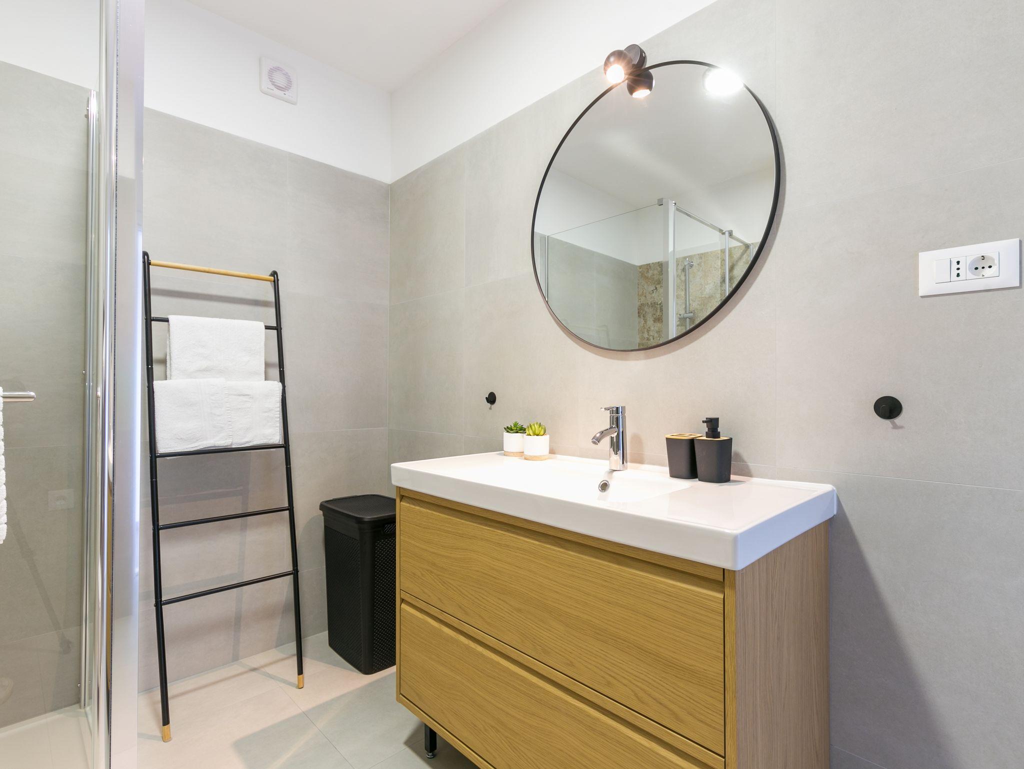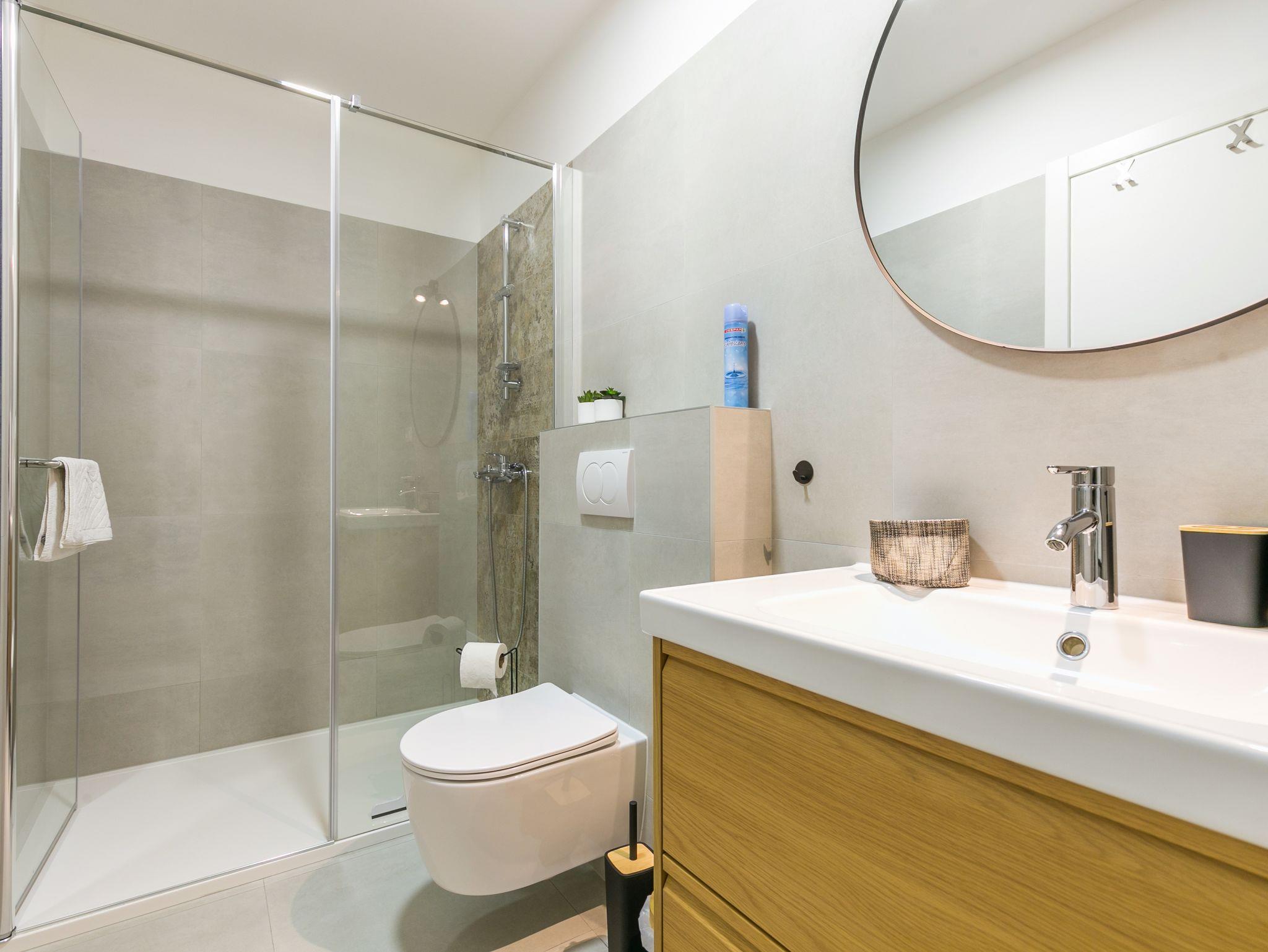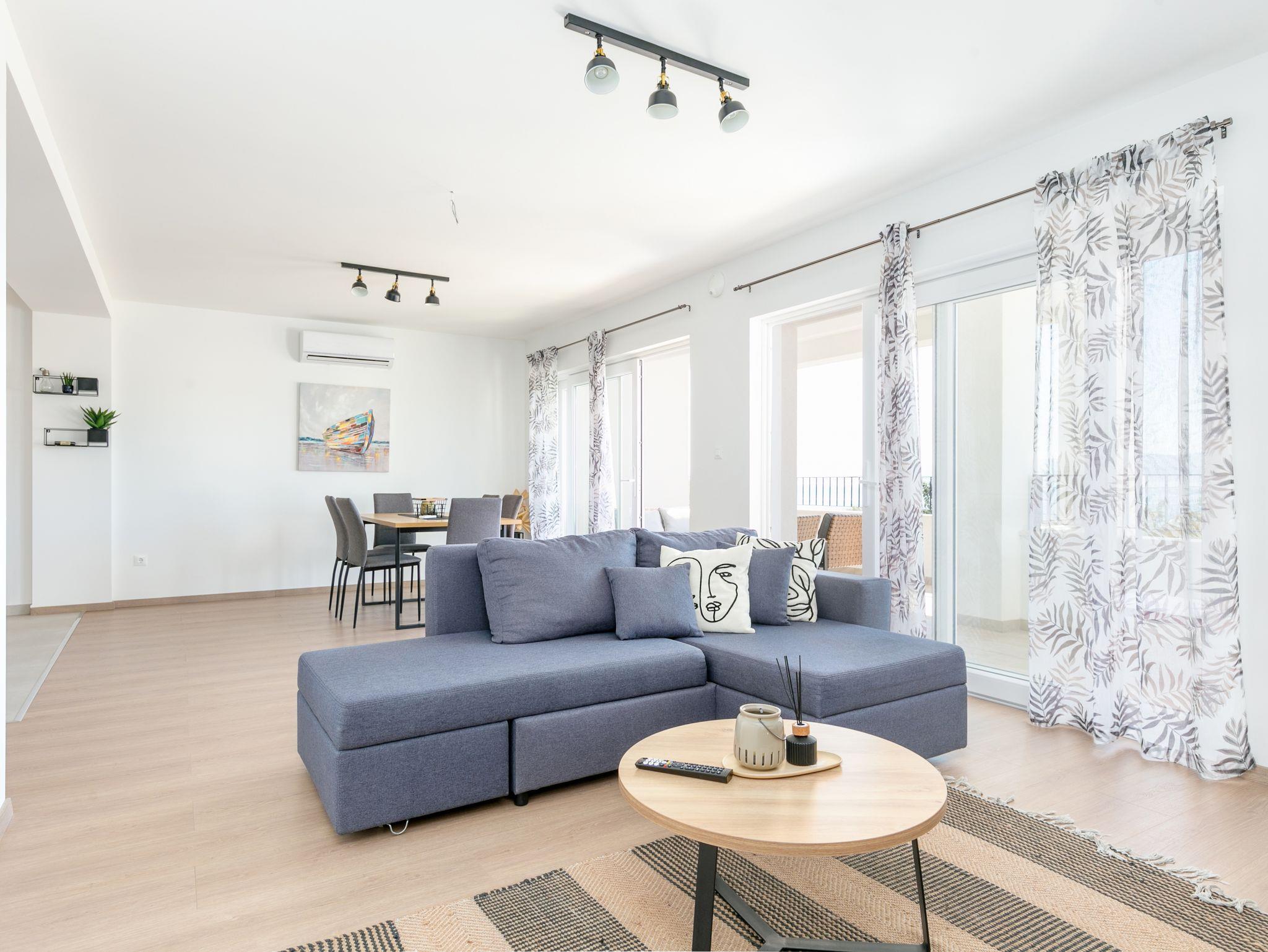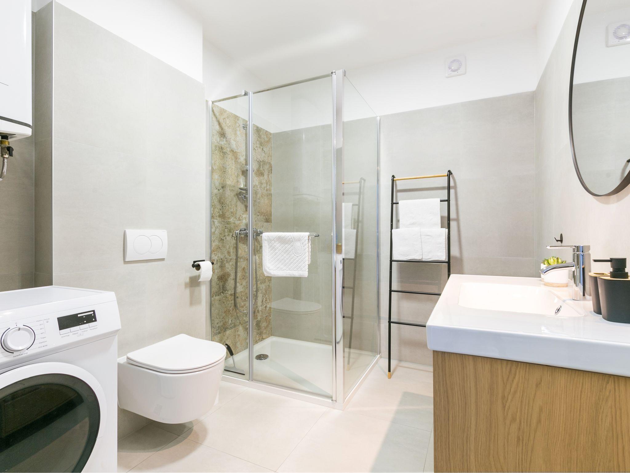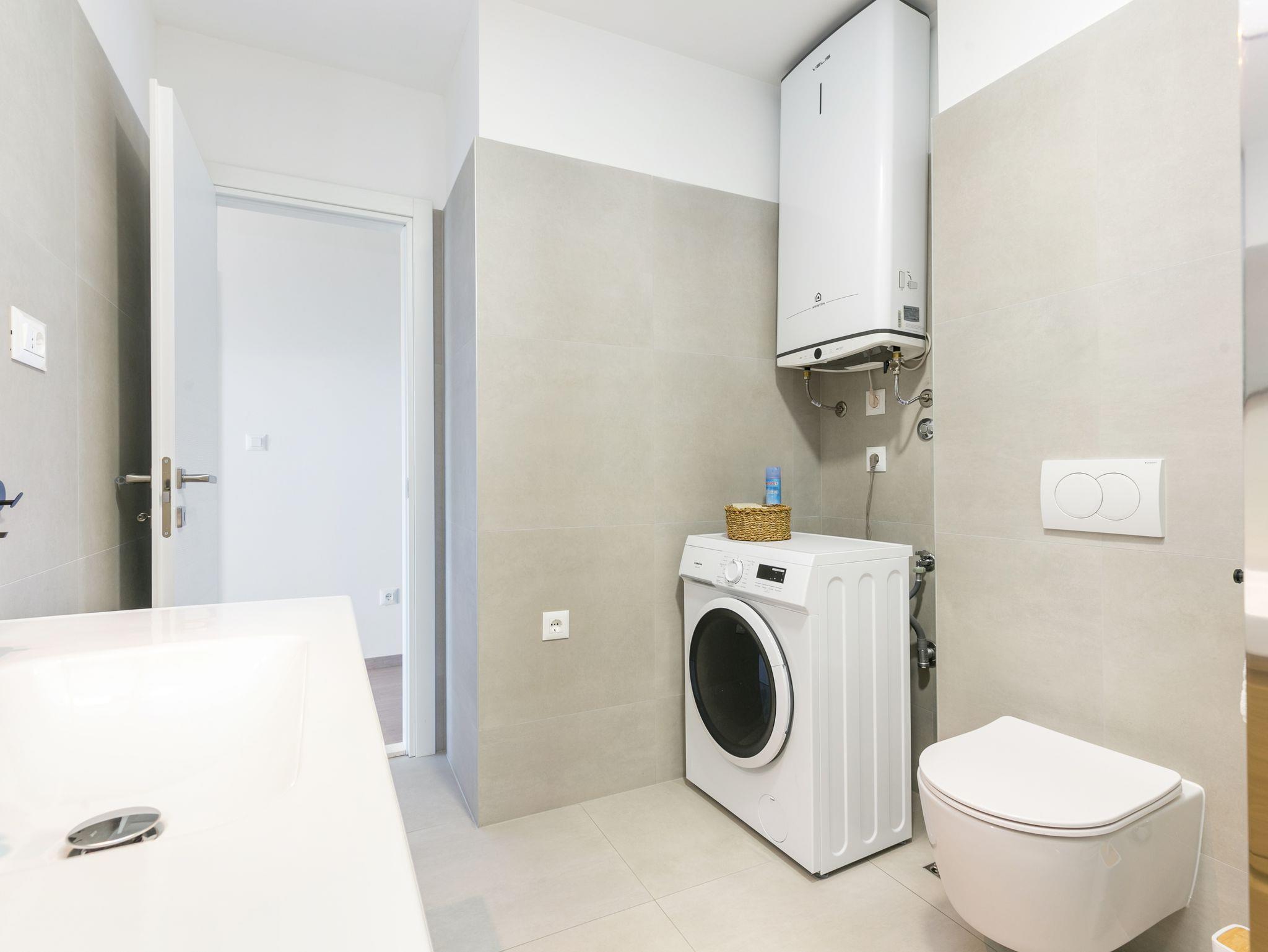 Ferienwohnung bietet Platz für 4 Gäste. Die Betten sind in Schlafzimmern, die es 2 gibt, innerhalb einer Gesamtfläche von 89m2, angeordnet. Die Gäste haben eine eigene Terrasse zur Verfügung, auf der sie in warmen Sommernächten genießen können. Das Apartment bietet Meerblick. Es ist erlaubt, Speisen auf dem Gemeinschafts-Grill vorzubereiten. IM PREIS INBEGRIFFEN: Kurtaxe, Endreinigung, Klimatisierung, Parkplatz, Internet, Bügeleisen, Bügelbrett, Föhn, 2 Kinderbettchen (im Preis enthalten). VERBINDLICHE ZUSÄTZLICHE KOSTEN: Aufzahlung für Kurzaufenthalte (prozentualer Zuschlag pro Nächtigungsanzahl: 30% - 1, 20% - 2, 10% - 3). Die Verfügbarkeit zusätzlicher Dienstleistungen in Ihrem reservierten Termin und die Preise derselben (falls nicht aufgeführt) müssen im Voraus überprüft werden. Zusätzliche Dienstleistungen die in der Zahlungsaufforderung nicht aufgeführt sind werden direkt beim Vermieter bezahlt, angenommen der Gast nutzt auch diese.