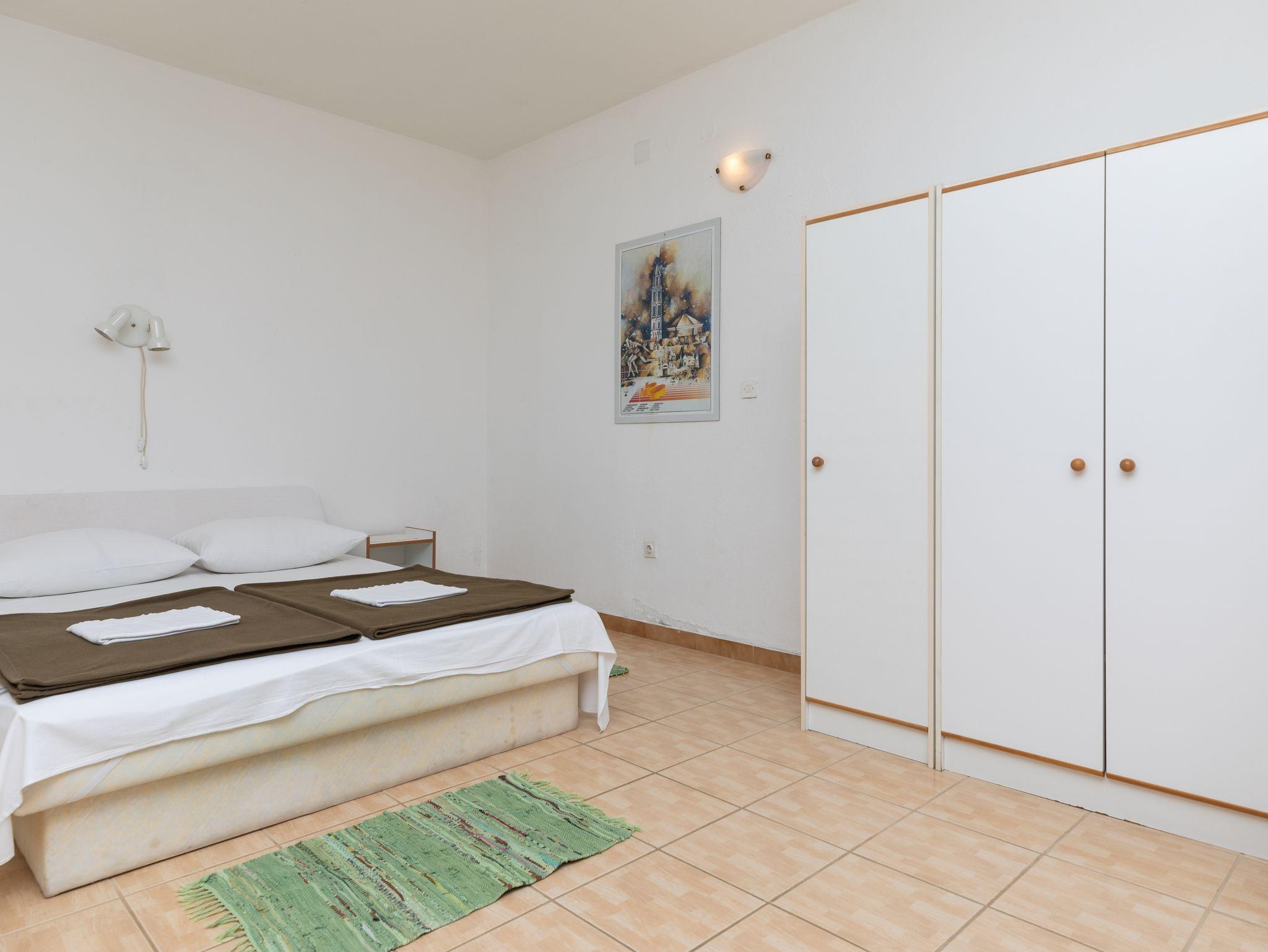 Ferienwohnung bietet Platz für 2 Gäste. Die Betten sind in Schlafzimmern, die es 1 gibt, innerhalb einer Gesamtfläche von 38m2, angeordnet. Die Gäste haben eine eigene Terrasse zur Verfügung, auf der sie in warmen Sommernächten genießen können. Das Apartment bietet Meerblick. Es ist erlaubt, Speisen auf dem Gemeinschafts-Grill vorzubereiten. In der Unterkunftseinheit besteht die Möglichkeit des Mitbringens von Haustieren gegen Aufpreis. IM PREIS INBEGRIFFEN: Kurtaxe, Endreinigung, Parkplatz, Internet, Wäschewaschen, Kinderbett, Bügeleisen, Föhn, Sonnenschirm. VERBINDLICHE ZUSÄTZLICHE KOSTEN: Aufzahlung für Kurzaufenthalte (prozentualer Zuschlag pro Nächtigungsanzahl: 30% - 1, 20% - 2, 10% - 3). UNVERBINDLICHE ZUSÄTZLICHE KOSTEN: Klimatisierung (0,30 € pro Stunde), Haustiere (5,00 € pro Nacht), Zusatzbett (5,00 € pro Nacht). Die Verfügbarkeit zusätzlicher Dienstleistungen in Ihrem reservierten Termin und die Preise derselben (falls nicht aufgeführt) müssen im Voraus überprüft werden. Zusätzliche Dienstleistungen die in der Zahlungsaufforderung nicht aufgeführt sind werden direkt beim Vermieter bezahlt, angenommen der Gast nutzt auch diese.