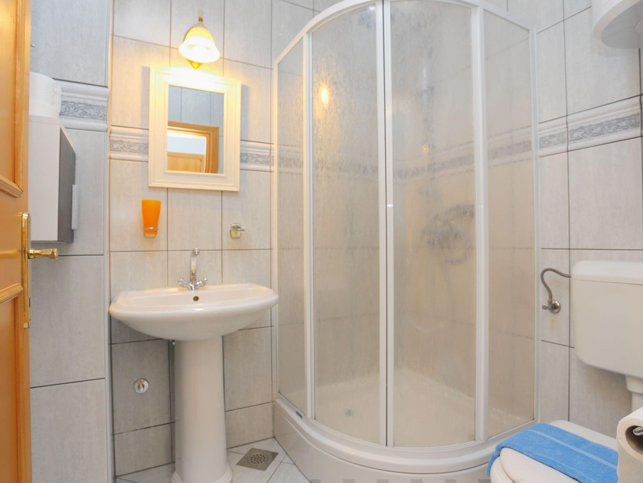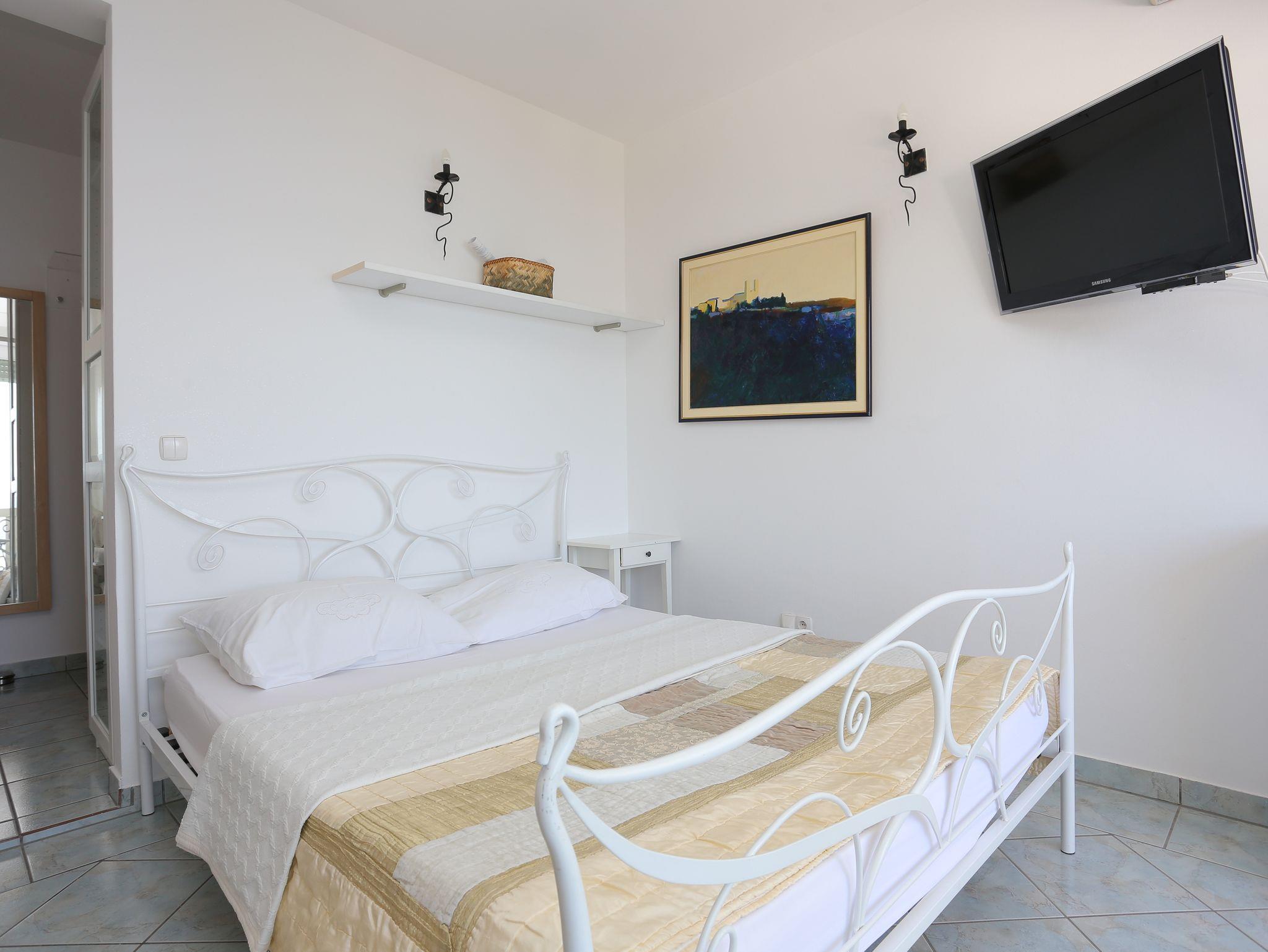Studio bietet Platz für 2 Gäste. Die Betten sind in Schlafzimmern, die es 1 gibt, innerhalb einer Gesamtfläche von 17m2, angeordnet. Die Gäste haben eine eigene Terrasse zur Verfügung, auf der sie in warmen Sommernächten genießen können. Das Studio-Apartment bietet Meerblick. Es ist erlaubt, Speisen auf dem Gemeinschafts-Grill vorzubereiten. In der Unterkunftseinheit besteht die Möglichkeit des Mitbringens von Haustieren gegen Aufpreis. IM PREIS INBEGRIFFEN: Kurtaxe, Endreinigung, Klimatisierung, Parkplatz, Internet, Kinderbett, Bügeleisen, Bügelbrett, Föhn. VERBINDLICHE ZUSÄTZLICHE KOSTEN: Aufzahlung für Kurzaufenthalte (prozentualer Zuschlag pro Nächtigungsanzahl: 30% - 1, 20% - 2, 10% - 3). UNVERBINDLICHE ZUSÄTZLICHE KOSTEN: Haustiere (5,00 € pro Nacht). Die Verfügbarkeit zusätzlicher Dienstleistungen in Ihrem reservierten Termin und die Preise derselben (falls nicht aufgeführt) müssen im Voraus überprüft werden. Zusätzliche Dienstleistungen die in der Zahlungsaufforderung nicht aufgeführt sind werden direkt beim Vermieter bezahlt, angenommen der Gast nutzt auch diese.