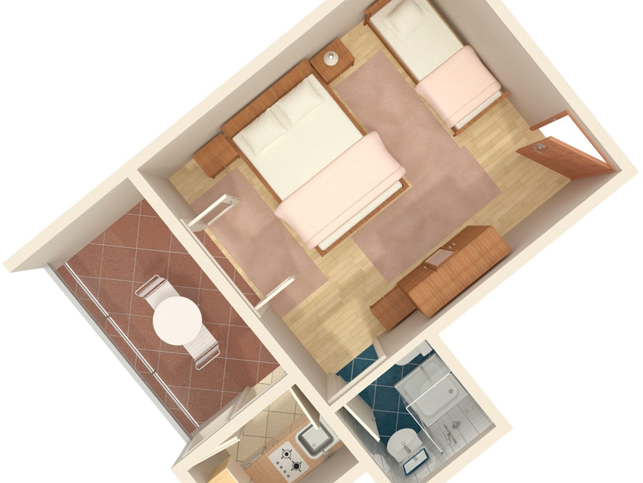 Studio bietet Platz für 3 Gäste. Die Betten sind in Schlafzimmern, die es 1 gibt, innerhalb einer Gesamtfläche von 19m2, angeordnet. Die Gäste haben eine eigene Terrasse zur Verfügung, auf der sie in warmen Sommernächten genießen können. Es ist erlaubt, Speisen auf dem Gemeinschafts-Grill vorzubereiten. Unterkunftseinheit hat Räume, die von dem Rest der Einheit abgetrennt werden. IM PREIS INBEGRIFFEN: Kurtaxe, Endreinigung, Parkplatz, Internet, Bügeleisen, Bügelbrett, Föhn, tragbarer Grill. VERBINDLICHE ZUSÄTZLICHE KOSTEN: Aufzahlung für Kurzaufenthalte (prozentualer Zuschlag pro Nächtigungsanzahl: 30% - 1, 20% - 2, 10% - 3). UNVERBINDLICHE ZUSÄTZLICHE KOSTEN: Klimatisierung (5,00 € pro Nacht). Die Verfügbarkeit zusätzlicher Dienstleistungen in Ihrem reservierten Termin und die Preise derselben (falls nicht aufgeführt) müssen im Voraus überprüft werden. Zusätzliche Dienstleistungen die in der Zahlungsaufforderung nicht aufgeführt sind werden direkt beim Vermieter bezahlt, angenommen der Gast nutzt auch diese.
