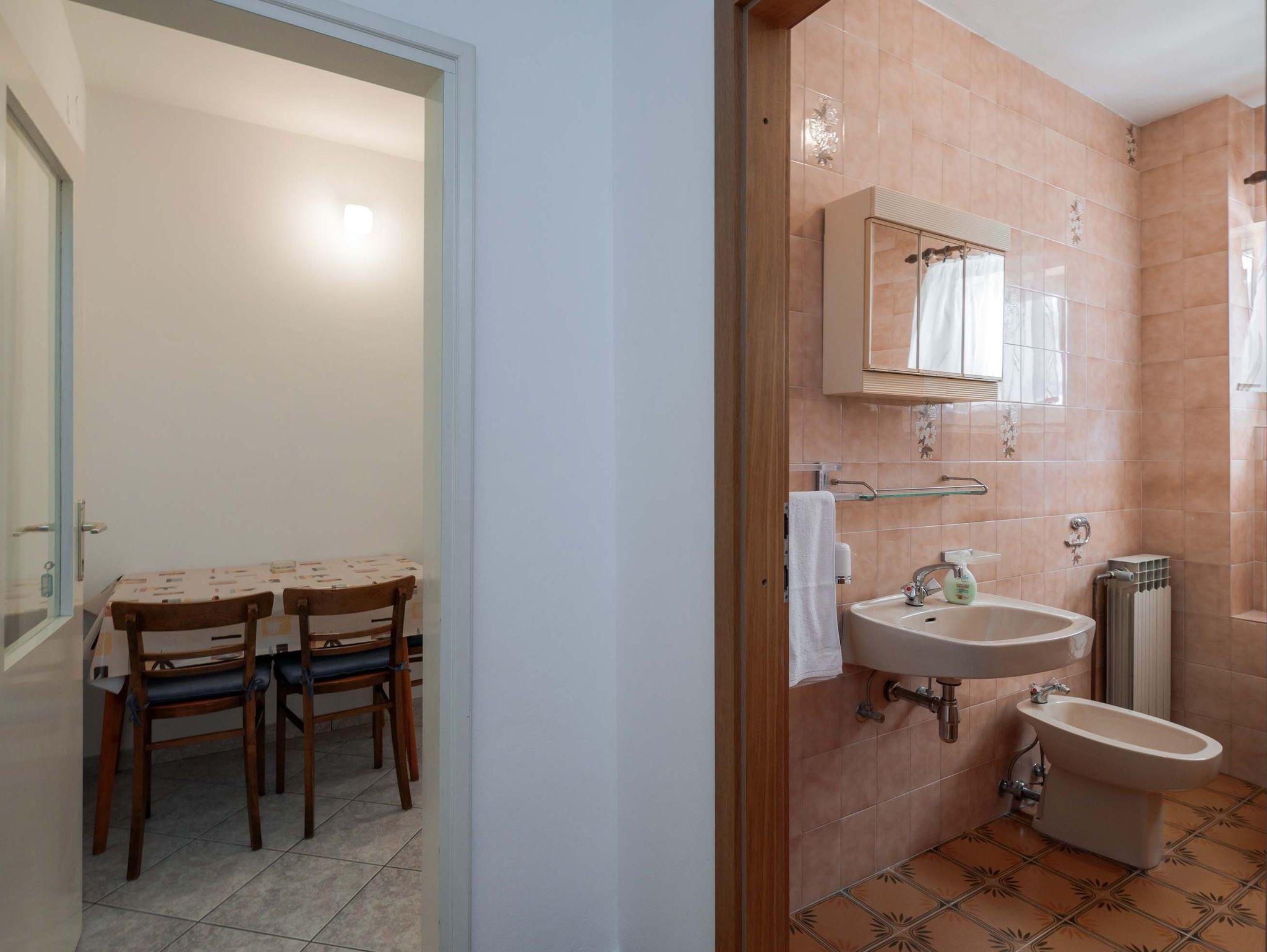 Ferienwohnung bietet Platz für 3 Gäste. Die Betten sind in Schlafzimmern, die es 1 gibt, innerhalb einer Gesamtfläche von 29m2, angeordnet. Die Gäste haben einen eigenen Balkon zur Verfügung, auf der sie in warmen Sommernächten genießen können. Das Apartment bietet Meerblick. Räume der gebuchten Unterkunftseinheit werden nicht in eine Ganze verbunden. IM PREIS INBEGRIFFEN: Kurtaxe, Endreinigung, Parkplatz, Internet, Kinderbett. VERBINDLICHE ZUSÄTZLICHE KOSTEN: Aufzahlung für Kurzaufenthalte (prozentualer Zuschlag pro Nächtigungsanzahl: 30% - 1, 20% - 2, 10% - 3). UNVERBINDLICHE ZUSÄTZLICHE KOSTEN: Klimatisierung (0,50 € pro Stunde). Die Verfügbarkeit zusätzlicher Dienstleistungen in Ihrem reservierten Termin und die Preise derselben (falls nicht aufgeführt) müssen im Voraus überprüft werden. Zusätzliche Dienstleistungen die in der Zahlungsaufforderung nicht aufgeführt sind werden direkt beim Vermieter bezahlt, angenommen der Gast nutzt auch diese.