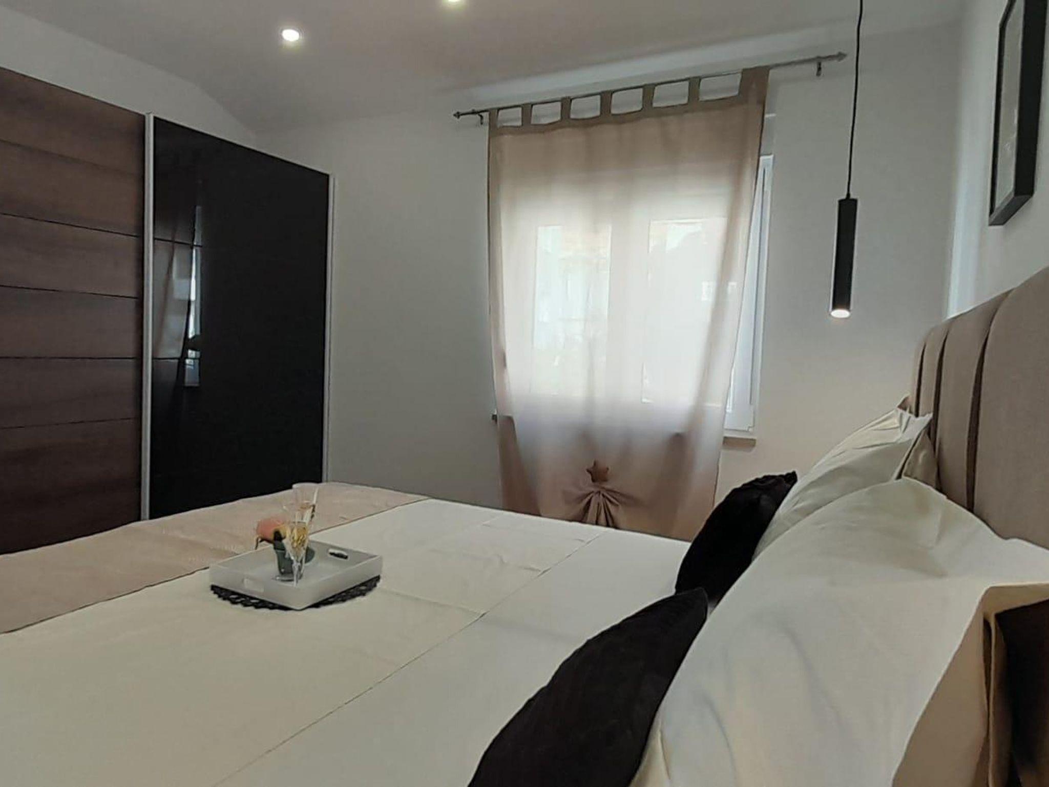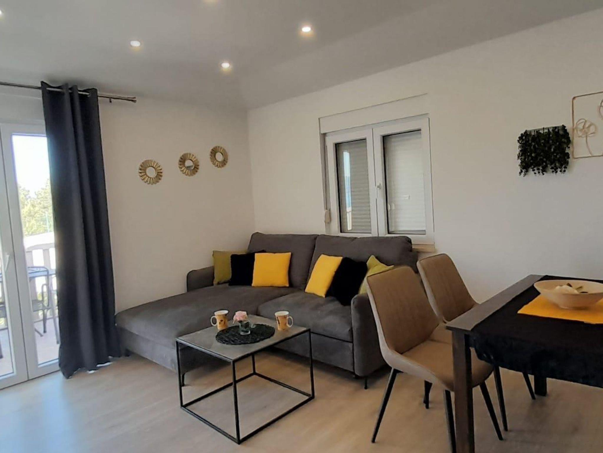 Ferienwohnung bietet Platz für 3 Gäste. Die Betten sind in Schlafzimmern, die es 1 gibt, und in Wohnzimmer, innerhalb einer Gesamtfläche von 36m2, angeordnet. Die Gäste haben einen eigenen Balkon zur Verfügung, auf der sie in warmen Sommernächten genießen können. Das Apartment bietet Meerblick. Für vollen Genuss und Entspannung gibt es einen privaten Grill für Gäste dieser Unterkunft. IM PREIS INBEGRIFFEN: Kurtaxe, Endreinigung, Klimatisierung, Parkplatz, Internet, Bügeleisen, Föhn. VERBINDLICHE ZUSÄTZLICHE KOSTEN: Aufzahlung für Kurzaufenthalte (prozentualer Zuschlag pro Nächtigungsanzahl: 30% - 1, 20% - 2, 10% - 3). Die Verfügbarkeit zusätzlicher Dienstleistungen in Ihrem reservierten Termin und die Preise derselben (falls nicht aufgeführt) müssen im Voraus überprüft werden. Zusätzliche Dienstleistungen die in der Zahlungsaufforderung nicht aufgeführt sind werden direkt beim Vermieter bezahlt, angenommen der Gast nutzt auch diese.