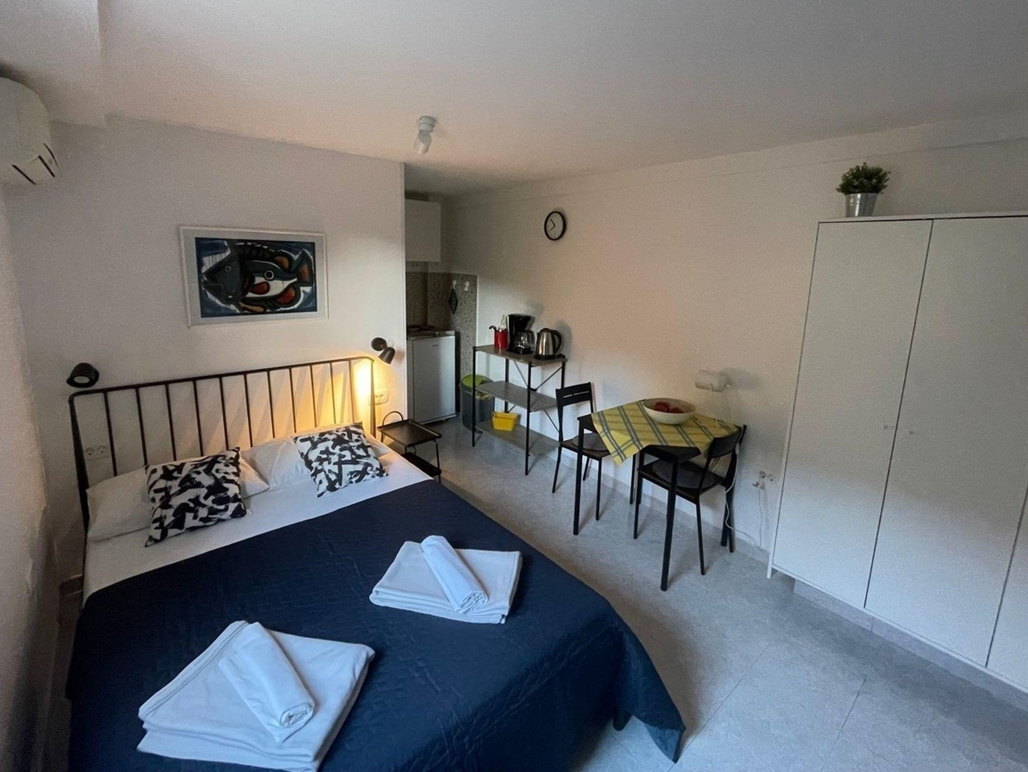 Studio bietet Platz für 2 Gäste. Die Betten sind in Schlafzimmern, die es 1 gibt, innerhalb einer Gesamtfläche von 14m2, angeordnet. Es ist erlaubt, Speisen auf dem Gemeinschafts-Grill vorzubereiten. In der Unterkunftseinheit besteht die Möglichkeit des Mitbringens von Haustieren, und die Dienstleistung ist im Preis der Unterkunft enthalten. Die reservierte Unterkunftseinheit verfügt über einen gemeinsame Terrasse. IM PREIS INBEGRIFFEN: Kurtaxe, Endreinigung, Klimatisierung, Parkplatz, Internet, Haustiere, Kinderbett, Bügeleisen, Bügelbrett, Föhn, tragbarer Grill. Die Verfügbarkeit zusätzlicher Dienstleistungen in Ihrem reservierten Termin und die Preise derselben (falls nicht aufgeführt) müssen im Voraus überprüft werden. Zusätzliche Dienstleistungen die in der Zahlungsaufforderung nicht aufgeführt sind werden direkt beim Vermieter bezahlt, angenommen der Gast nutzt auch diese.