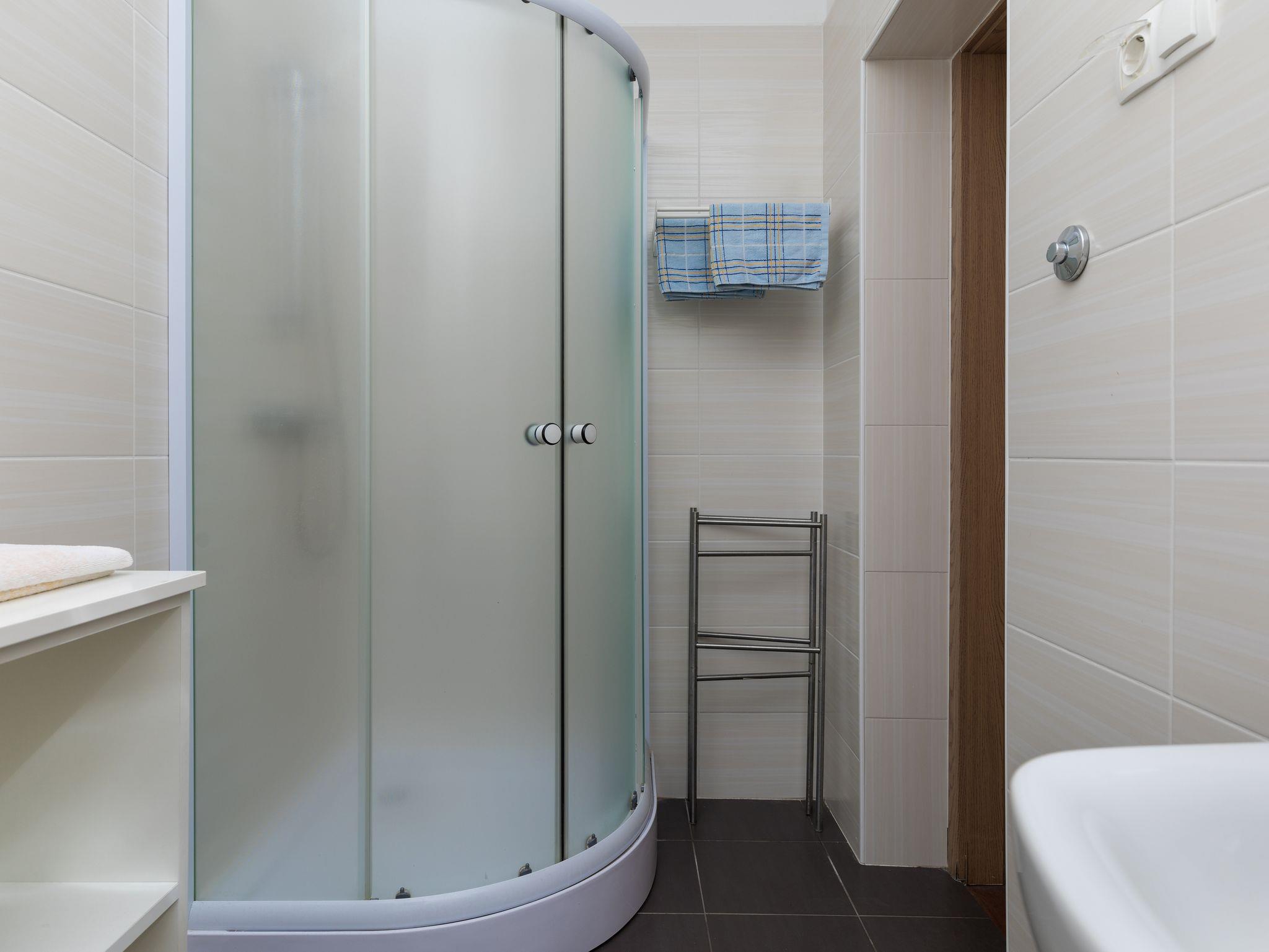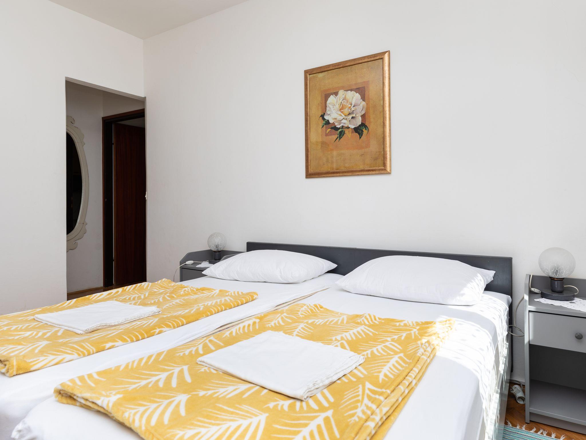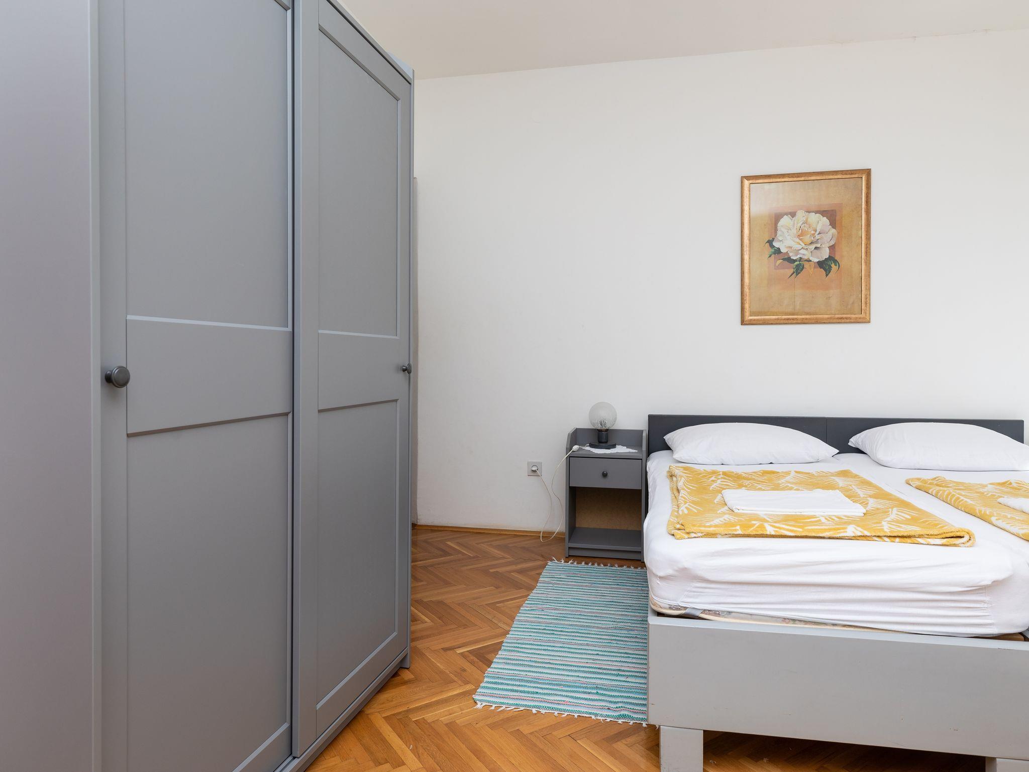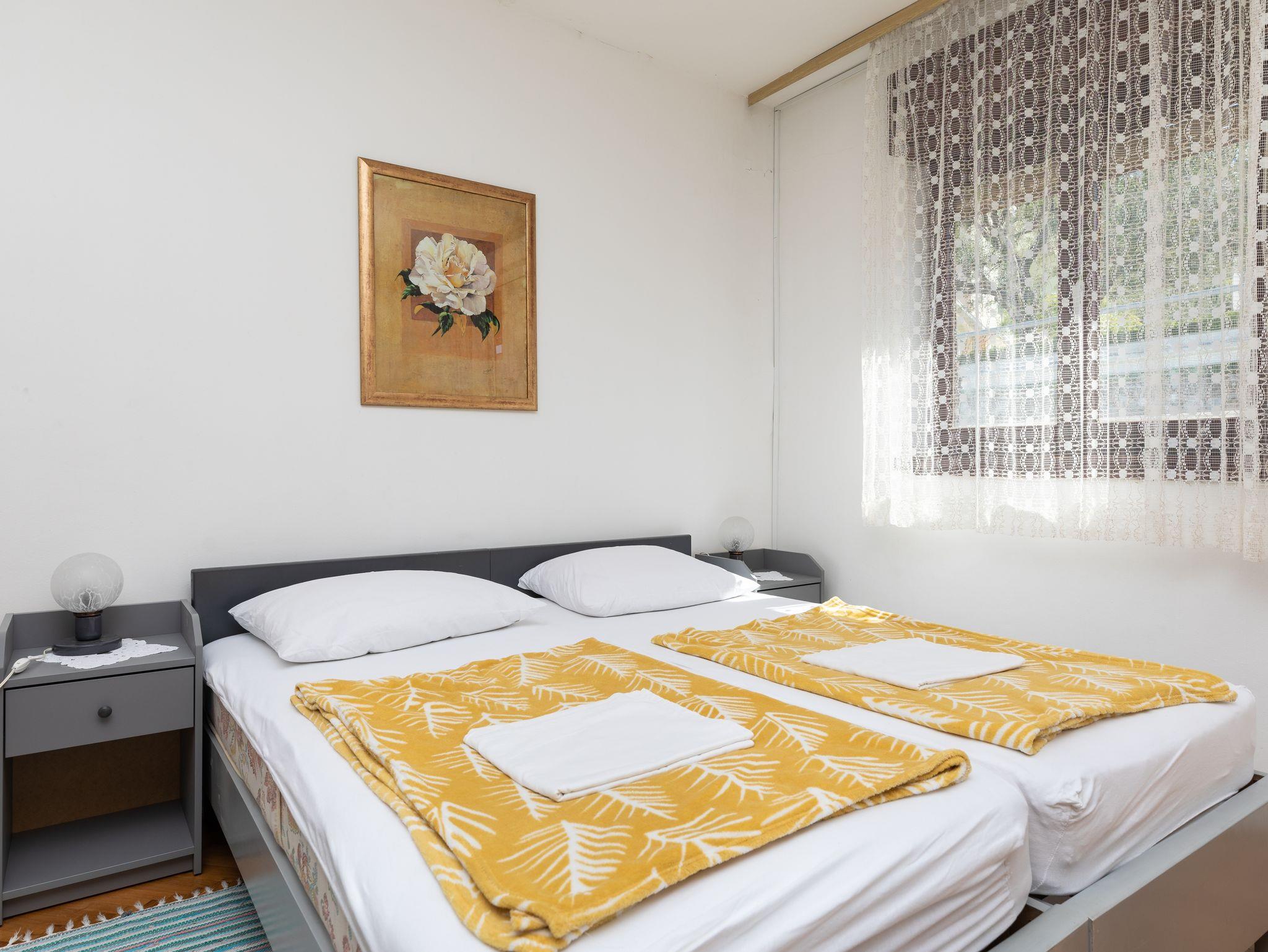 Ferienwohnung bietet Platz für 4 Gäste. Die Betten sind in Schlafzimmern, die es 1 gibt, und in Wohnzimmer, innerhalb einer Gesamtfläche von 30m2, angeordnet. Die Gäste haben einen eigenen Balkon zur Verfügung, auf der sie in warmen Sommernächten genießen können. Das Apartment bietet Meerblick. Es ist erlaubt, Speisen auf dem Gemeinschafts-Grill vorzubereiten. In der Unterkunftseinheit besteht die Möglichkeit des Mitbringens von Haustieren gegen Aufpreis. IM PREIS INBEGRIFFEN: Kurtaxe, Endreinigung, Parkplatz, Internet, Wäschewaschen, Kinderbett, Bügeleisen, Föhn, Sonnenschirm. VERBINDLICHE ZUSÄTZLICHE KOSTEN: Aufzahlung für Kurzaufenthalte (prozentualer Zuschlag pro Nächtigungsanzahl: 30% - 1, 20% - 2, 10% - 3). UNVERBINDLICHE ZUSÄTZLICHE KOSTEN: Klimatisierung (0,30 € pro Stunde), Haustiere (5,00 € pro Nacht). Die Verfügbarkeit zusätzlicher Dienstleistungen in Ihrem reservierten Termin und die Preise derselben (falls nicht aufgeführt) müssen im Voraus überprüft werden. Zusätzliche Dienstleistungen die in der Zahlungsaufforderung nicht aufgeführt sind werden direkt beim Vermieter bezahlt, angenommen der Gast nutzt auch diese.