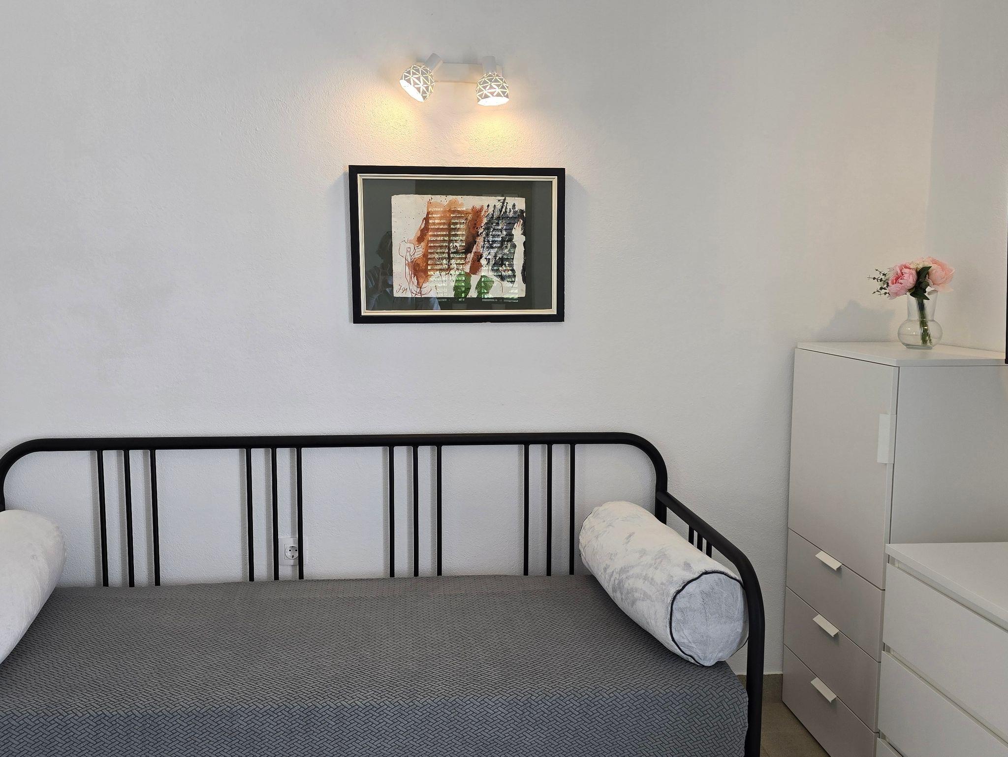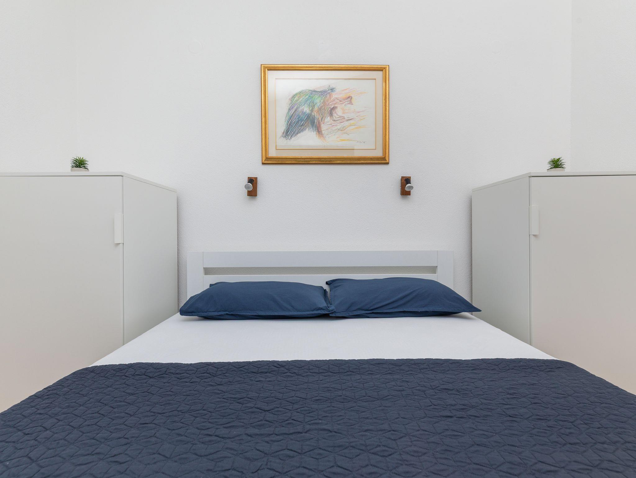Ferienwohnung bietet Platz für 4 Gäste. Die Betten sind in Schlafzimmern, die es 1 gibt, und in Wohnzimmer, innerhalb einer Gesamtfläche von 33m2, angeordnet. Die Gäste haben eine eigene Terrasse zur Verfügung, auf der sie in warmen Sommernächten genießen können. Das Apartment bietet Meerblick. Es ist erlaubt, Speisen auf dem Gemeinschafts-Grill vorzubereiten. In der Unterkunftseinheit besteht die Möglichkeit des Mitbringens von Haustieren gegen Aufpreis. IM PREIS INBEGRIFFEN: Kurtaxe, Endreinigung, Klimatisierung, Parkplatz, Internet, Wäschewaschen, Bügeleisen, Bügelbrett, Föhn, tragbarer Grill, Sonnenschirm. UNVERBINDLICHE ZUSÄTZLICHE KOSTEN: Haustiere (10,00 € pro Nacht). Die Verfügbarkeit zusätzlicher Dienstleistungen in Ihrem reservierten Termin und die Preise derselben (falls nicht aufgeführt) müssen im Voraus überprüft werden. Zusätzliche Dienstleistungen die in der Zahlungsaufforderung nicht aufgeführt sind werden direkt beim Vermieter bezahlt, angenommen der Gast nutzt auch diese.