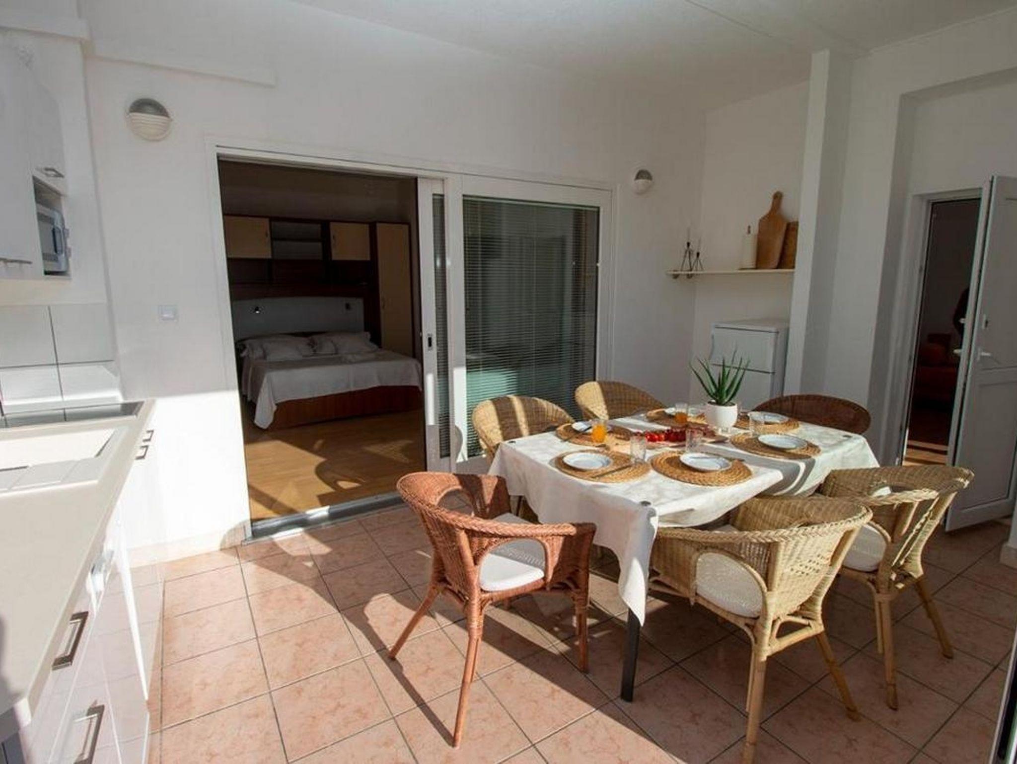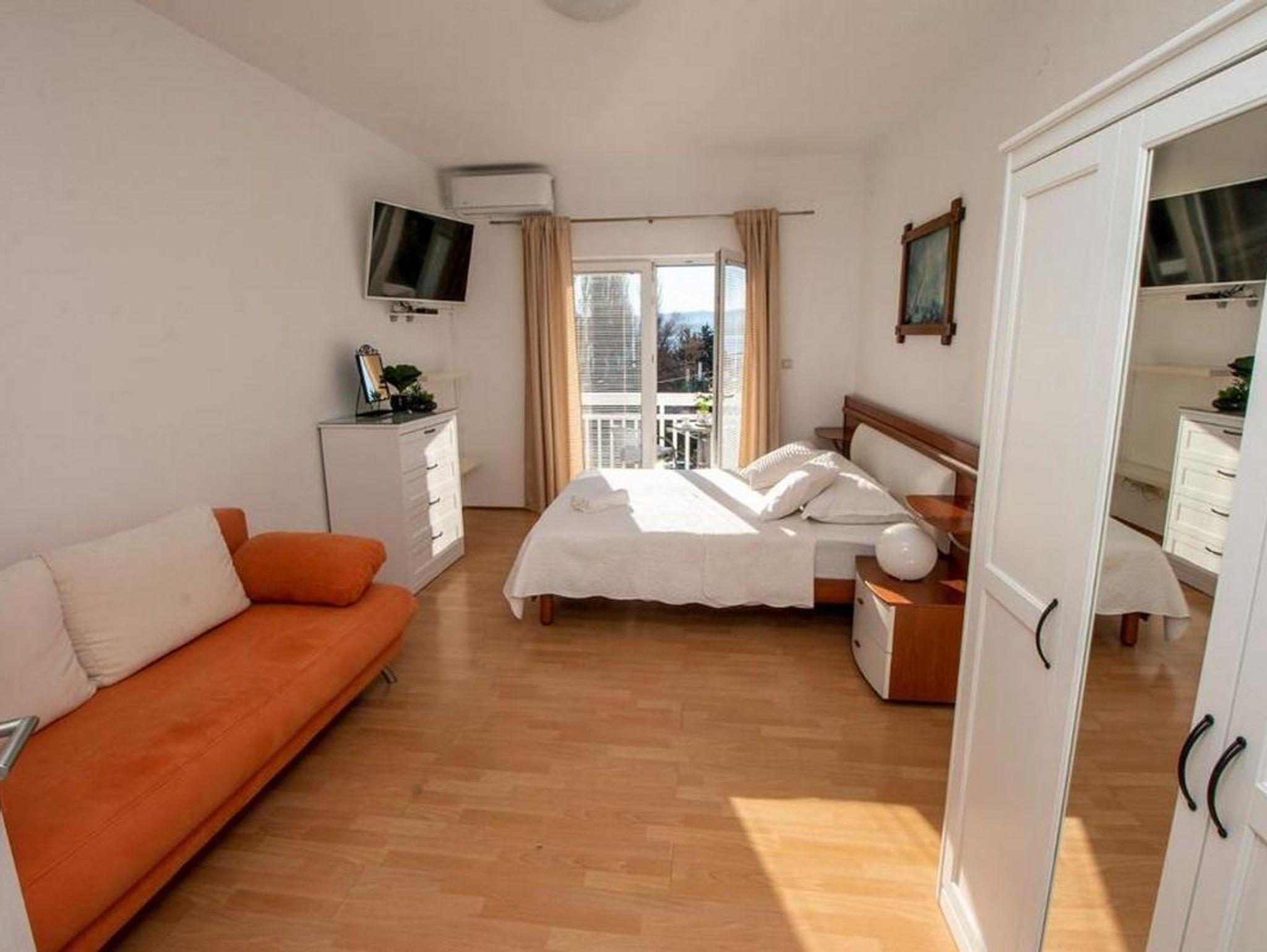 Ferienwohnung bietet Platz für 7 Gäste. Die Betten sind in Schlafzimmern, die es 3 gibt, innerhalb einer Gesamtfläche von 99m2, angeordnet. Die Gäste haben einen eigenen Balkon zur Verfügung, auf der sie in warmen Sommernächten genießen können. Das Apartment bietet Meerblick. Für vollen Genuss und Entspannung gibt es einen privaten Grill für Gäste dieser Unterkunft. In der Unterkunftseinheit besteht die Möglichkeit des Mitbringens von Haustieren gegen Aufpreis. IM PREIS INBEGRIFFEN: Kurtaxe, Endreinigung, Klimatisierung, Parkplatz, Internet, Bügeleisen, Bügelbrett. VERBINDLICHE ZUSÄTZLICHE KOSTEN: Aufzahlung für Kurzaufenthalte (prozentualer Zuschlag pro Nächtigungsanzahl: 30% - 1, 20% - 2, 10% - 3). UNVERBINDLICHE ZUSÄTZLICHE KOSTEN: Haustiere (5,00 € pro Nacht). Die Verfügbarkeit zusätzlicher Dienstleistungen in Ihrem reservierten Termin und die Preise derselben (falls nicht aufgeführt) müssen im Voraus überprüft werden. Zusätzliche Dienstleistungen die in der Zahlungsaufforderung nicht aufgeführt sind werden direkt beim Vermieter bezahlt, angenommen der Gast nutzt auch diese.