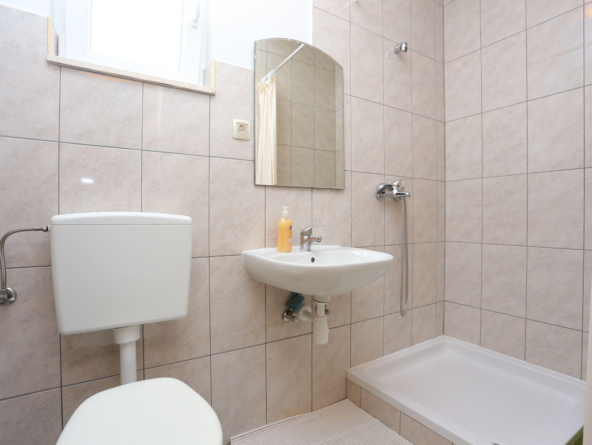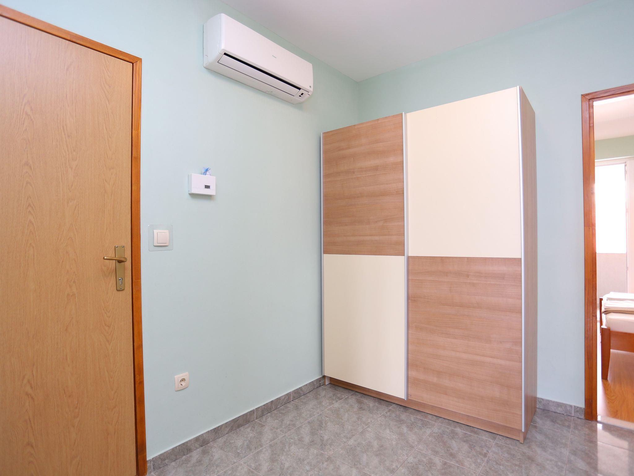 Ferienwohnung bietet Platz für 4 Gäste. Die Betten sind in Schlafzimmern, die es 1 gibt, und in Esszimmer, innerhalb einer Gesamtfläche von 34m2, angeordnet. Die Gäste haben eine eigene Terrasse zur Verfügung, auf der sie in warmen Sommernächten genießen können. Das Apartment bietet Meerblick. Es ist erlaubt, Speisen auf dem Gemeinschafts-Grill vorzubereiten. IM PREIS INBEGRIFFEN: Kurtaxe, Endreinigung, Klimatisierung, Parkplatz, Internet, Zusatzbett, Bügeleisen, Bügelbrett, Föhn. VERBINDLICHE ZUSÄTZLICHE KOSTEN: Aufzahlung für Kurzaufenthalte (prozentualer Zuschlag pro Nächtigungsanzahl: 30% - 1, 20% - 2, 10% - 3). Die Verfügbarkeit zusätzlicher Dienstleistungen in Ihrem reservierten Termin und die Preise derselben (falls nicht aufgeführt) müssen im Voraus überprüft werden. Zusätzliche Dienstleistungen die in der Zahlungsaufforderung nicht aufgeführt sind werden direkt beim Vermieter bezahlt, angenommen der Gast nutzt auch diese. Ermäßigung auf den Grundpreis: Gratistag 14=13 (bei einem Aufenthalt von 14 Tagen oder mehr erhalten Sie einen Gratistag für den Aufenthalt bis 31.12.26).