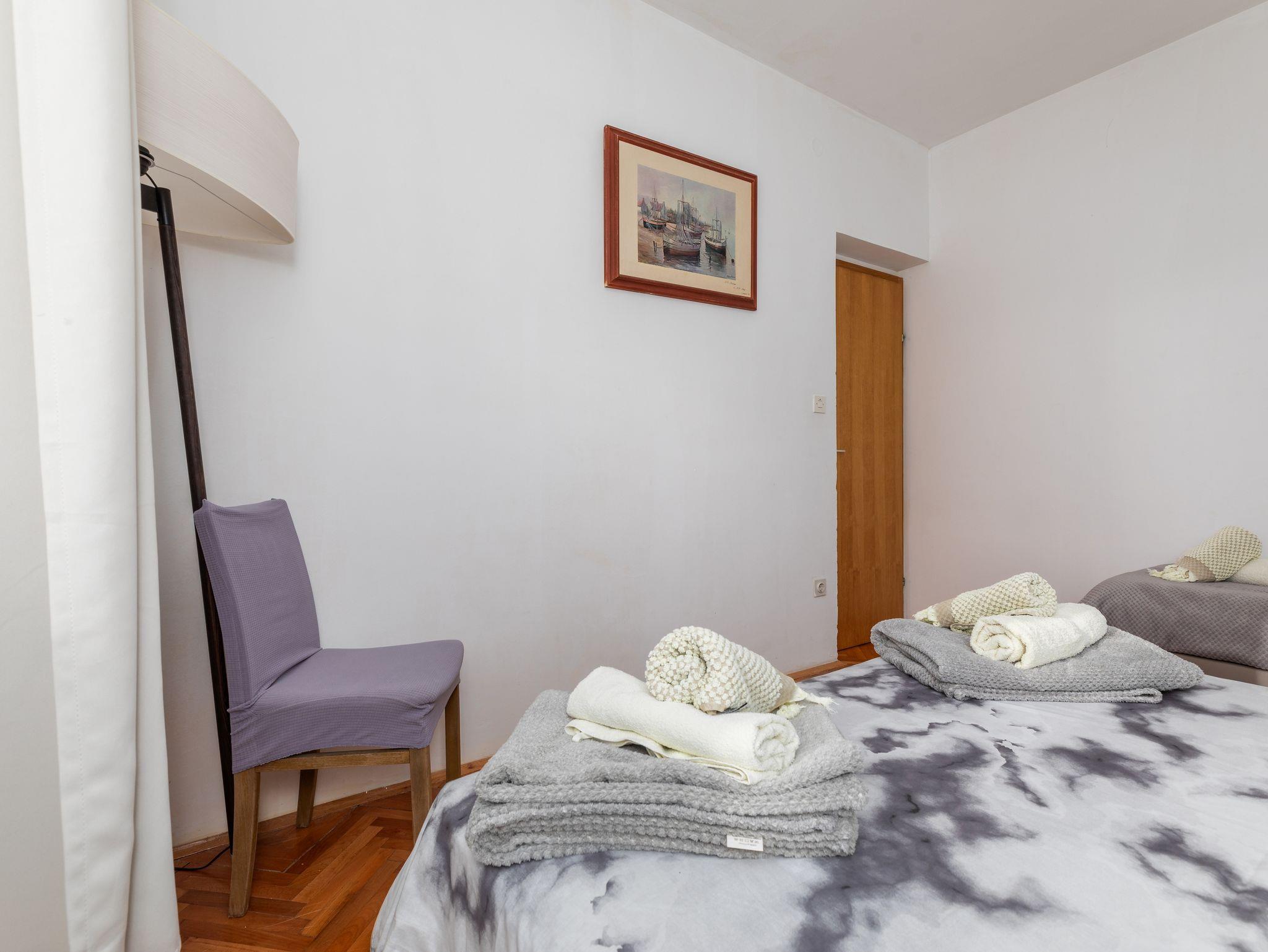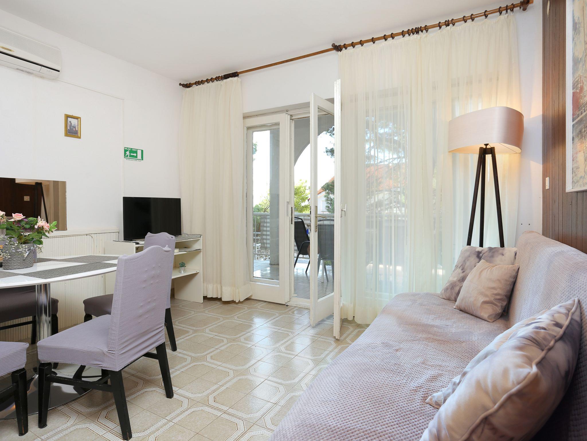 Ferienwohnung bietet Platz für 4 Gäste. Die Betten sind in Schlafzimmern, die es 1 gibt, und in Wohnzimmer, innerhalb einer Gesamtfläche von 36m2, angeordnet. Die Gäste haben eine eigene Terrasse zur Verfügung, auf der sie in warmen Sommernächten genießen können. Das Apartment bietet Meerblick. In der Unterkunftseinheit besteht die Möglichkeit des Mitbringens von Haustieren gegen Aufpreis. IM PREIS INBEGRIFFEN: Kurtaxe, Endreinigung, Klimatisierung, Parkplatz, Internet, Föhn. VERBINDLICHE ZUSÄTZLICHE KOSTEN: Aufzahlung für Kurzaufenthalte (prozentualer Zuschlag pro Nächtigungsanzahl: 30% - 1, 20% - 2, 10% - 3). UNVERBINDLICHE ZUSÄTZLICHE KOSTEN: Haustiere (15,00 € pro Nacht). Die Verfügbarkeit zusätzlicher Dienstleistungen in Ihrem reservierten Termin und die Preise derselben (falls nicht aufgeführt) müssen im Voraus überprüft werden. Zusätzliche Dienstleistungen die in der Zahlungsaufforderung nicht aufgeführt sind werden direkt beim Vermieter bezahlt, angenommen der Gast nutzt auch diese.
