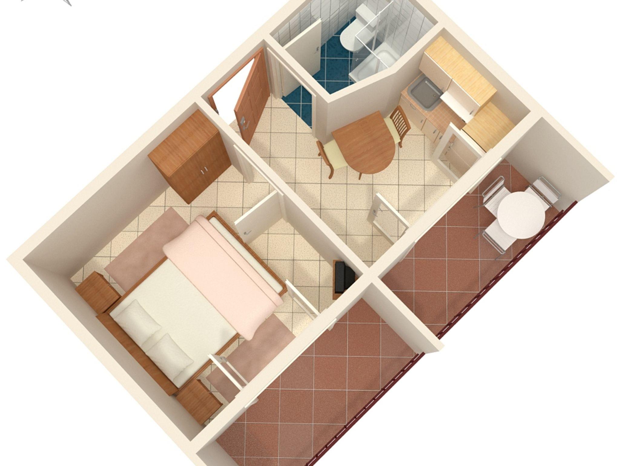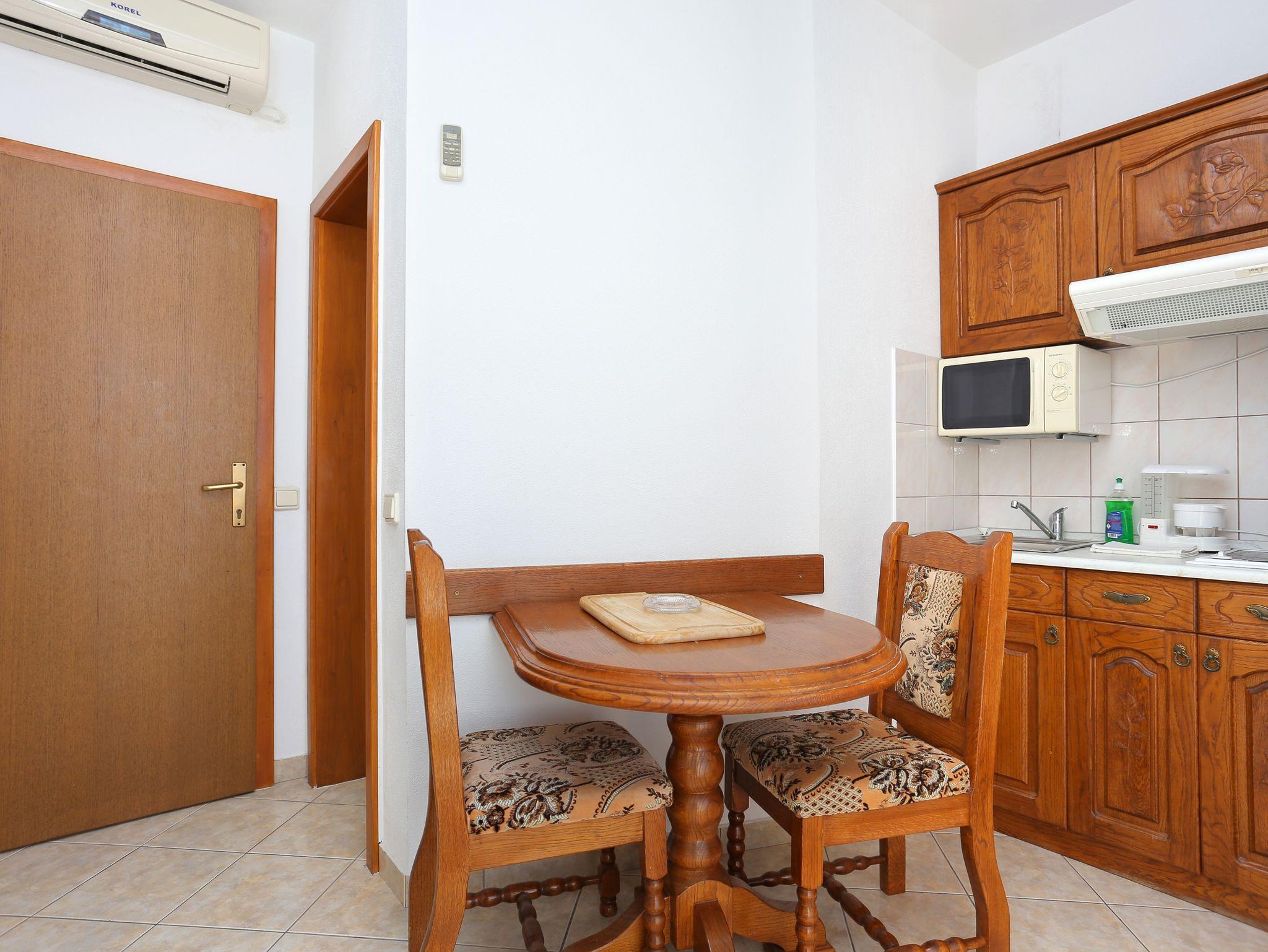 Ferienwohnung bietet Platz für 2 Gäste. Die Betten sind in Schlafzimmern, die es 1 gibt, innerhalb einer Gesamtfläche von 20m2, angeordnet. Die Gäste haben einen eigenen Balkon zur Verfügung, auf der sie in warmen Sommernächten genießen können. Das Apartment bietet Meerblick. Es ist erlaubt, Speisen auf dem Gemeinschafts-Grill vorzubereiten. IM PREIS INBEGRIFFEN: Kurtaxe, Endreinigung, Parkplatz, Internet, Kinderbett, Zusatzbett, Bügeleisen, Bügelbrett, Föhn, tragbarer Grill. VERBINDLICHE ZUSÄTZLICHE KOSTEN: Aufzahlung für Kurzaufenthalte (prozentualer Zuschlag pro Nächtigungsanzahl: 30% - 1, 20% - 2, 10% - 3). UNVERBINDLICHE ZUSÄTZLICHE KOSTEN: Klimatisierung (5,00 € pro Nacht), Wäschewaschen (5,00 € Waschen). Die Verfügbarkeit zusätzlicher Dienstleistungen in Ihrem reservierten Termin und die Preise derselben (falls nicht aufgeführt) müssen im Voraus überprüft werden. Zusätzliche Dienstleistungen die in der Zahlungsaufforderung nicht aufgeführt sind werden direkt beim Vermieter bezahlt, angenommen der Gast nutzt auch diese. Ermäßigung auf den Grundpreis: Gratistag 14=13 (bei einem Aufenthalt von 14 Tagen oder mehr erhalten Sie einen Gratistag für den Aufenthalt bis 31.12.26).