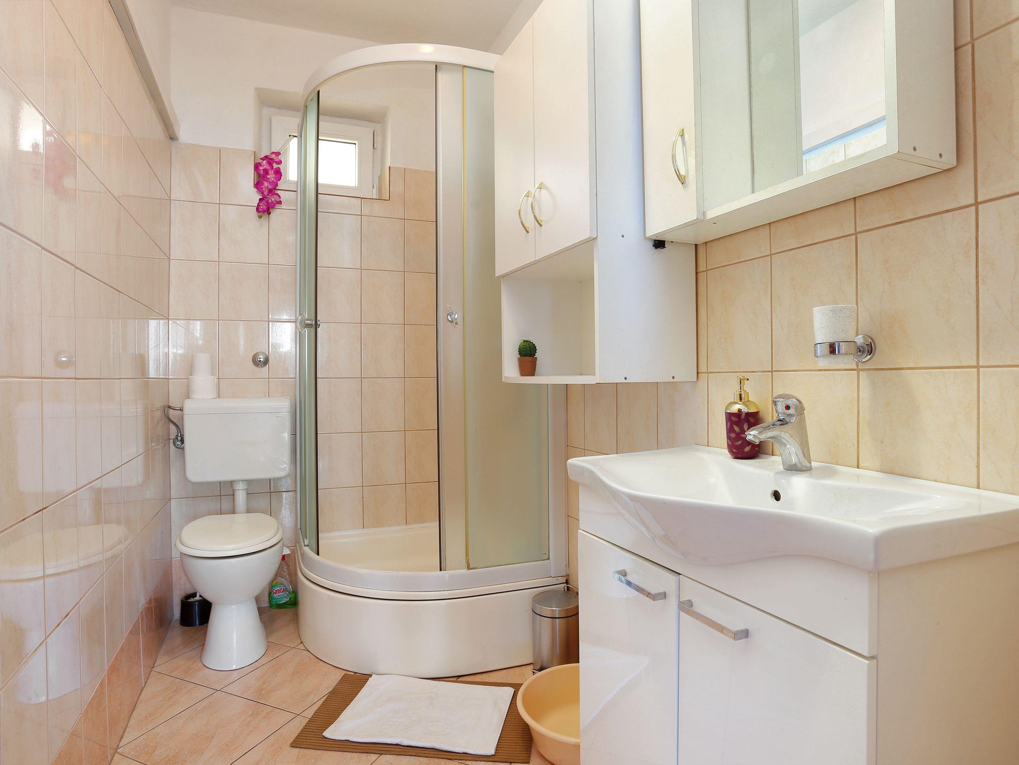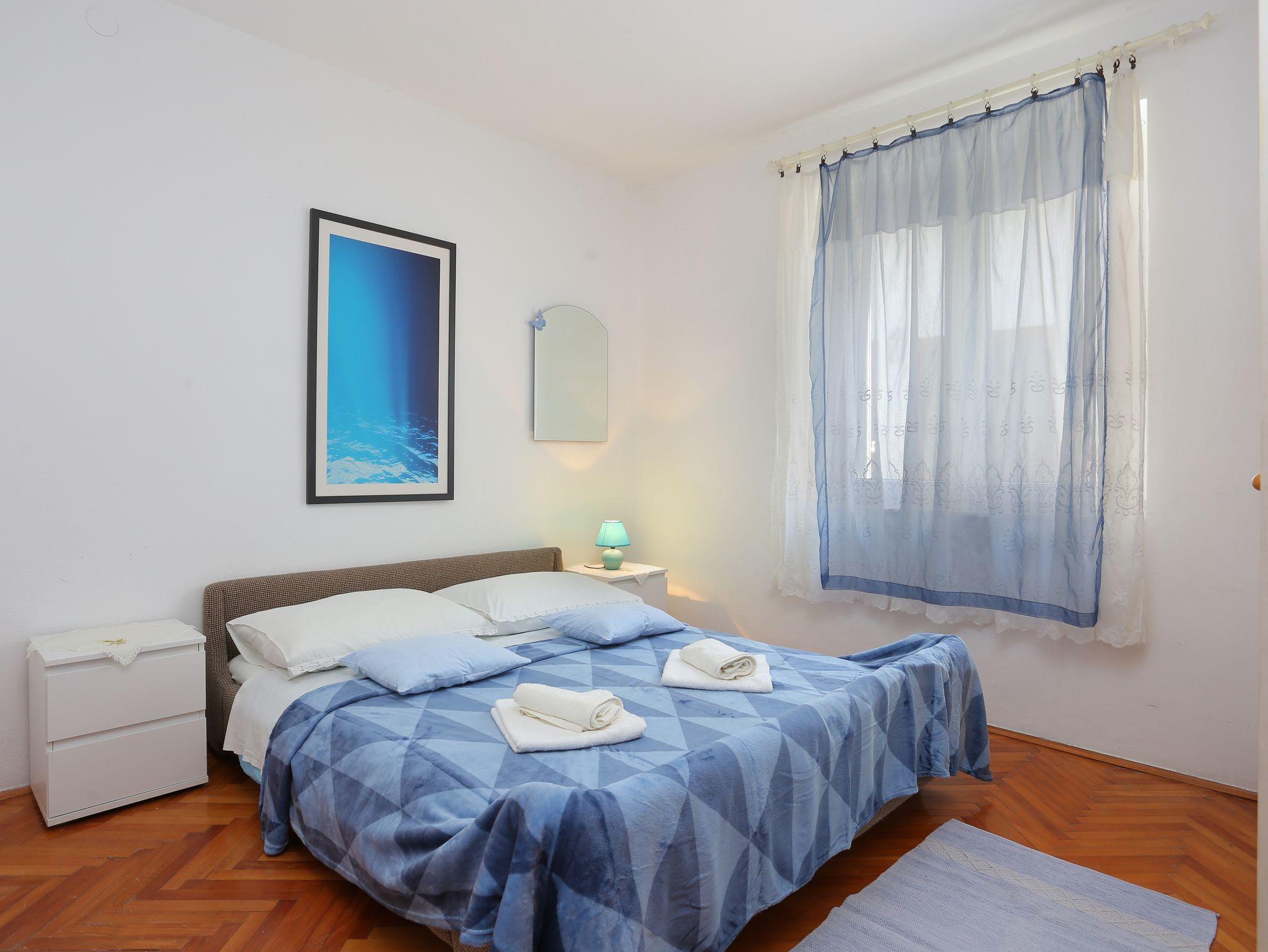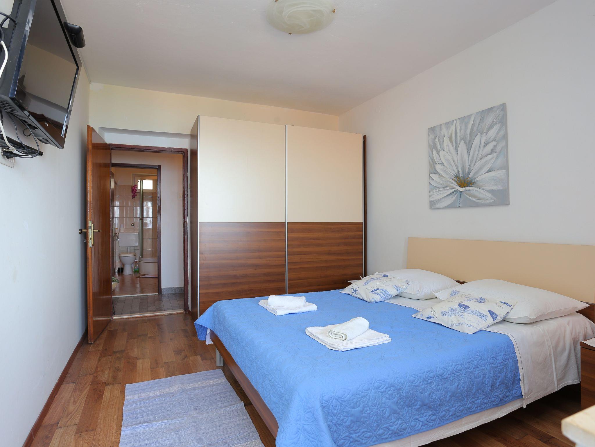 Ferienwohnung bietet Platz für 5 Gäste. Die Betten sind in Schlafzimmern, die es 2 gibt, innerhalb einer Gesamtfläche von 41m2, angeordnet. Die Gäste haben eine eigene Terrasse zur Verfügung, auf der sie in warmen Sommernächten genießen können. Das Apartment bietet Meerblick. IM PREIS INBEGRIFFEN: Kurtaxe, Endreinigung, Klimatisierung, Parkplatz, Internet. VERBINDLICHE ZUSÄTZLICHE KOSTEN: Aufzahlung für Kurzaufenthalte (prozentualer Zuschlag pro Nächtigungsanzahl: 30% - 1, 20% - 2, 10% - 3). Die Verfügbarkeit zusätzlicher Dienstleistungen in Ihrem reservierten Termin und die Preise derselben (falls nicht aufgeführt) müssen im Voraus überprüft werden. Zusätzliche Dienstleistungen die in der Zahlungsaufforderung nicht aufgeführt sind werden direkt beim Vermieter bezahlt, angenommen der Gast nutzt auch diese. Ermäßigung auf den Grundpreis: Gratistag 14=13 (bei einem Aufenthalt von 14 Tagen oder mehr erhalten Sie einen Gratistag für den Aufenthalt bis 31.12.26).