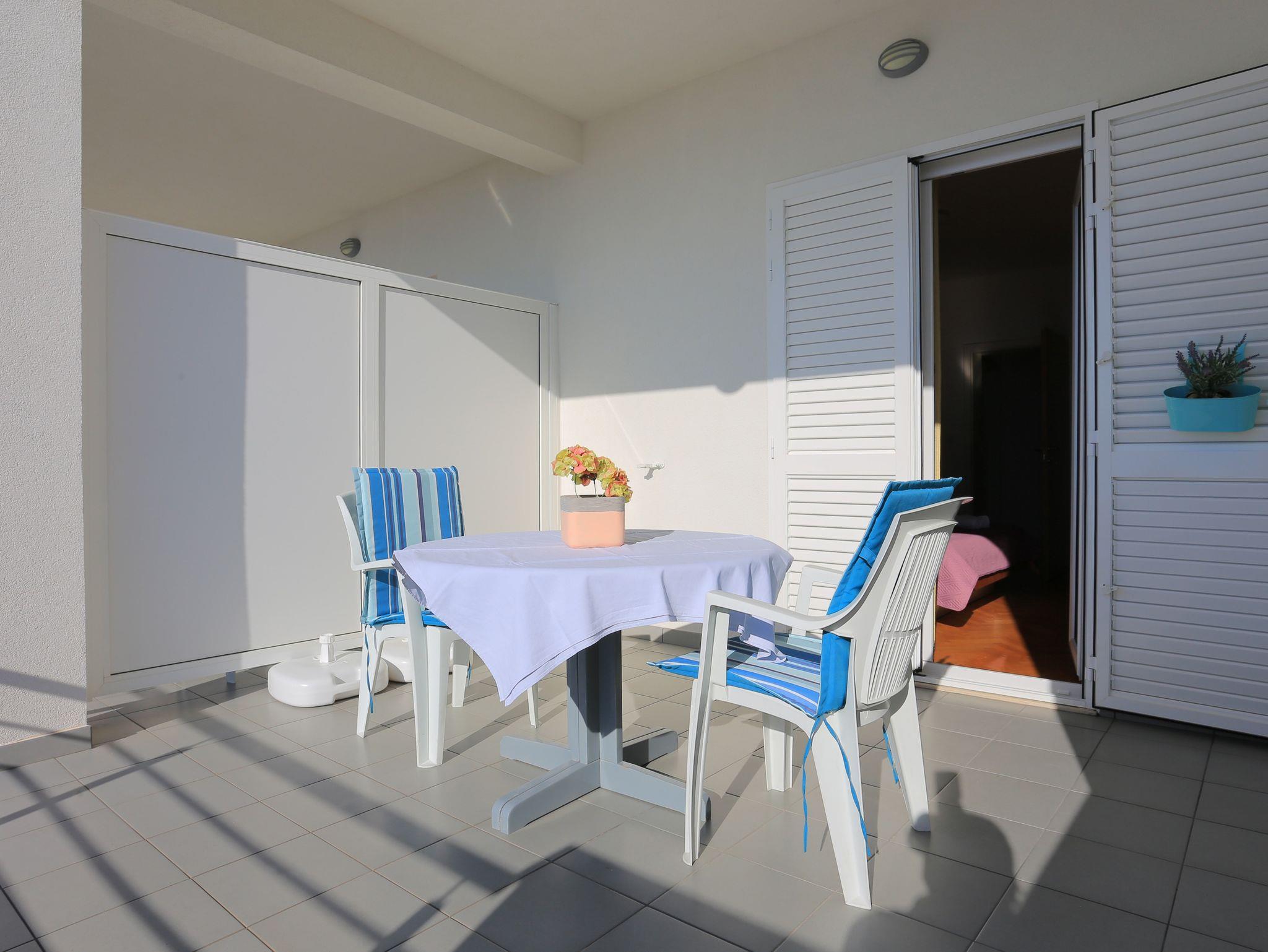 Studio bietet Platz für 2 Gäste. Die Betten sind in Schlafzimmern, die es 1 gibt, innerhalb einer Gesamtfläche von 16m2, angeordnet. Die Gäste haben eine eigene Terrasse zur Verfügung, auf der sie in warmen Sommernächten genießen können. Das Studio-Apartment bietet Meerblick. Es ist erlaubt, Speisen auf dem Gemeinschafts-Grill vorzubereiten. IM PREIS INBEGRIFFEN: Kurtaxe, Endreinigung, Klimatisierung, Parkplatz, Internet, Bootsanlegeplatz, Bügeleisen, Bügelbrett, Föhn. VERBINDLICHE ZUSÄTZLICHE KOSTEN: Aufzahlung für Kurzaufenthalte (prozentualer Zuschlag pro Nächtigungsanzahl: 30% - 1, 20% - 2, 10% - 3). UNVERBINDLICHE ZUSÄTZLICHE KOSTEN: Wäschewaschen (5,00 € Waschen). Die Verfügbarkeit zusätzlicher Dienstleistungen in Ihrem reservierten Termin und die Preise derselben (falls nicht aufgeführt) müssen im Voraus überprüft werden. Zusätzliche Dienstleistungen die in der Zahlungsaufforderung nicht aufgeführt sind werden direkt beim Vermieter bezahlt, angenommen der Gast nutzt auch diese.