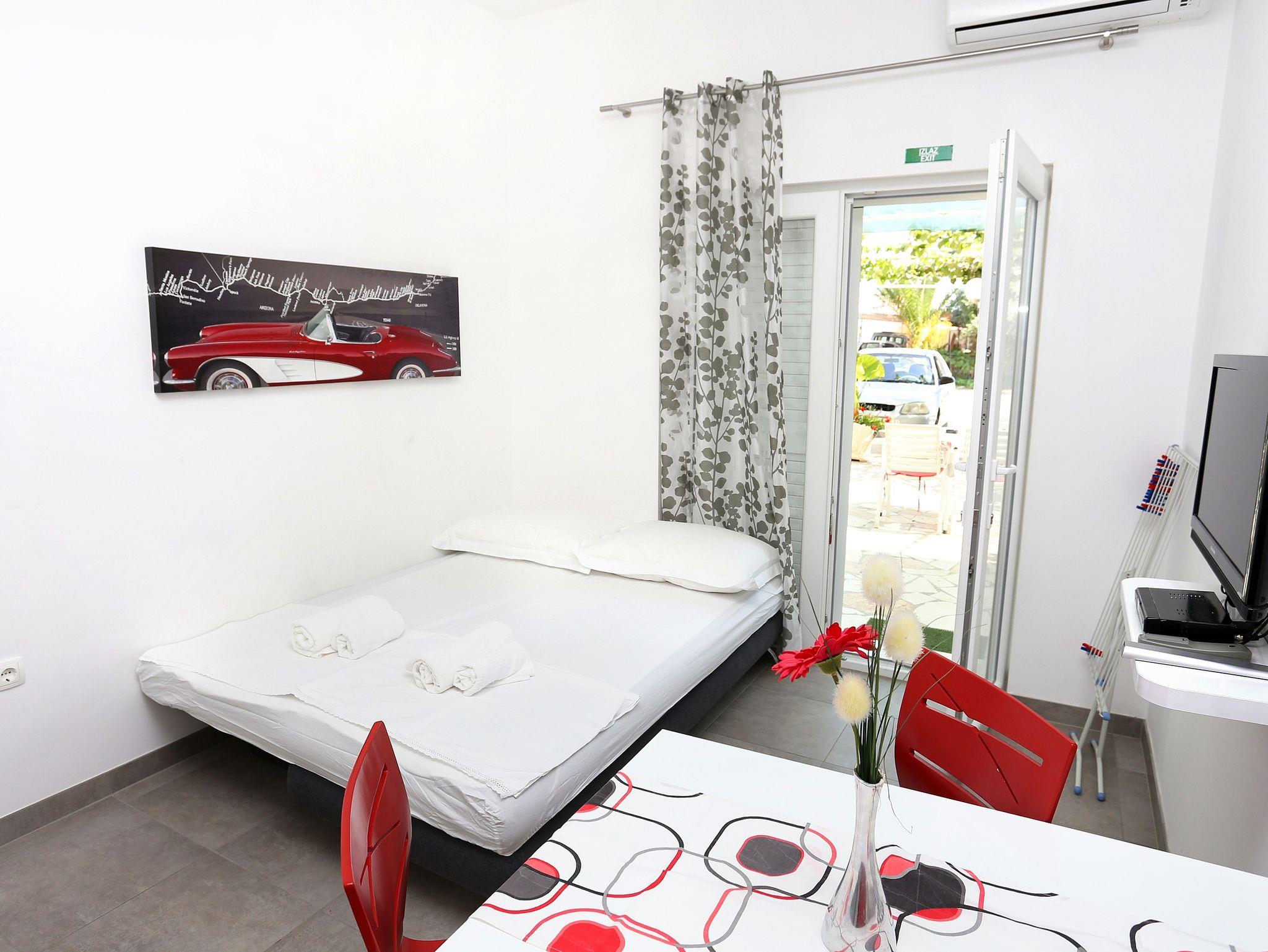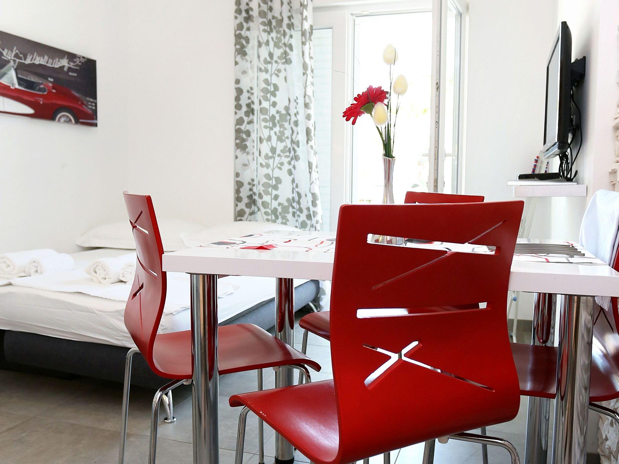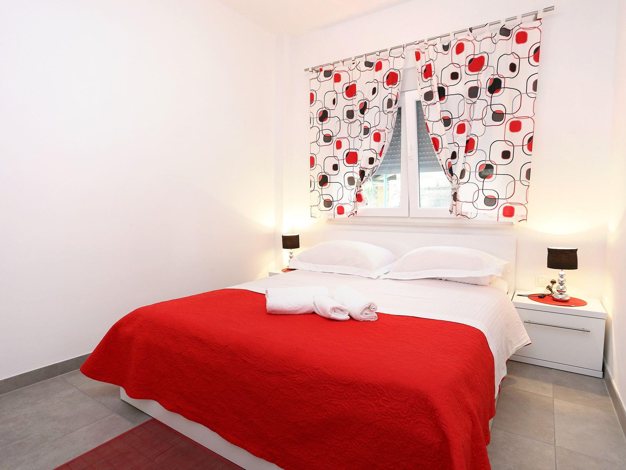 Ferienwohnung bietet Platz für 4 Gäste. Die Betten sind in Schlafzimmern, die es 1 gibt, und in Wohnzimmer, innerhalb einer Gesamtfläche von 30m2, angeordnet. Das Apartment bietet Meerblick. Es ist erlaubt, Speisen auf dem Gemeinschafts-Grill vorzubereiten. Die reservierte Unterkunftseinheit verfügt über einen gemeinsame Terrasse. IM PREIS INBEGRIFFEN: Kurtaxe, Endreinigung, Klimatisierung, Parkplatz, Internet, Bügeleisen, Föhn. Die Verfügbarkeit zusätzlicher Dienstleistungen in Ihrem reservierten Termin und die Preise derselben (falls nicht aufgeführt) müssen im Voraus überprüft werden. Zusätzliche Dienstleistungen die in der Zahlungsaufforderung nicht aufgeführt sind werden direkt beim Vermieter bezahlt, angenommen der Gast nutzt auch diese.