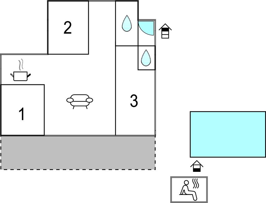 Badeværelse 5m2 (nr. 1) - WC. Varmt og koldt vand. Bruser