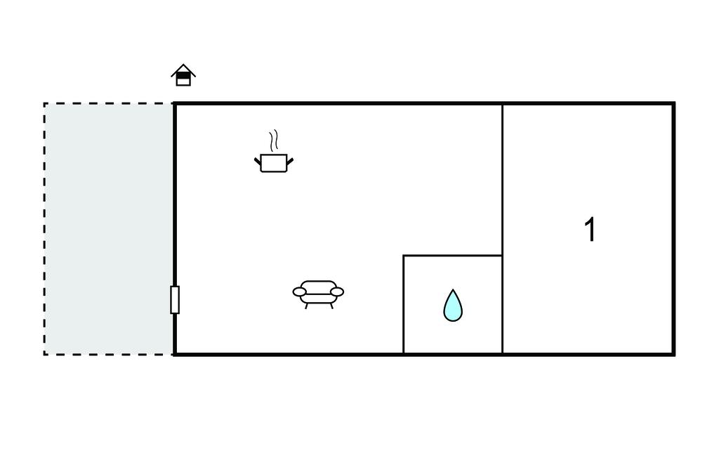Opholdsstue/køkken 30m2 - 2 Sovepladser. (Sofa, madras eller lignende).