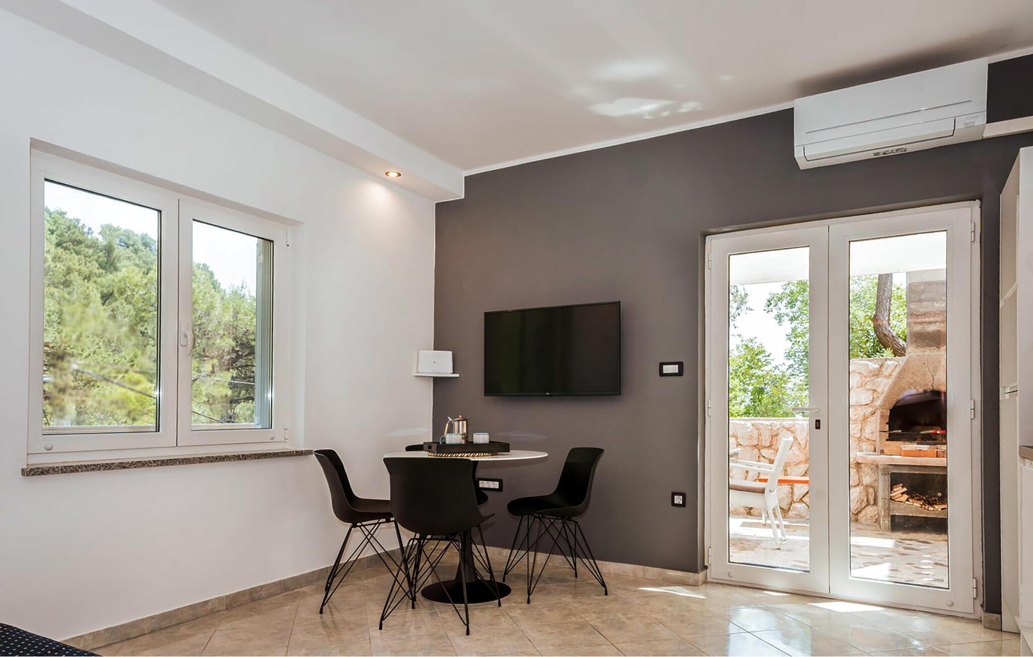 Tilbring en afslappende ferie i denne komfortable lejlighed med smuk havudsigt. Nyd at slappe af i den praktisk indrettede opholdsstue efter en dag på stranden. Indretningen er indbydende og fyldt med naturligt lys. Brug den åbne spisestue til fælles måltider eller rolige aftener med spil og stimulerende samtaler. Åbn altandørene og lad den rolige atmosfære skylle over jer. Gå udenfor og nyd udsigten over havet og de grønne omgivelser. Nyd en kop kaffe her, eller afslut dagen med et glas vin. Udnyt den fredelige beliggenhed til afslappende timer udenfor. Omgivet af træer og natur kan I tilbringe afslappende aftener langt fra byens travlhed. Den korte gåtur til indkvarteringen gør spontane ture til stranden mulige når som helst. Udforsk området omkring Brsec, en charmerende by med udsigt over Kvarnerbugten. Slentr gennem den historiske gamle bydel med dens stenhuse og udsigtspunkter. Gå ned til Klancac-stranden, kun en kort gåtur væk, som betragtes som en af de smukkeste strande i Kroatien. Tilbring dage med at svømme i det klare vand eller udforske kysten til fods. Tag på udflugter langs kystvejen til Mošcenicka Draga eller Opatija.