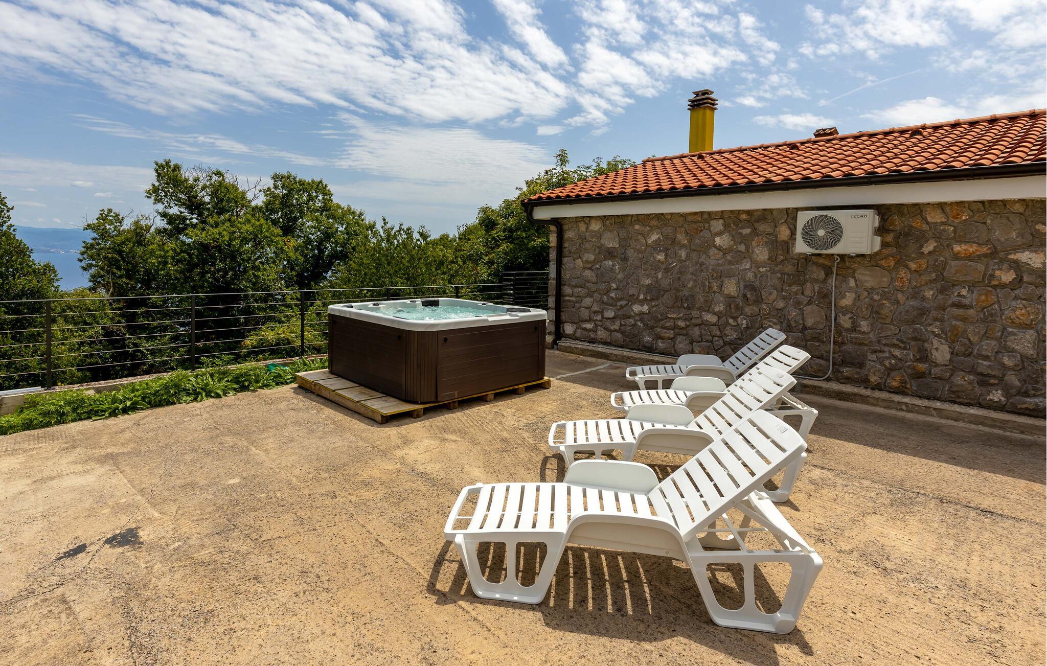 Nyd en afslappende ferie i dette moderne feriehus med spabad og panoramaudsigt.