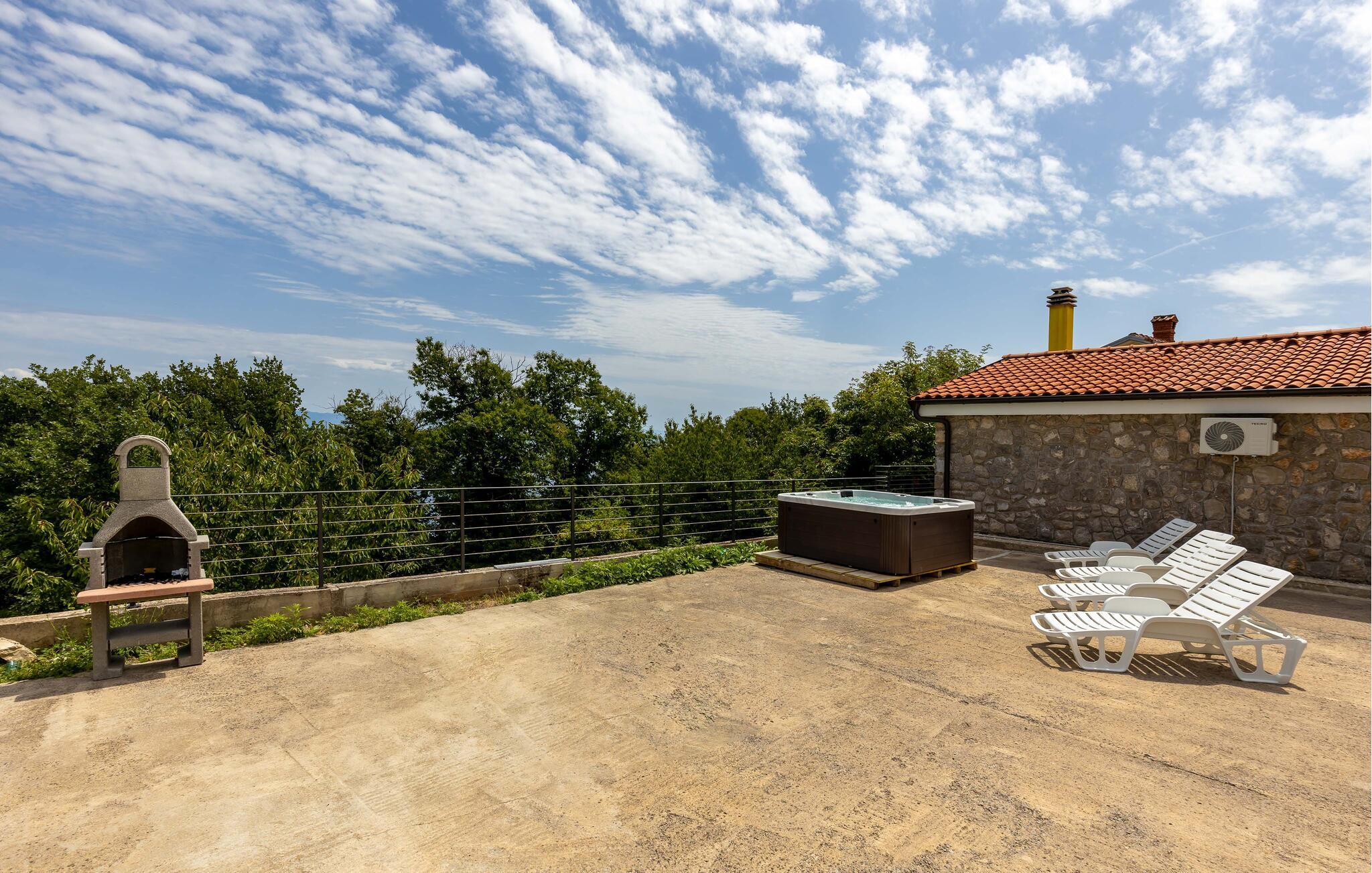 Gå barfodet ud på den åbne terrasse om morgenen og fyld lungerne med den friske luft. Et vidunderligt spabad venter jer, hvor I kan nyde nogle afslappende øjeblikke, før I slapper af på liggestolen og nyder den fredelige atmosfære. Tænd op i grillen og snak over et glas vin under åben himmel.