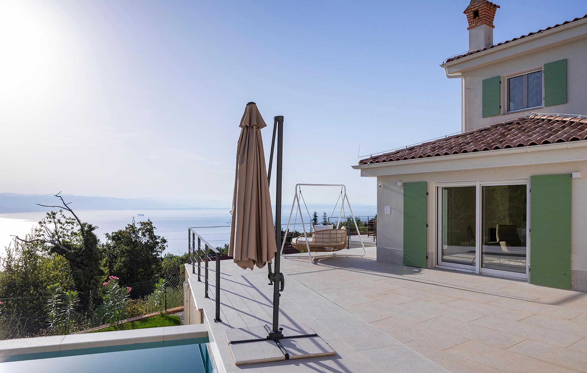 Nyd et fantastisk havpanorama i dette attraktive feriehus med pool og wellness-område.