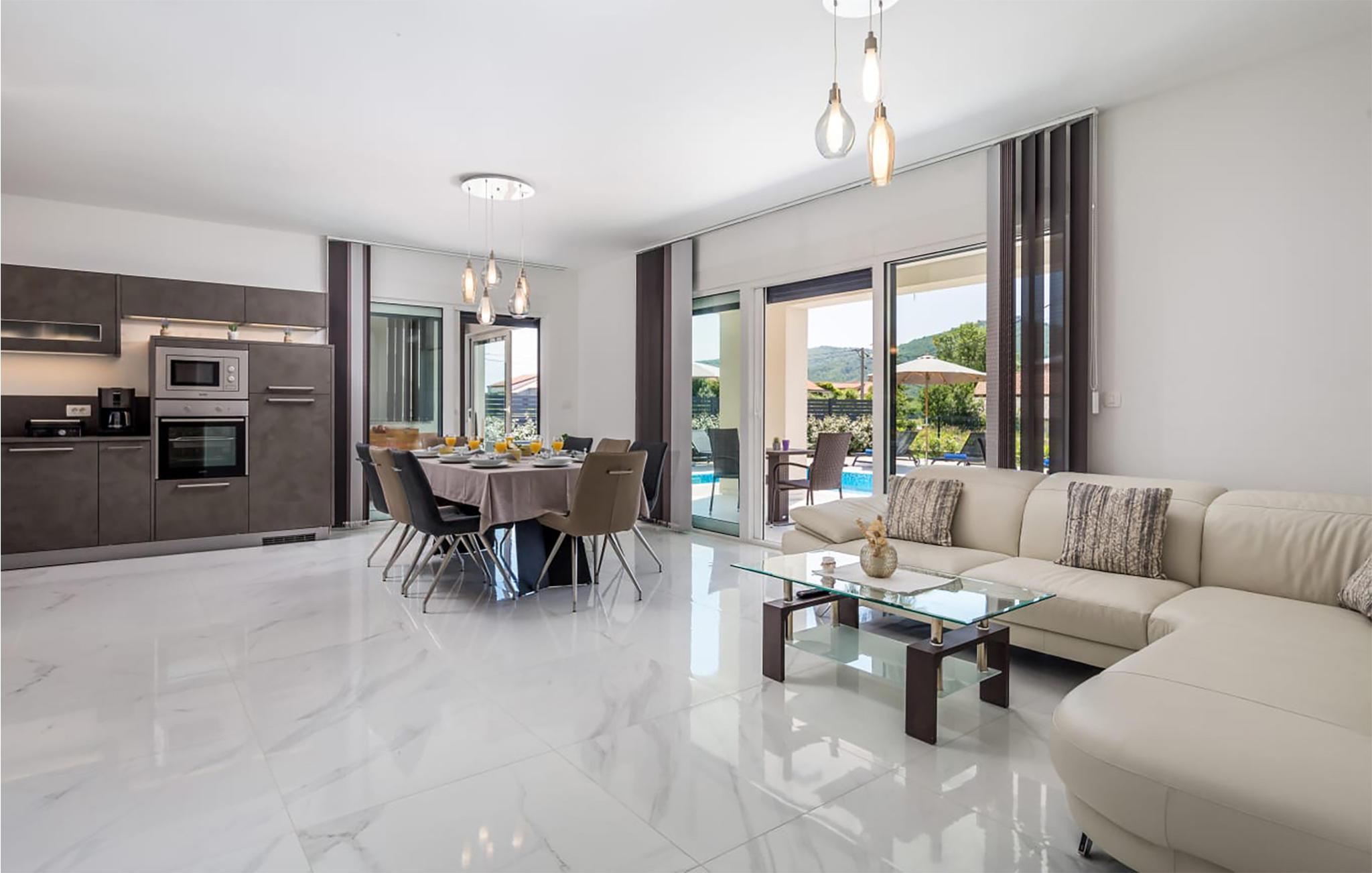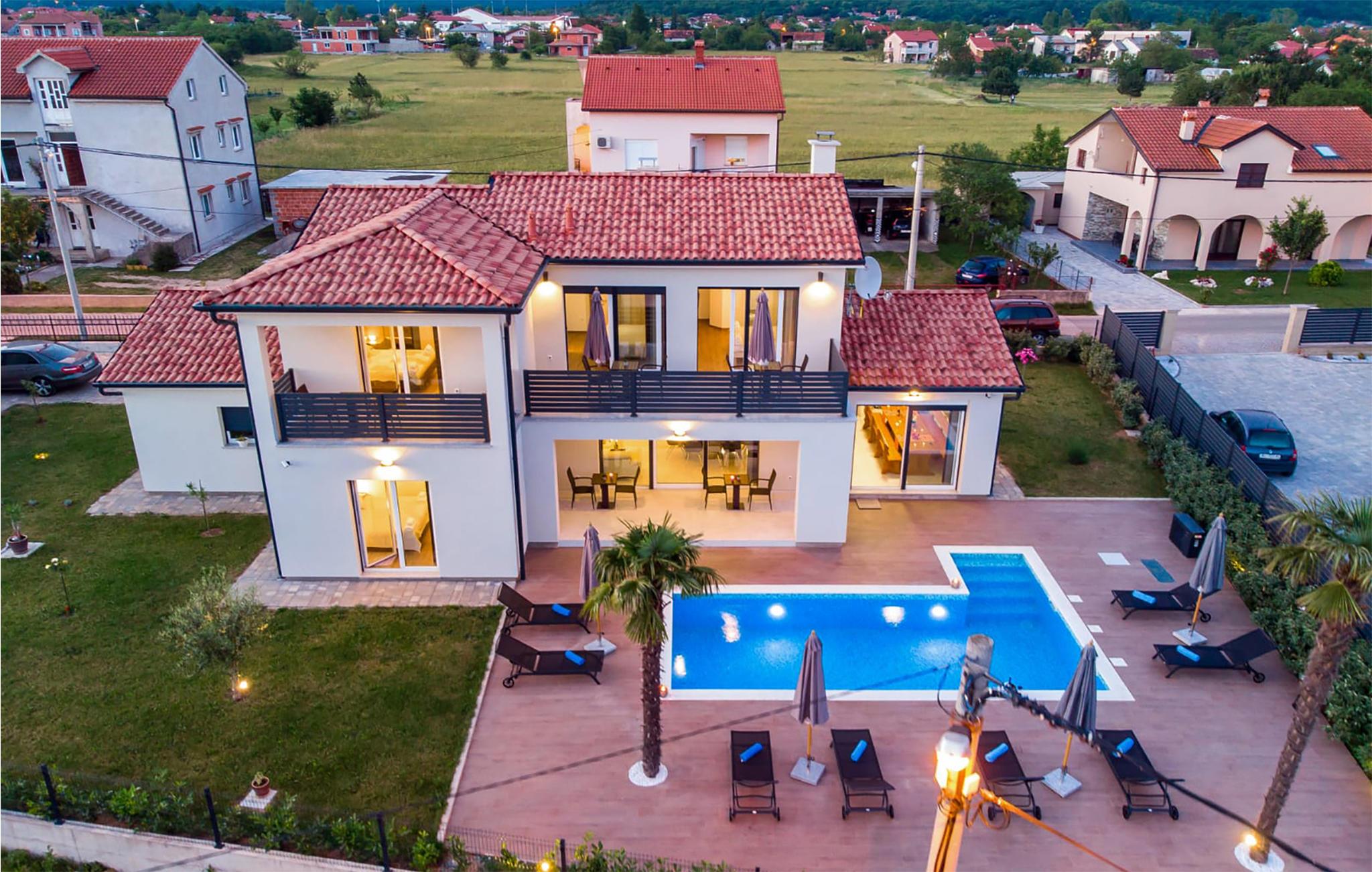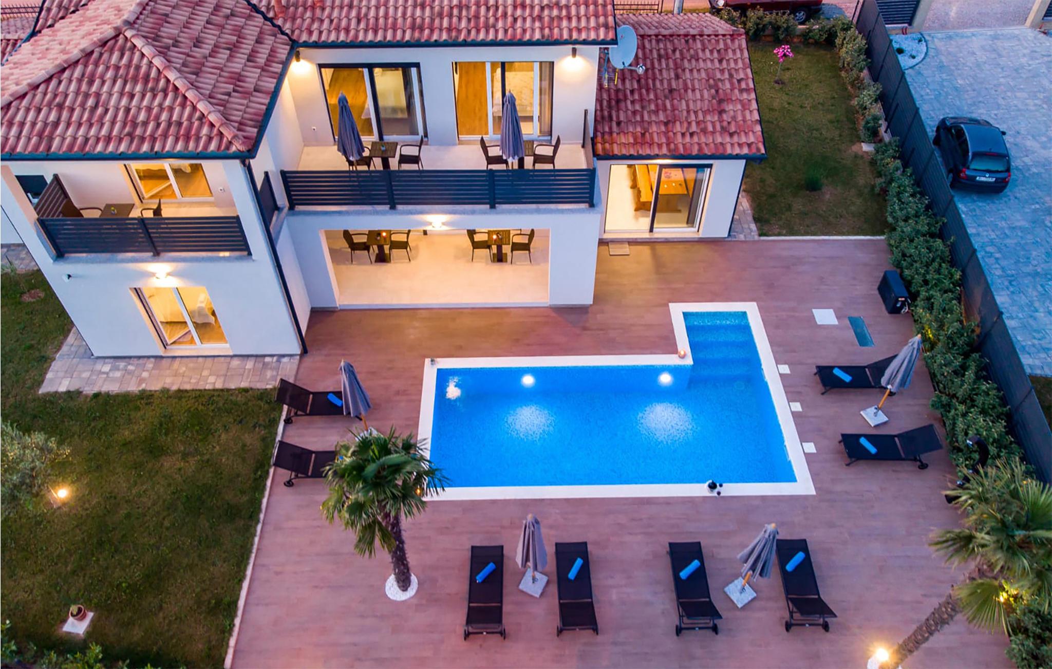 Planlægger I en ferie med jeres store familie eller vil I holde ferie sammen med to familier? Her finder I jeres personlige ferieoase. I har masser af plads uden at skulle give afkald på jeres privatliv. Antallet af soveværelser og badeværelser gør, at I ikke kommer i vejen for hinanden, og alle har deres eget rum. I den skønne, store stue mødes I igen og kan træde direkte ud på den overdækkede terrasse og drikke morgenkaffen. Børnene vil elske at hoppe i den opvarmede swimmingpool og lege i vandet lige fra morgenstunden. Ud over liggestolene omkring poolen er der også private balkoner, hvor I kan trække jer tilbage og læse en spændende bog, mens I stadig kan holde øje med børnene, der leger i haven. Det indhegnede område er derfor velegnet til små børn og tilbyder jer desuden flere overdækkede parkeringspladser, så I ikke skal sætte jer ind i et overophedet køretøj, når I skal afsted på jeres udflugter.