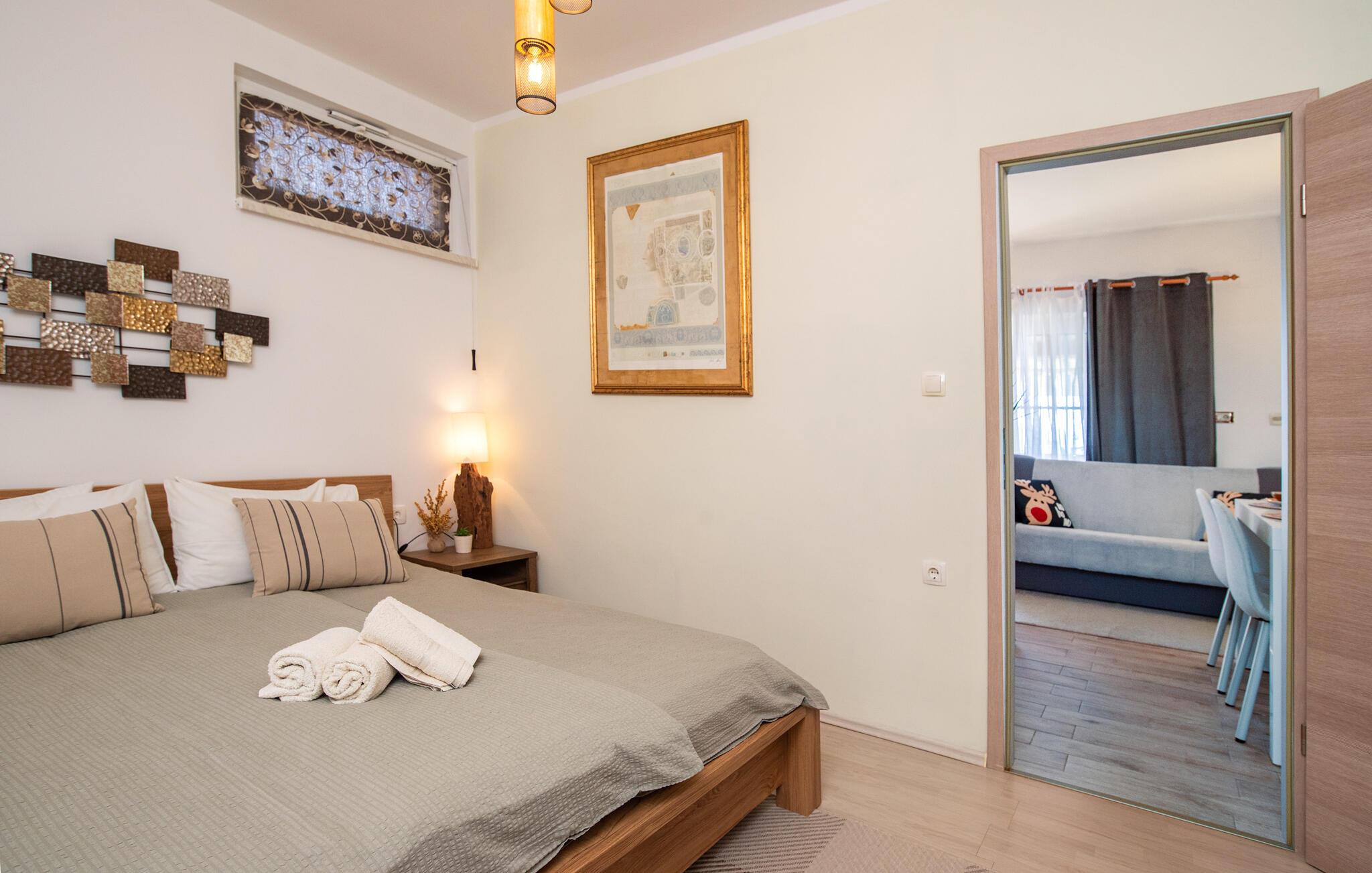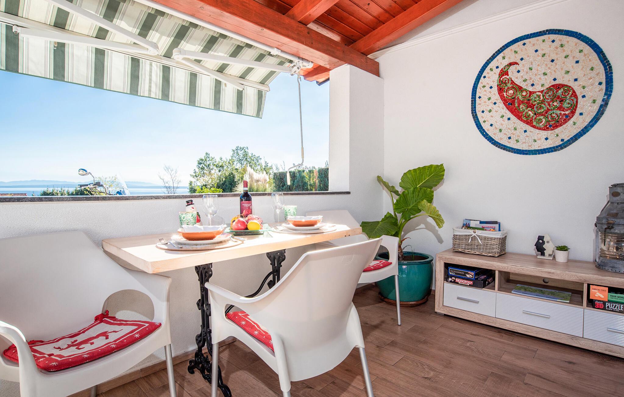Nyd ferien i denne charmerende ferielejlighed på Opatija Riviera. Den rolige beliggenhed og den fantastiske havudsigt sikrer en unik feriefølelse. Den dejlige indretning skaber en hyggelig atmosfære, der er perfekt til par. Den venlige opholdsstue og de fine detaljer formidler familiecharme og lægger op til at slappe af. Begynd dagene med morgenmad på balkonen, mens I kigger ud over kysten og lader hverdagen bag jer.
