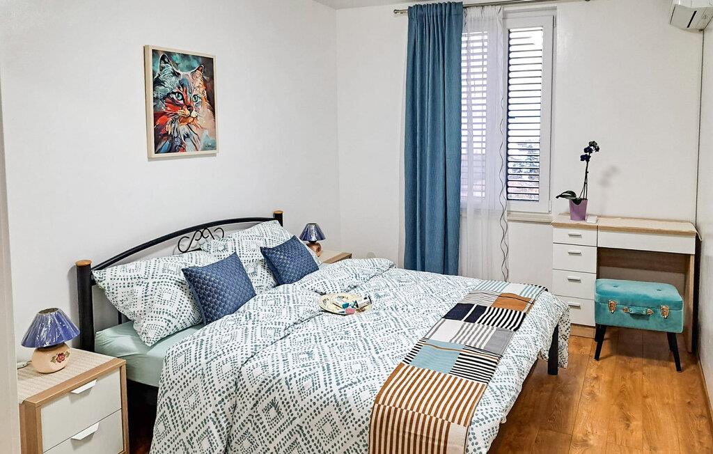 Denne charmerende og kærligt møblerede lejlighed ligger i gåafstand fra havet, restauranter og butikker og tilbyder komfortabel indkvartering, mens I kombinerer en strandferie med spændende udflugter med venner eller familie. Planlæg jeres aktiviteter over afslappende måltider og slap af i den indbydende stue om aftenen med en god film.