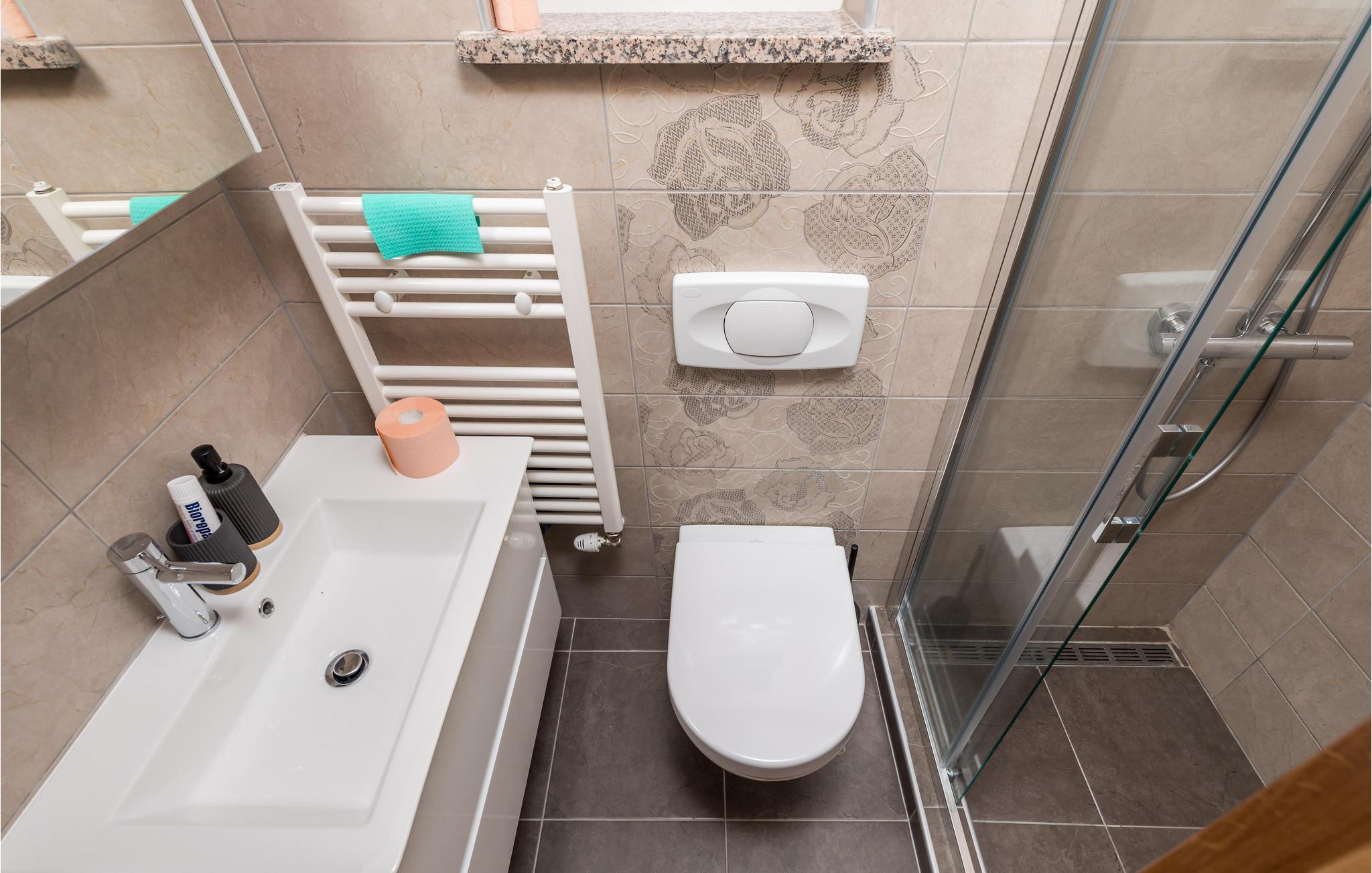 Badeværelse 6m2 (nr. 2) - WC. Varmt og koldt vand. Bruser