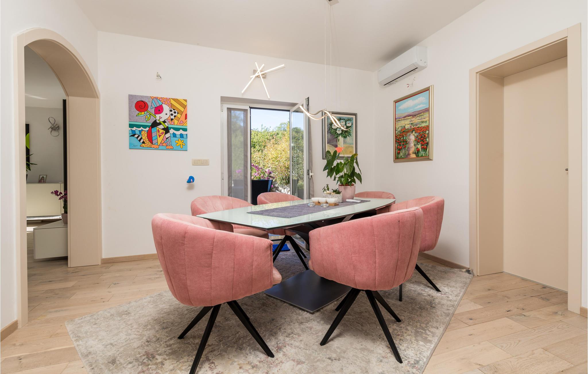 I den lille by Matulji ovenover den kroatiske riviera byder dette rummelige feriehus jer velkommen. I de lyse rum kommer hele familien hurtigt til at føle sig godt tilpas. Den smagfulde, moderne indretning byder på lækre farvesammensætninger og charmerende detaljer såsom de synlige loftsbjælker, der frembringer en hjemlig og behagelig atmosfære. Vælg mellem de mange komfortabelt indrettede værelser, hvor I kan hvile ud mellem hyggelige fællesaktiviter. De attraktive fællesområder danner gode rammer for at lave mad, spise og grine sammen.