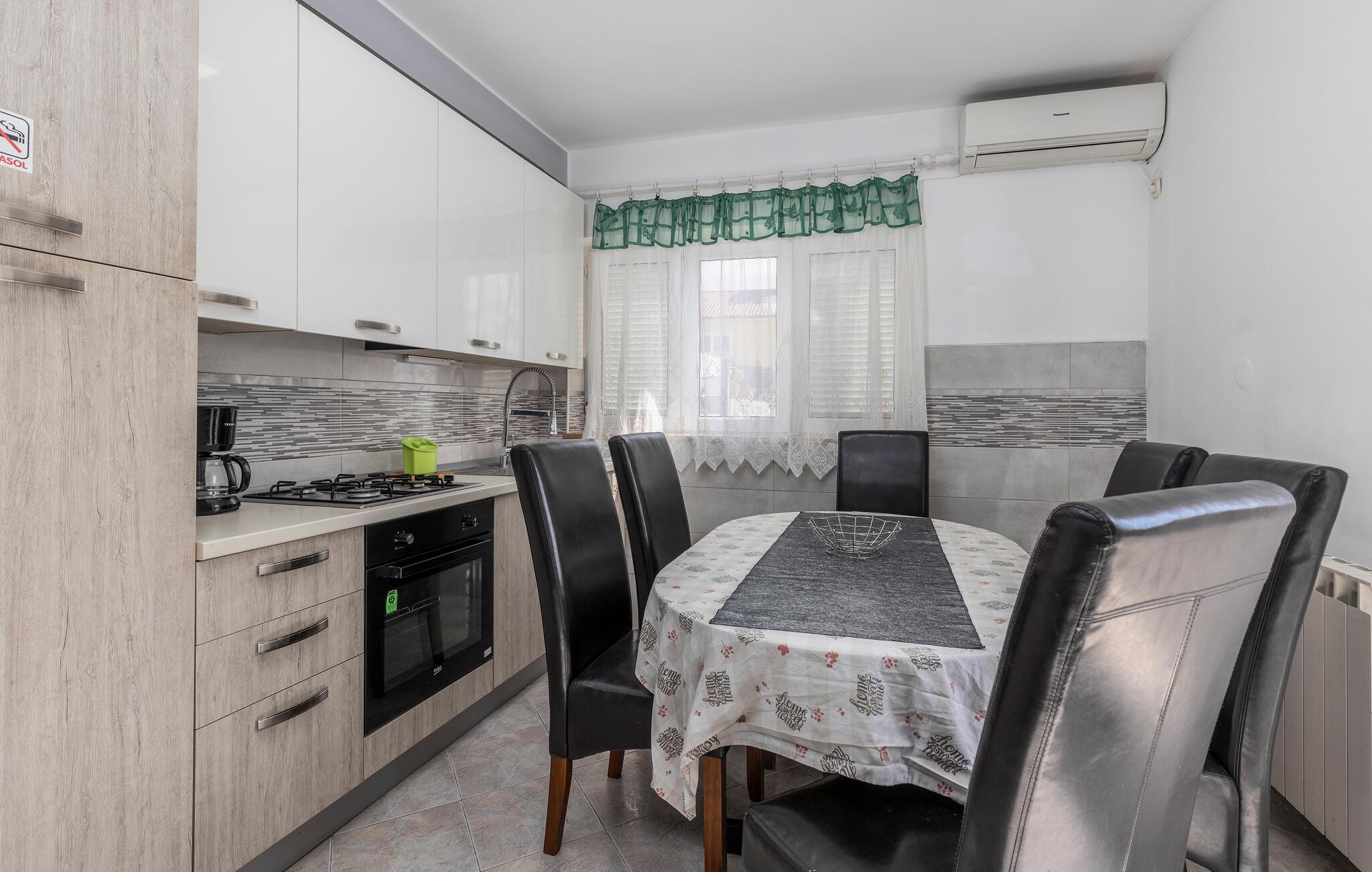 Velkommen til dette velholdte hus, som byder på flere komfortable ferielejligheder. Lejlighederne byder på god plads til både små og store familier, og med sin gennemtænkte indretning og moderne faciliteter dannes der en atmosfære, hvor man ikke kan undgå at slappe af og komme ned i tempo. Lad blot dagen starte ud med en morgenkaffe på altanen, inden I begiver jer ned til den fælles have med en god bog og nyder solen, kun afbrudt af en behagelig tur i spabadet. Børnene kan plaske rundt i poolen lige så tosset, de vil, og fra solterrassen kan I se frem til en fremragende udsigt over Opatija Riviera.