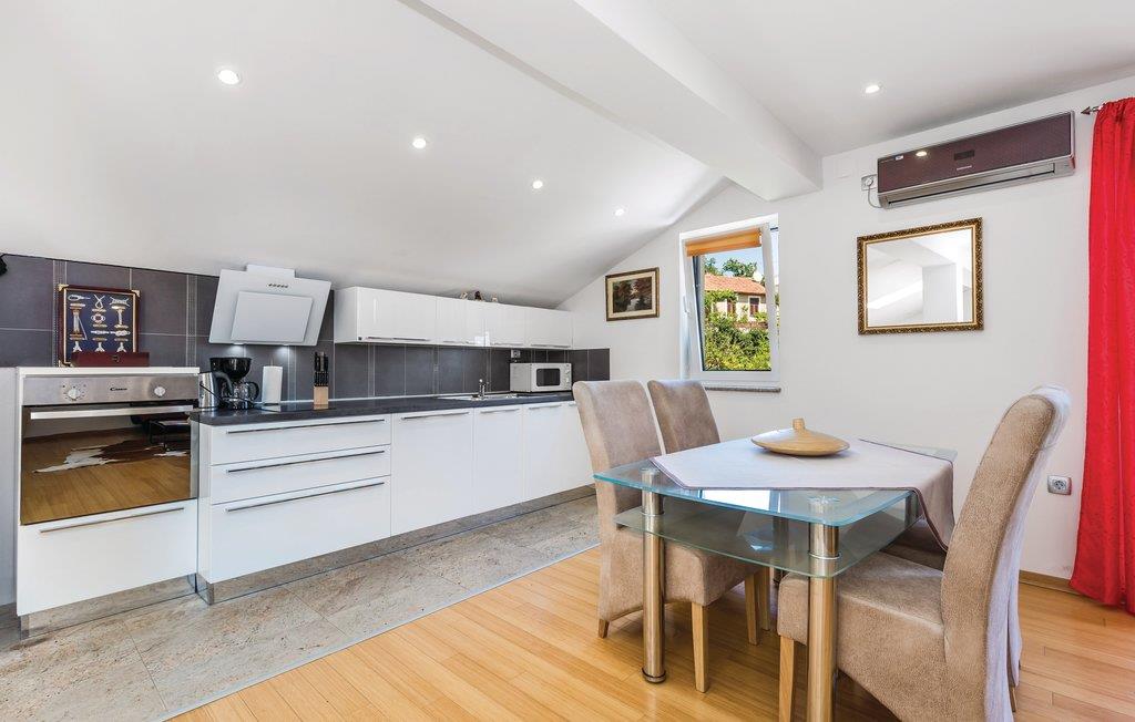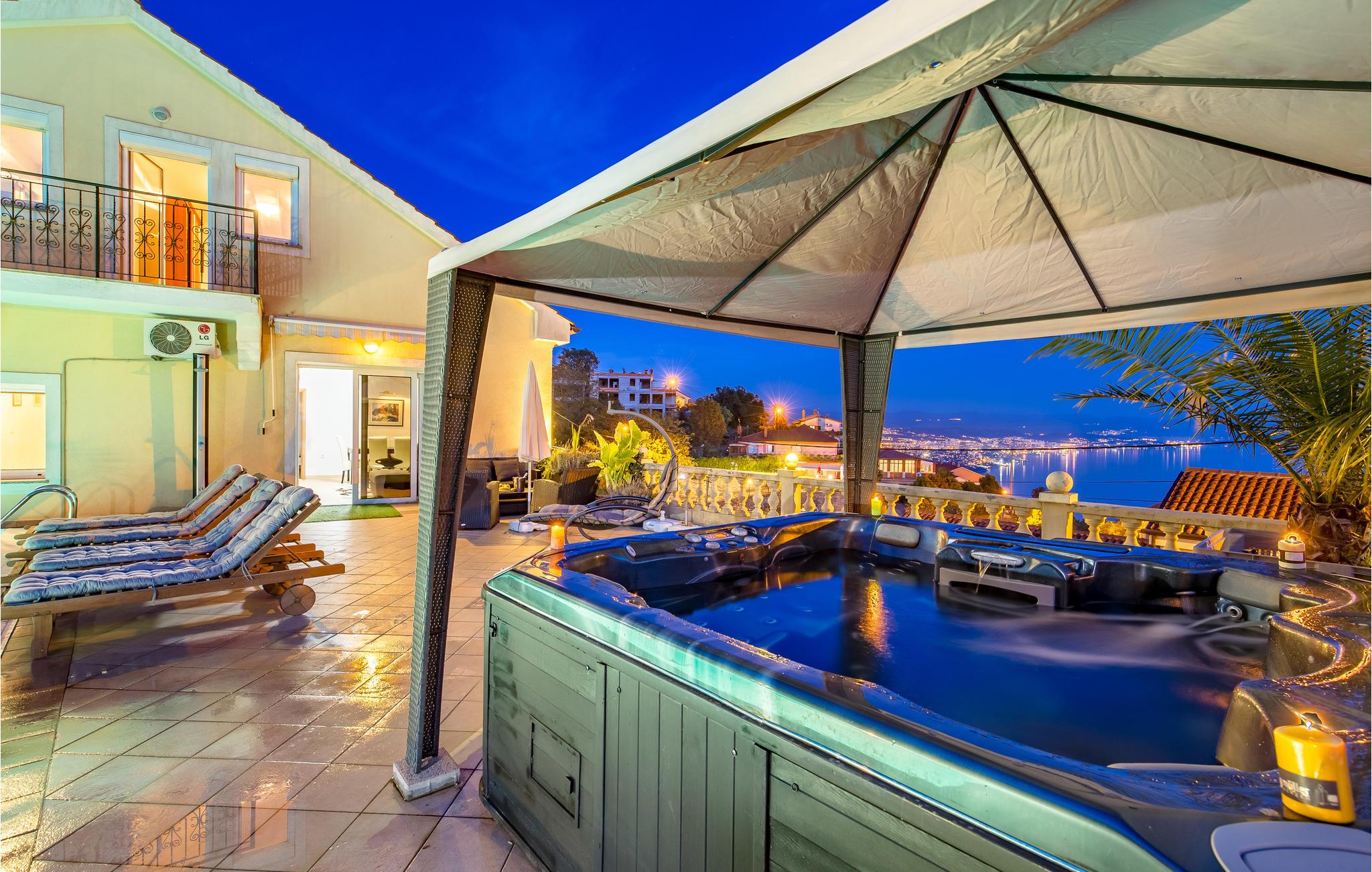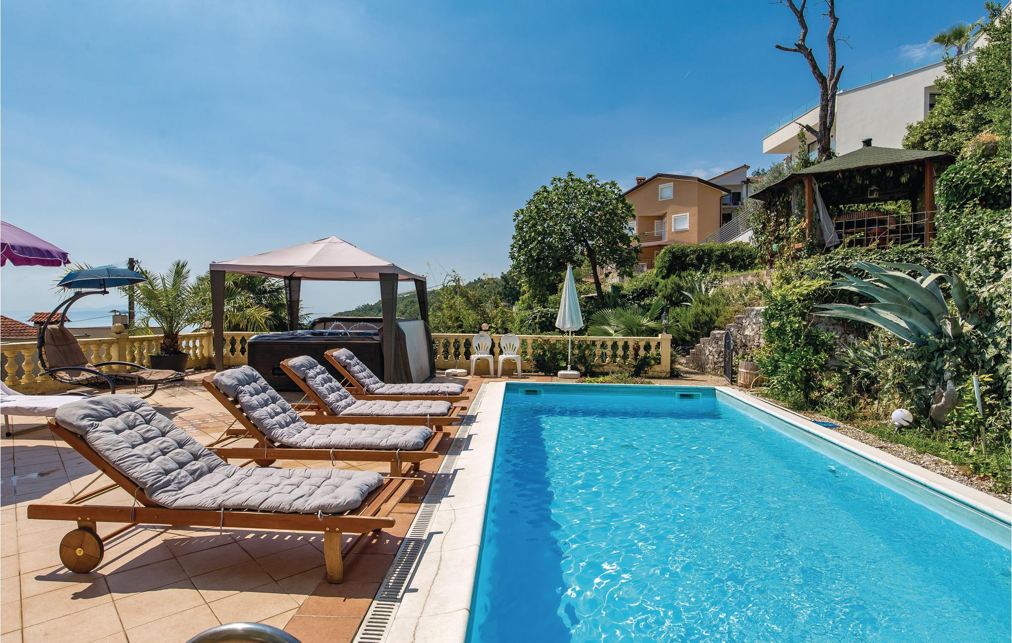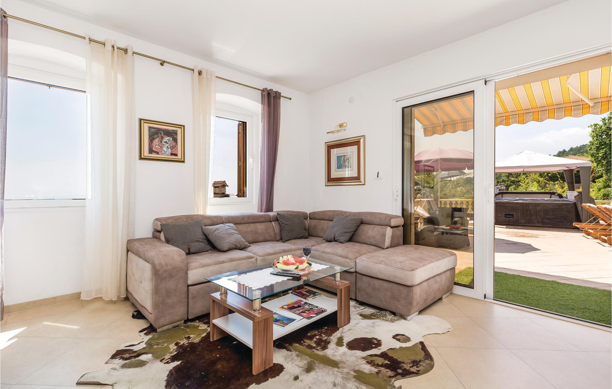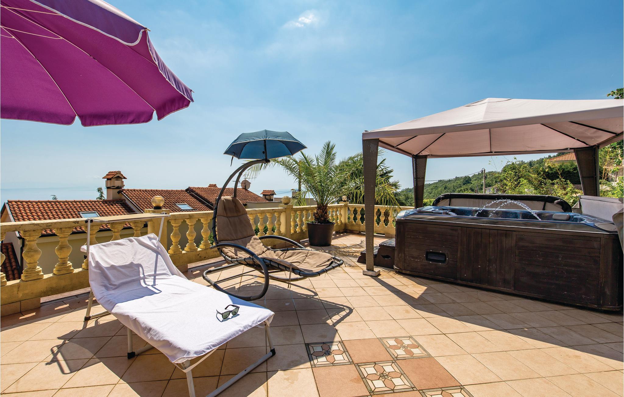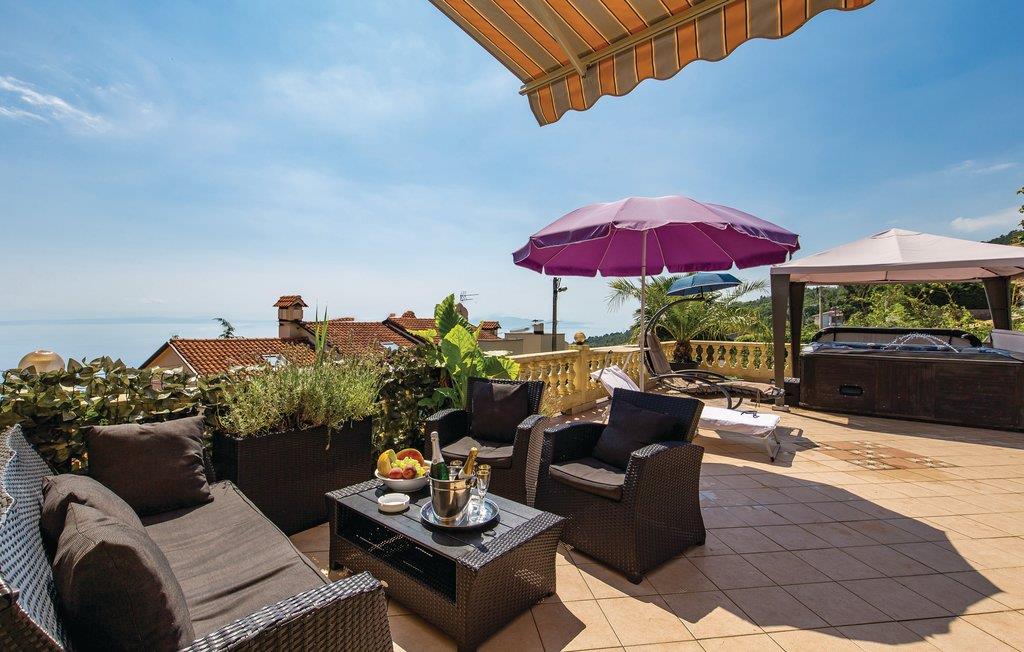 Oplev en perfekt ferie oven for Kvarn-Bugten, i nærheden af naturparken Ucka, hvor den lille bebyggelse Bregi ligger. Feriehuset er smagfuldt og komfortabelt indrettet. Stueetagen og første sal er forbundet med en udvendig trappe. Den minimale loftshøjde i en del af huset udgør 90 cm, hvad der imidlertid ikke påvirker komforten på nogen måde, da huset er meget rummeligt. Slap af i saunaen, tag en dukkert i poolen, og nyd fra terrassen udsigten til havets blå og de idylliske skoves grønne. Tilbring hyggelige timer i havepavillonen med grill eller i den rustikke taverne med en kamin, et fuldstændigt udstyret køkken og et billardbord. Oplev duften af lavendel og det grønne farvespil i olivenlundene. Grunden er dejligt anlagt og indhegnet, hvad der giver jeres børn mulighed for at lege uforstyrret. Med bilen når I hurtigt strandpromenaderne og badestrandene, hvor I kan blive afkølet i det krystalklare hav. Kør til kulturarrangementer, koncerter og fremragende restauranter i Opatija. Gå romantiske ture i de eventyragtige skove i nationalparken Ucka, eller tag på andre udflugter til de omkringliggende øer, nationalparkerne Risnjak og Plitvice-Søerne og landsbyerne i Istrien.