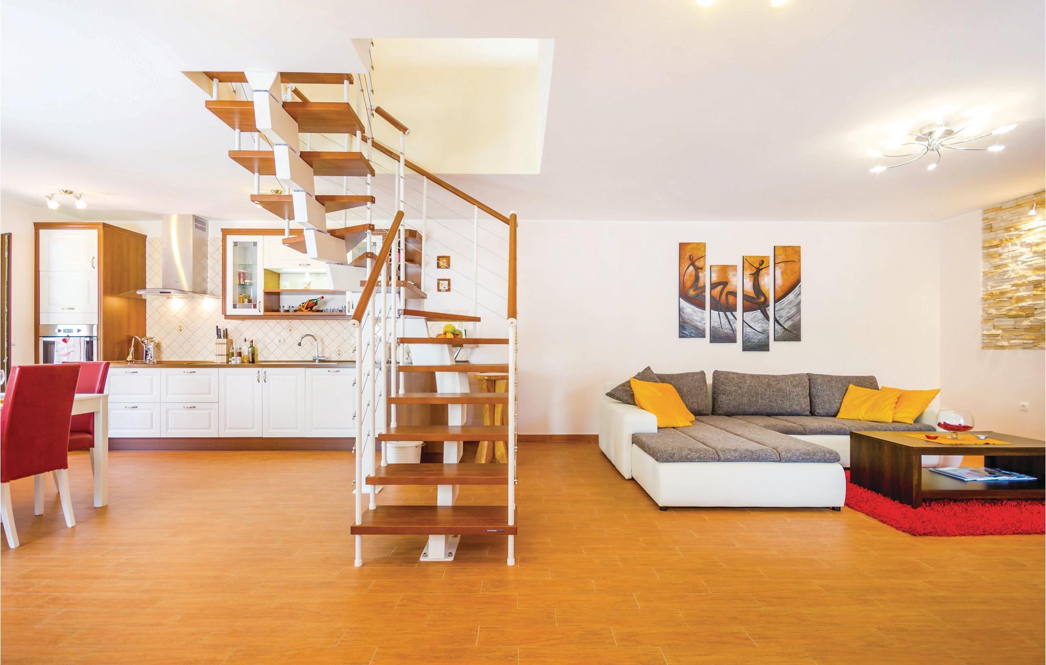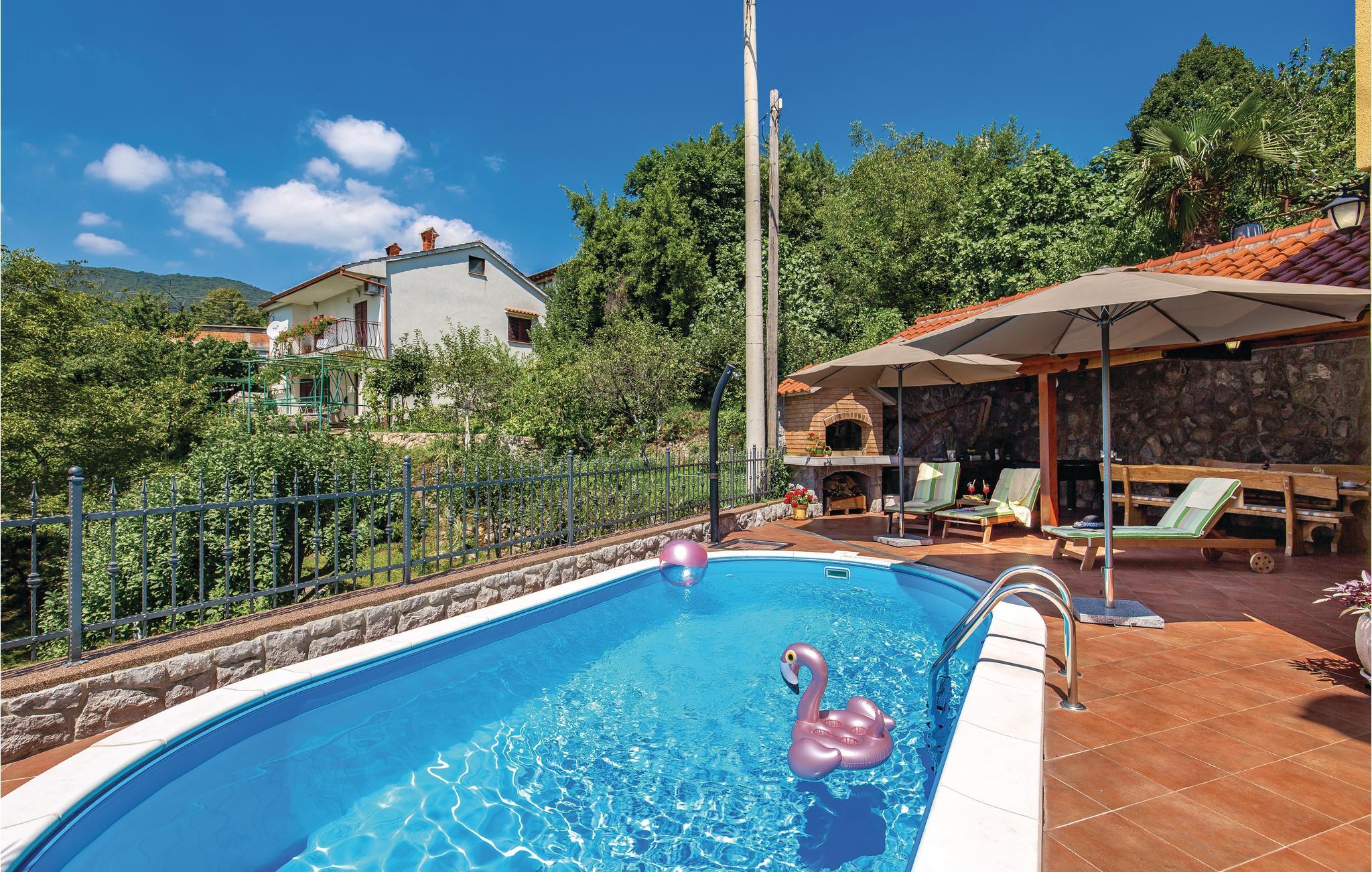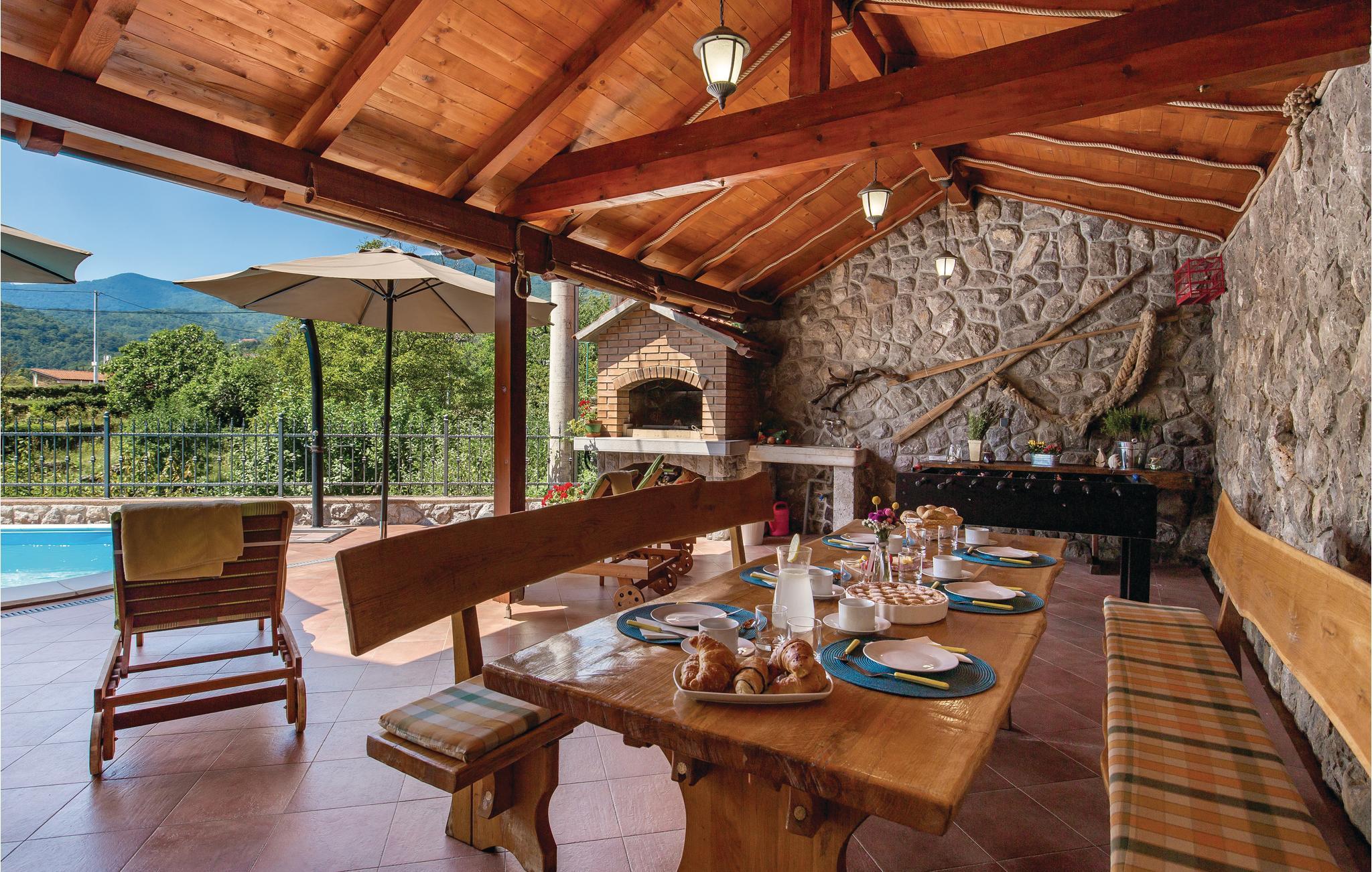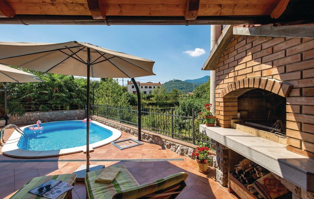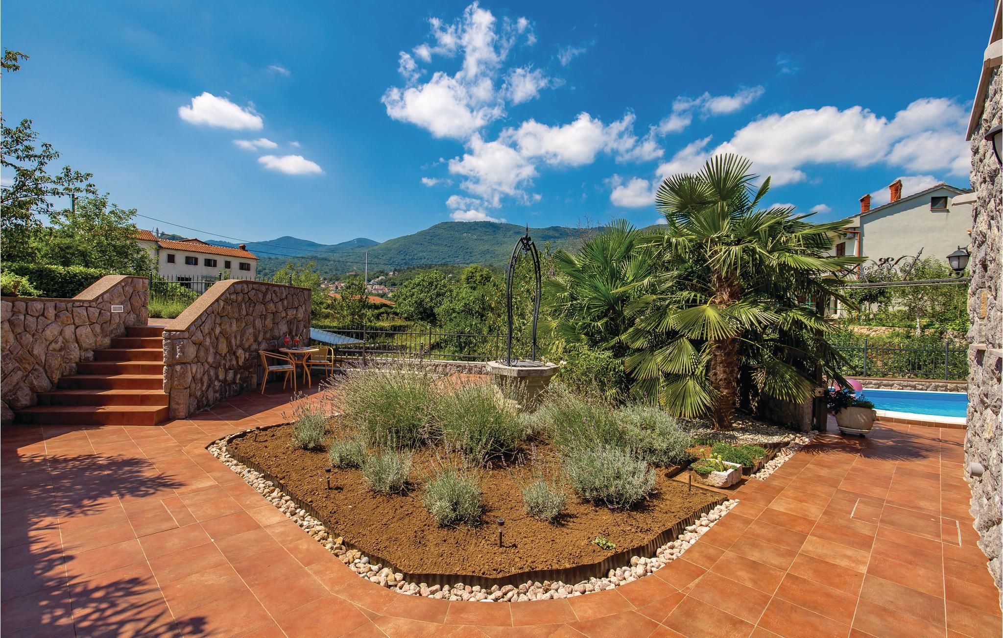 De første feriegæster i Optatija-området kom frem allerede i 1844. Den lille fiskerlandsby kunne aldrig have drømt om den fremtidige popularitet, som den kan se tilbage på nu med stolthed. Også andre byer har udviklet sig i samme retning, deriblandt den lille by Bregi, der ligger over Ucka-bjergene. Her, I Bregi, venter dette skønne og komfortabelt indrettede feriehus på jer. Ved indretningen var ejeren opmærksom på at give sine gæster en atmosfære af ”home away from home”. Her kan I afslappet nyde jeres ferie omgivet af indretningens behagelige farver eller ved poolen. På de varme sommerdage har I mulighed for at se på det vidunderlige landskab fra terrassen. Den øverste etage når I ad en stejl indvendig trappe med gelænder. Hvis I vil være sportsligt aktive i ferien, kan I være det på det kondiudstyr, der er i det lille hus på grunden. Fra huset kommer I nemt til de berømte seværdigheder og attraktioner langs kysten af Opatija, hvor der venter rige gastronomiske muligheder og en lang række kultur- og underholdningsarrangementer året rundt, der lægger op til en herlig ferie. Selvom Kvarnerbugten godt nok er mest levende og besøgt om sommeren, er der også mange gode udflugtsmål resten af året. Hvis I foretrækker det lidt afsides fra masserne, så kan I besøge mange andre arrangementer og tage på forskellige vandreture. I begyndelsen af året bliver der startet på de berømte fastelavnsoptog i byen Rijeka. Til marts venter de åbne wellness-dage, eller dagene, hvor I selv kan plukke asparges eller frugt i naturen. I området venter der også tidssvarende kunst, museer, gallerier, kirkekunst, mindesmærker og meget andet. Kort sagt, så er Kvarnerbugten et oplagt rejsemål til alle gæster.