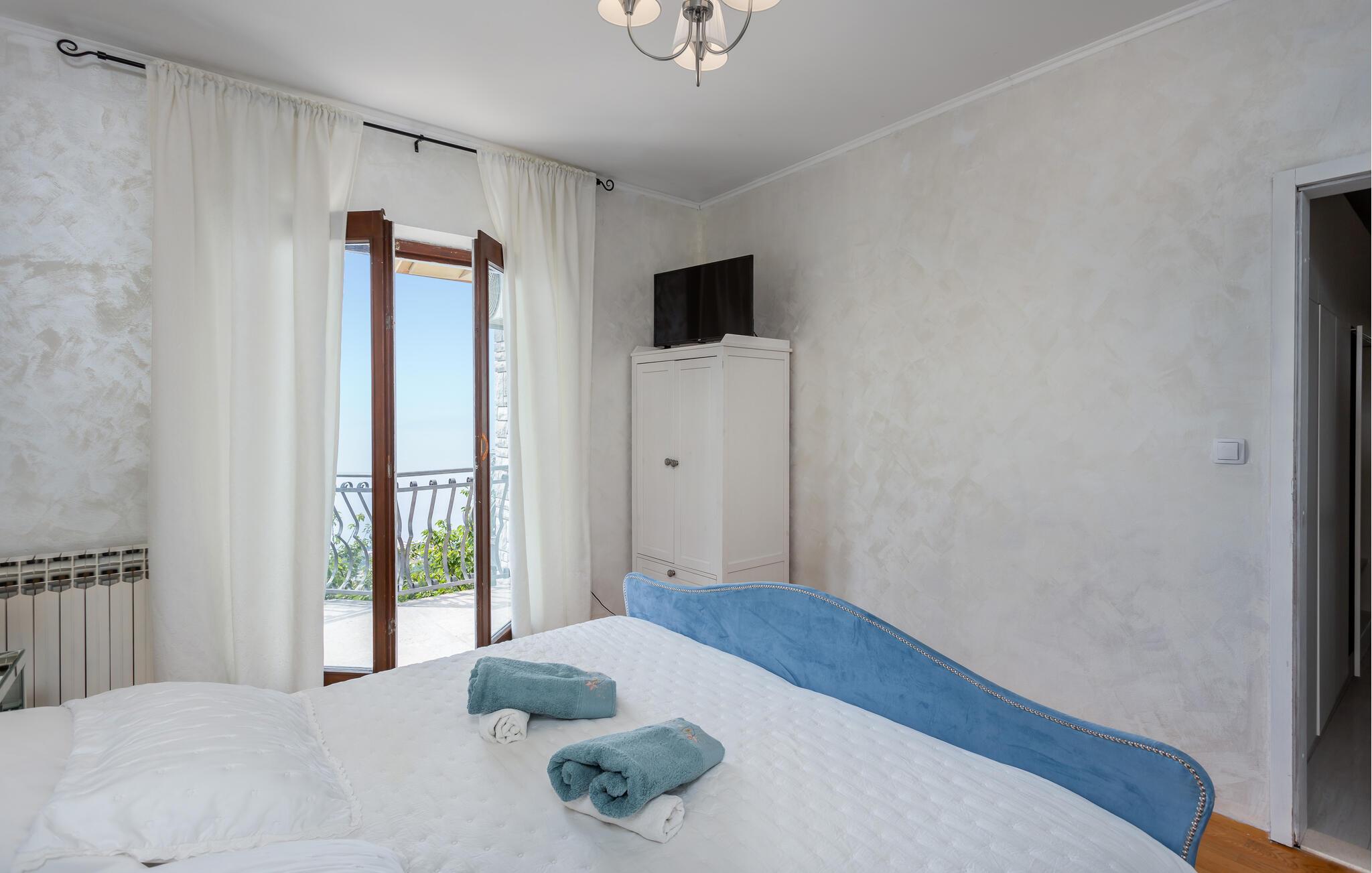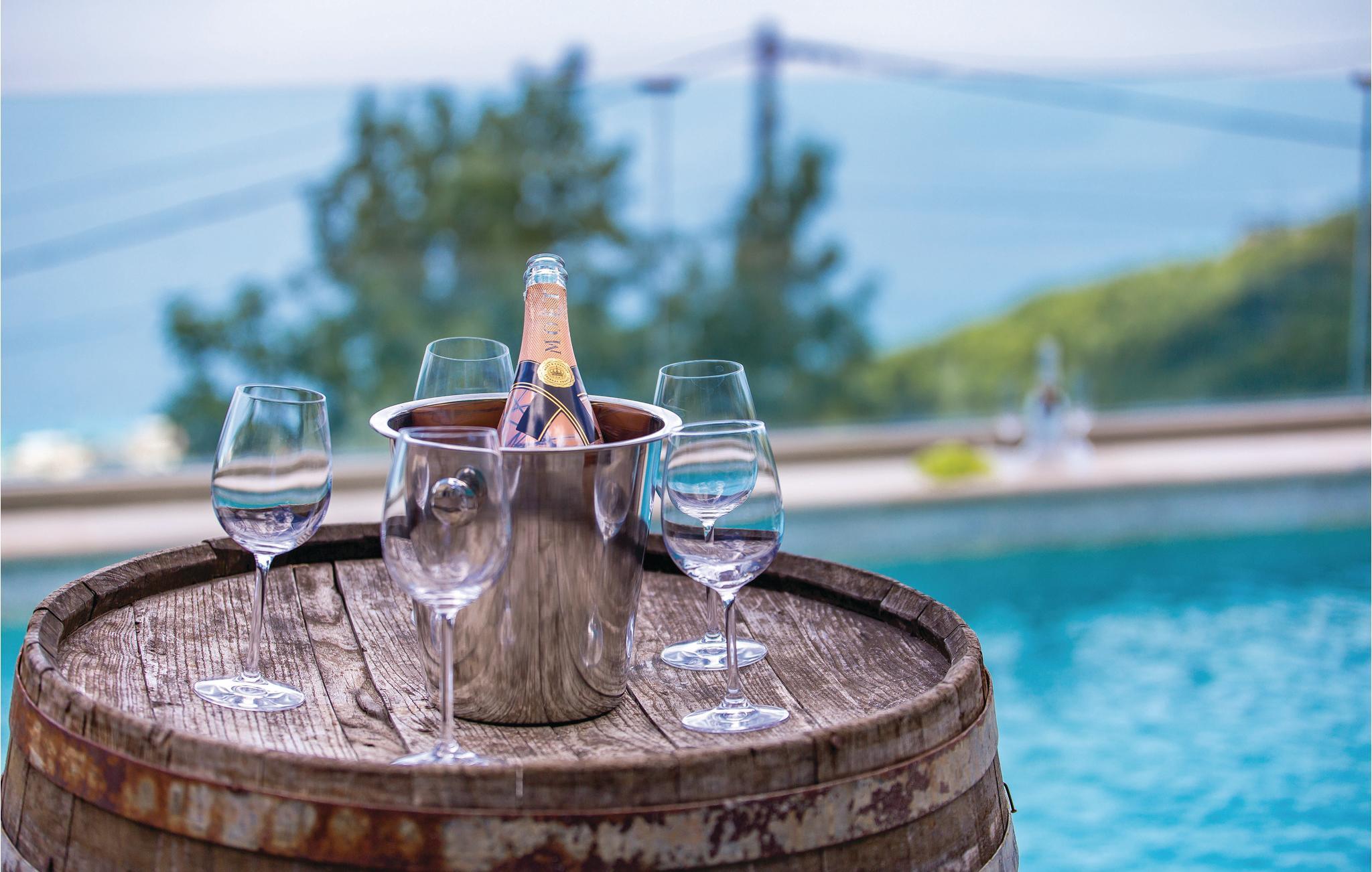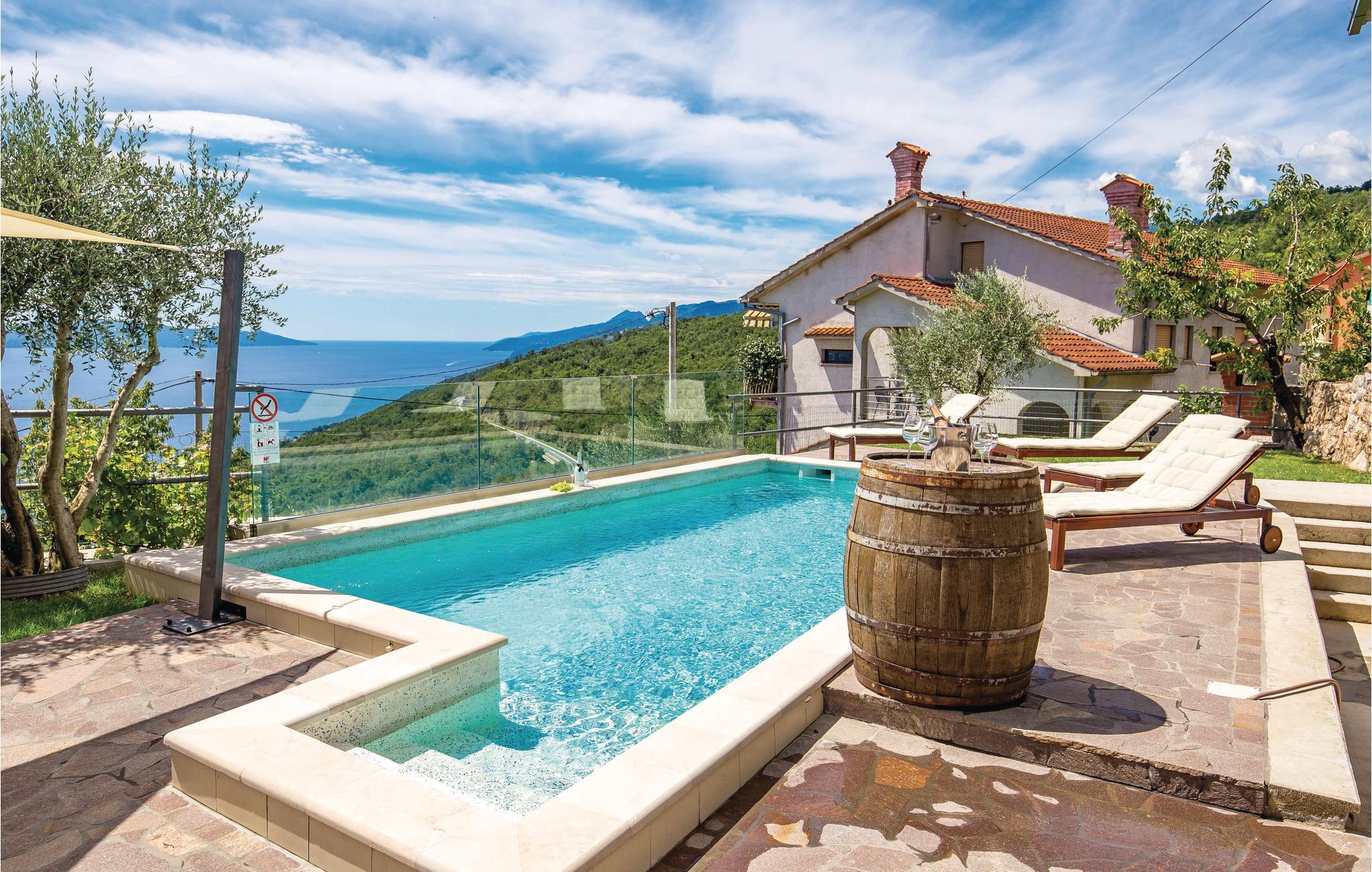 Disse komfortable lejligheder ligger i rolige omgivelser med panoramaudsigt over havet. I CKO570 kan I slappe af ved poolen og lave mad på grillen. Gæsterne fra DKO811 kan glæde sig til en tur i whirlpoolen. På kun få minutter med bil kan I køre ind til den dejlige by Opatija, hvor I finder dejlige strande samt gode restauranter og caféer. I Opatija er der også masser af spændende arrangementer i løbet af sommeren. Lejligheden CKO811 ligger i samme hus.