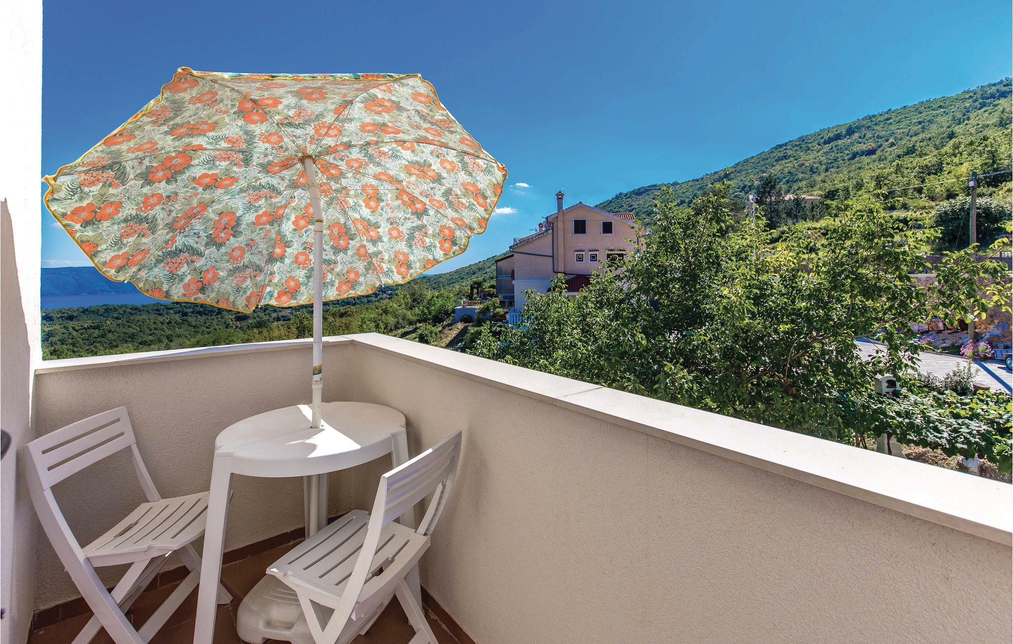 I en lille by ved en skråning af Ucka bjergkæden ligger denne venlige ferielejlighed, som strækker sig over stueetagen og første sal. Boligen er indrettet med meget kærlighed og befinder sig i rolige omgivelser. Lejligheden ligger over Brsec og byder på en fantastisk udsigt. For at komme til stueetagen skal I gå på en del trapper. Her finder I den overdækkede terrasse. Boligen ligger det perfekte sted for at opdage Istrien og kvarnerbugten, såvel som strandene neden for Brsec, som er nogle af de flotteste strande ved Adriaen.