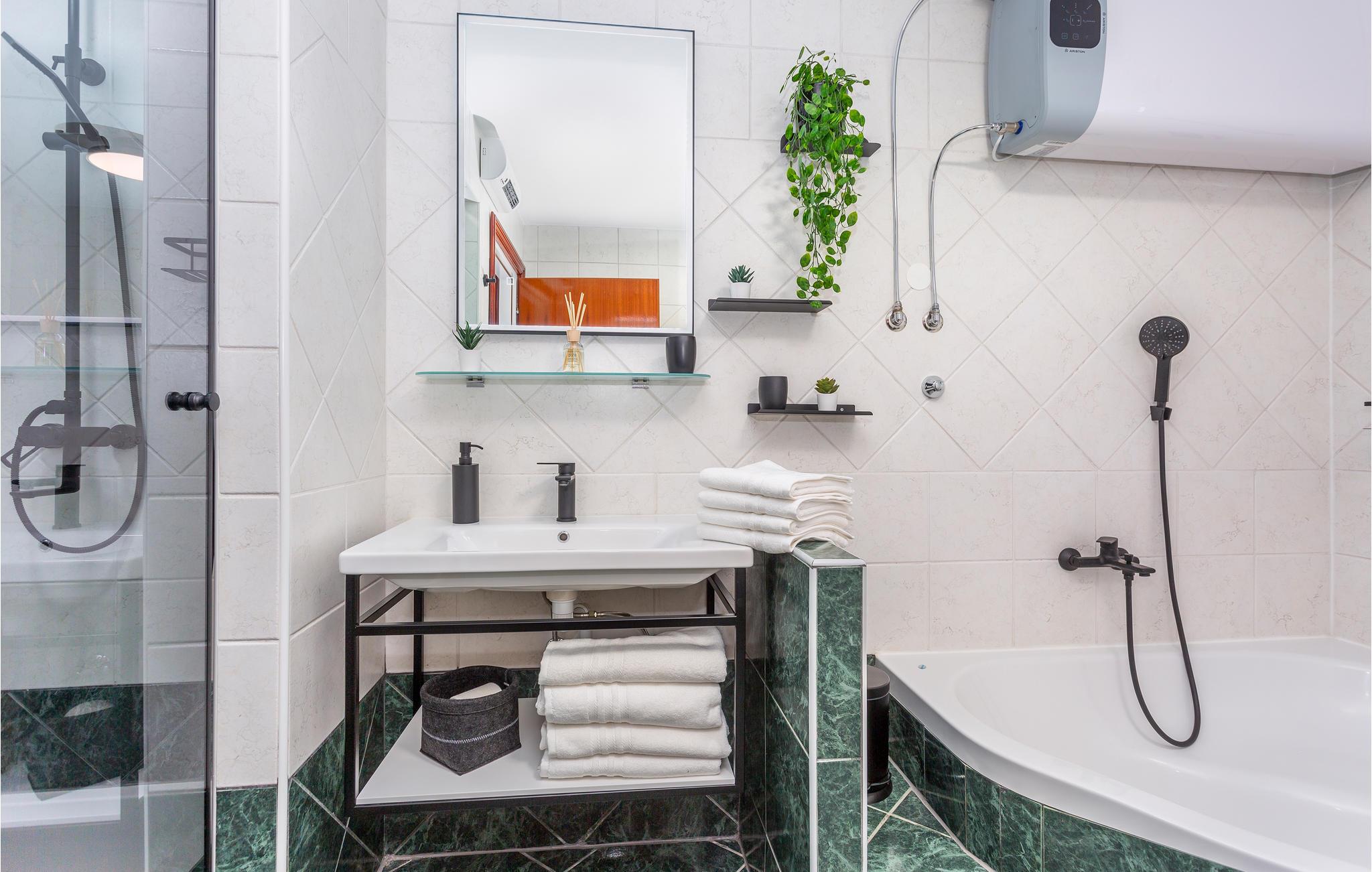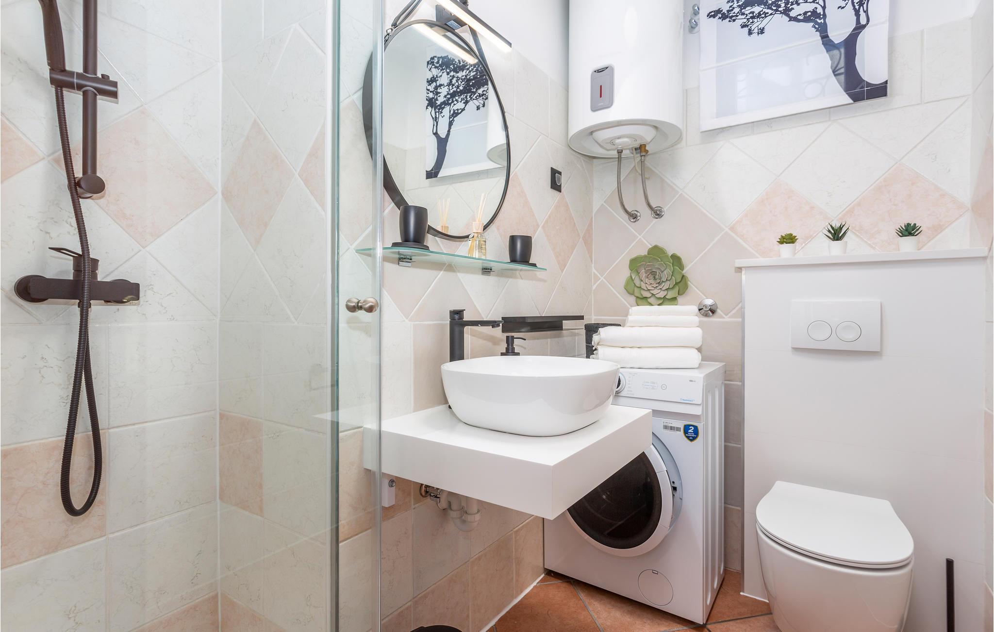 Badeværelse 8m2 (nr. 1) - WC. Varmt og koldt vand. Bruser og badekar