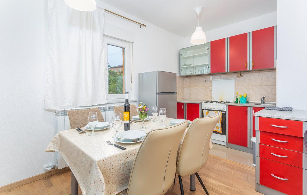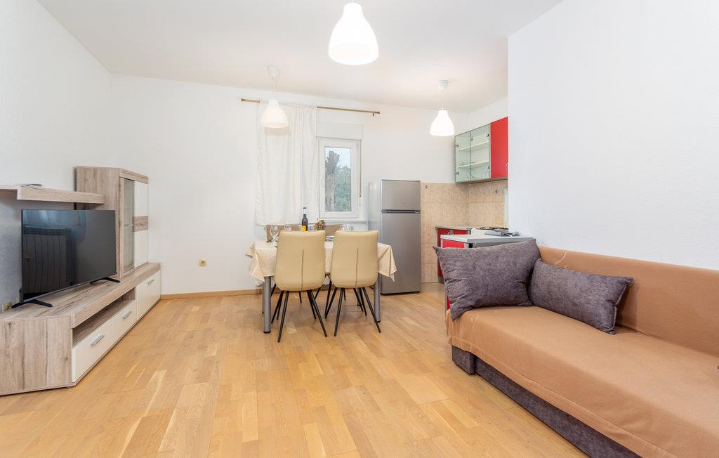 Der er en legeplads ikke langt fra lejligheden, og den nærmeste restaurant er heller ikke langt væk, så I kan stifte bekendtskab med det kroatiske køkken. Afmærkede vandrestier giver jer også mulighed for at lære områdets smukke natur bedre at kende. De smukke strande i området kan nås efter en kort køretur og lægger op til at blive hængende, bade og nyde.