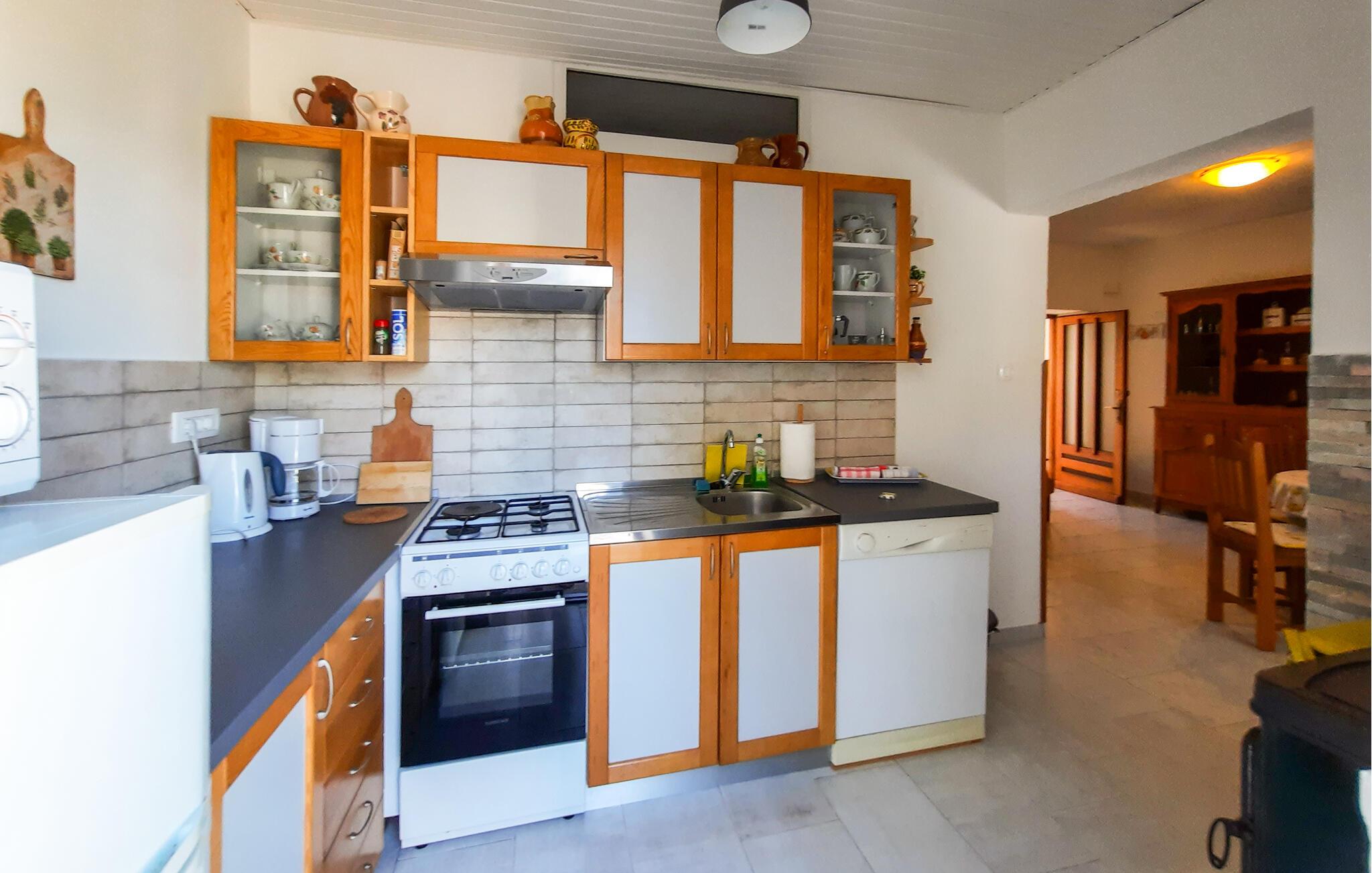 Tilbring en uforglemmelig ferie i dette autentiske, renoverede stenhus i Dobrec, som er en sand ferieoase. Når I står op og træder ud på altanen, vil I blive mødt af en enestående panoramaudsigt over det glitrende Adriaterhav. Nyd jeres feriemåltider her gennem dagen. I kommer helt sikkert også til at tilbringe meget tid på den vindbeskyttede terrasse, som er udstyret med komfortable havemøbler, liggestole til solbadning og et udespa til fire personer - det perfekte sted at nyde en iskold forfriskning. Når I har brug for en pause fra solen, er det rummelige og veludstyrede feriehus et ideelt sted at slappe af.