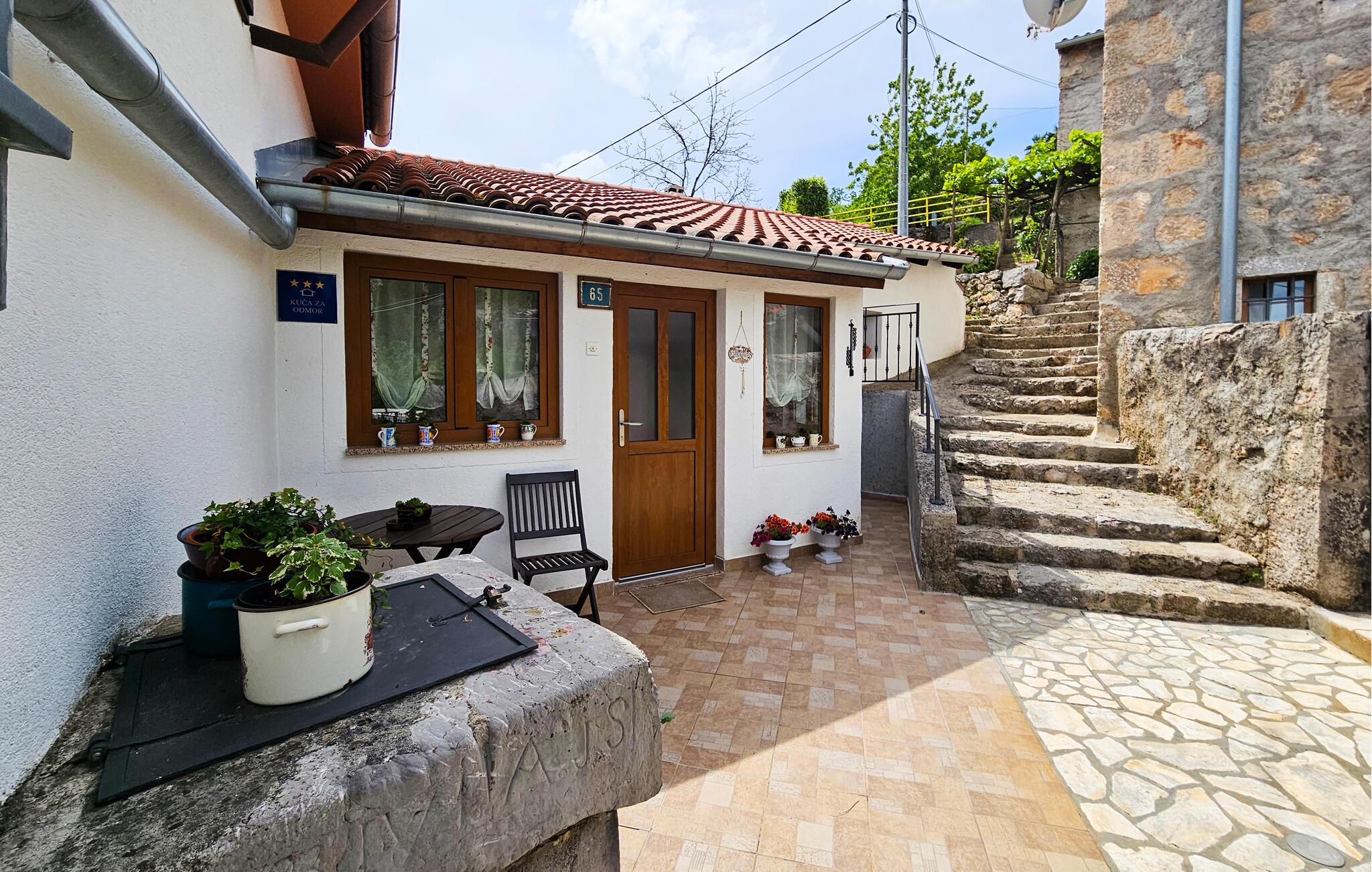 Charmerende stenhus med en rolig beliggenhed i bakkerne langs Opatija rivieraen og med panoramaudsigt over havet fra altanen.