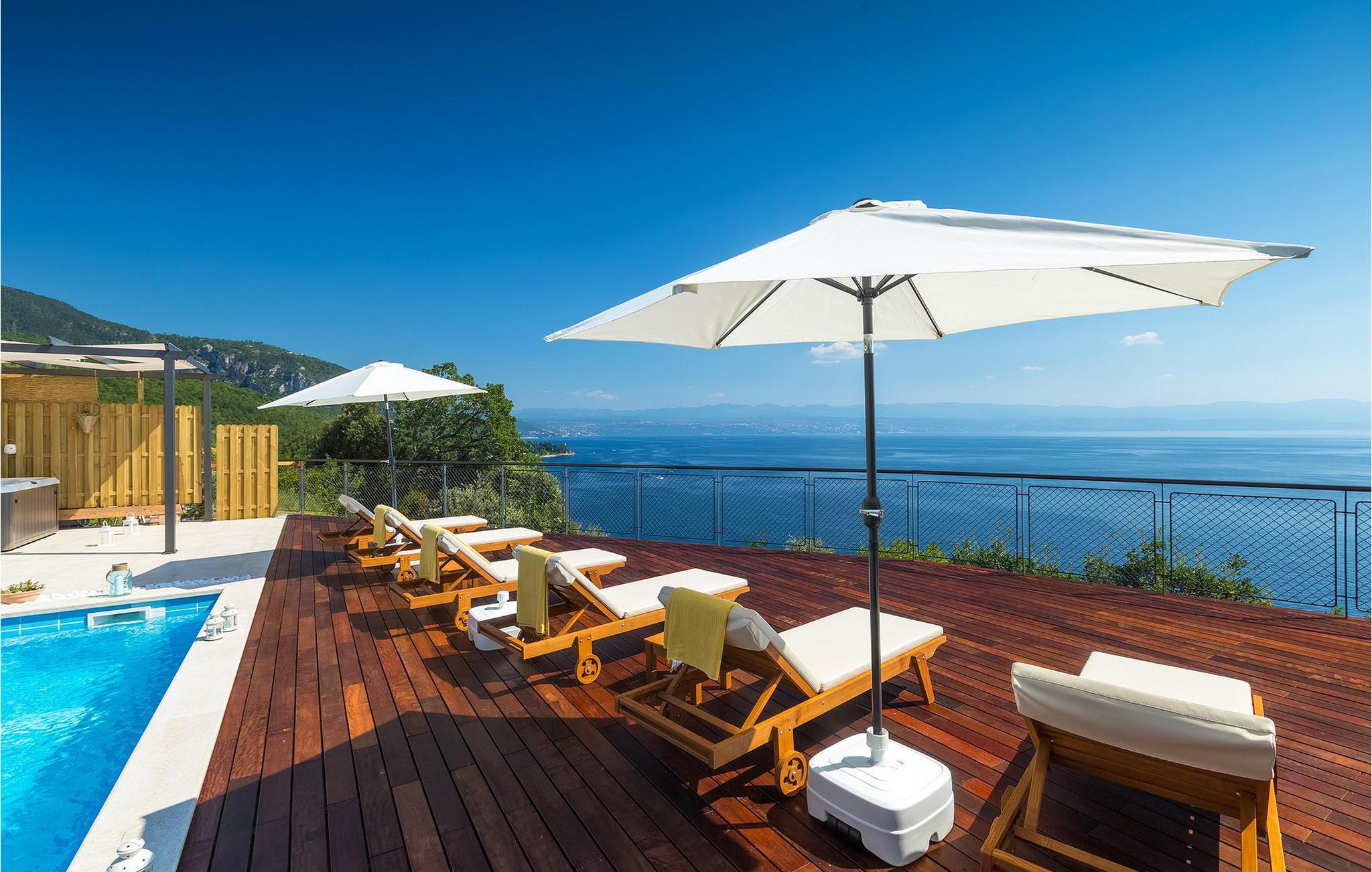 Den smukke Villa Ivancic ligger på en klippe lige ud til havet og tilbyder virkelig alt, hvad du behøver på en ferie: betagende havudsigt, en privat pool, talrige loungeområder samt en sauna og udendørs jacuzzi!!
