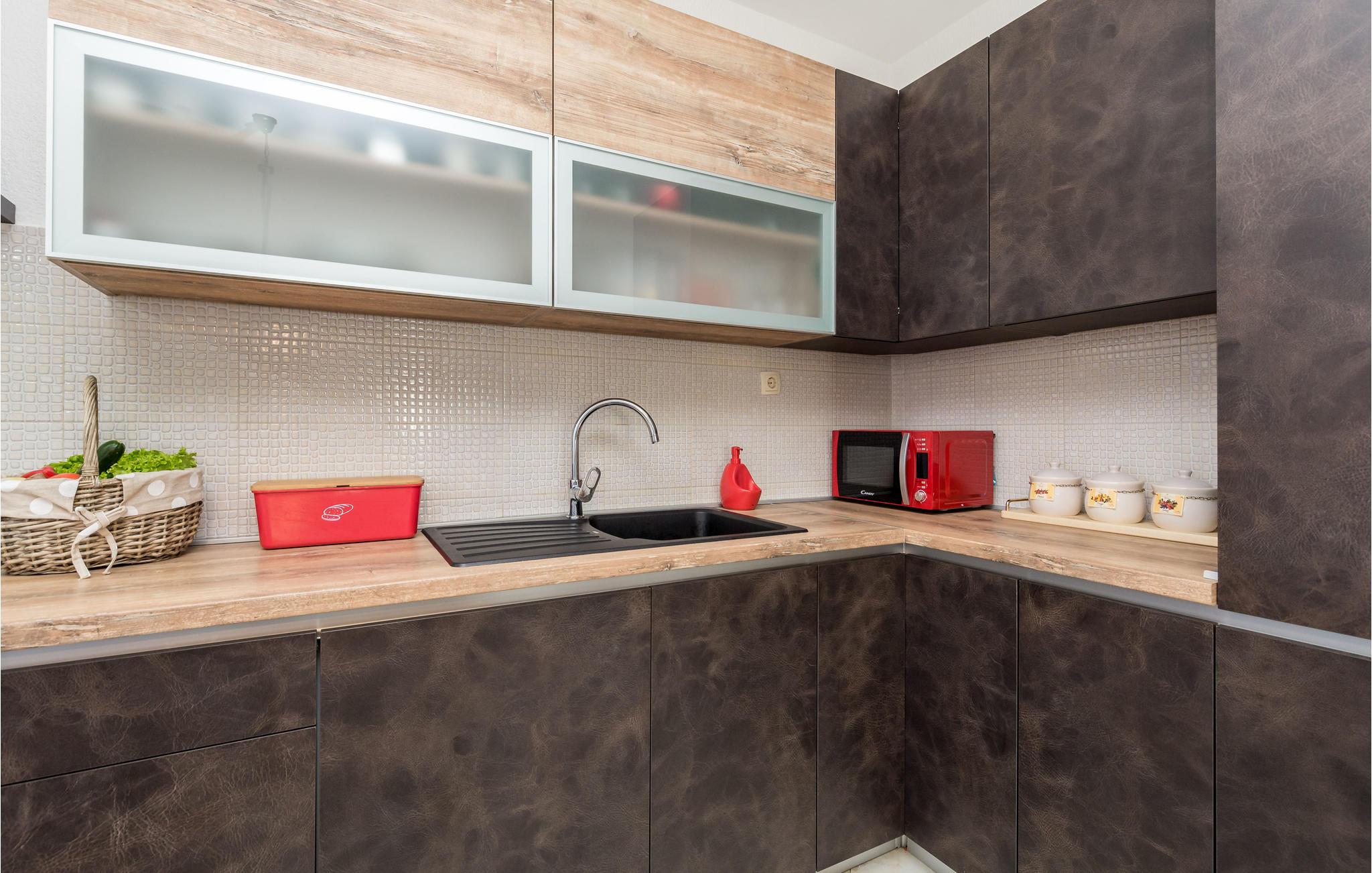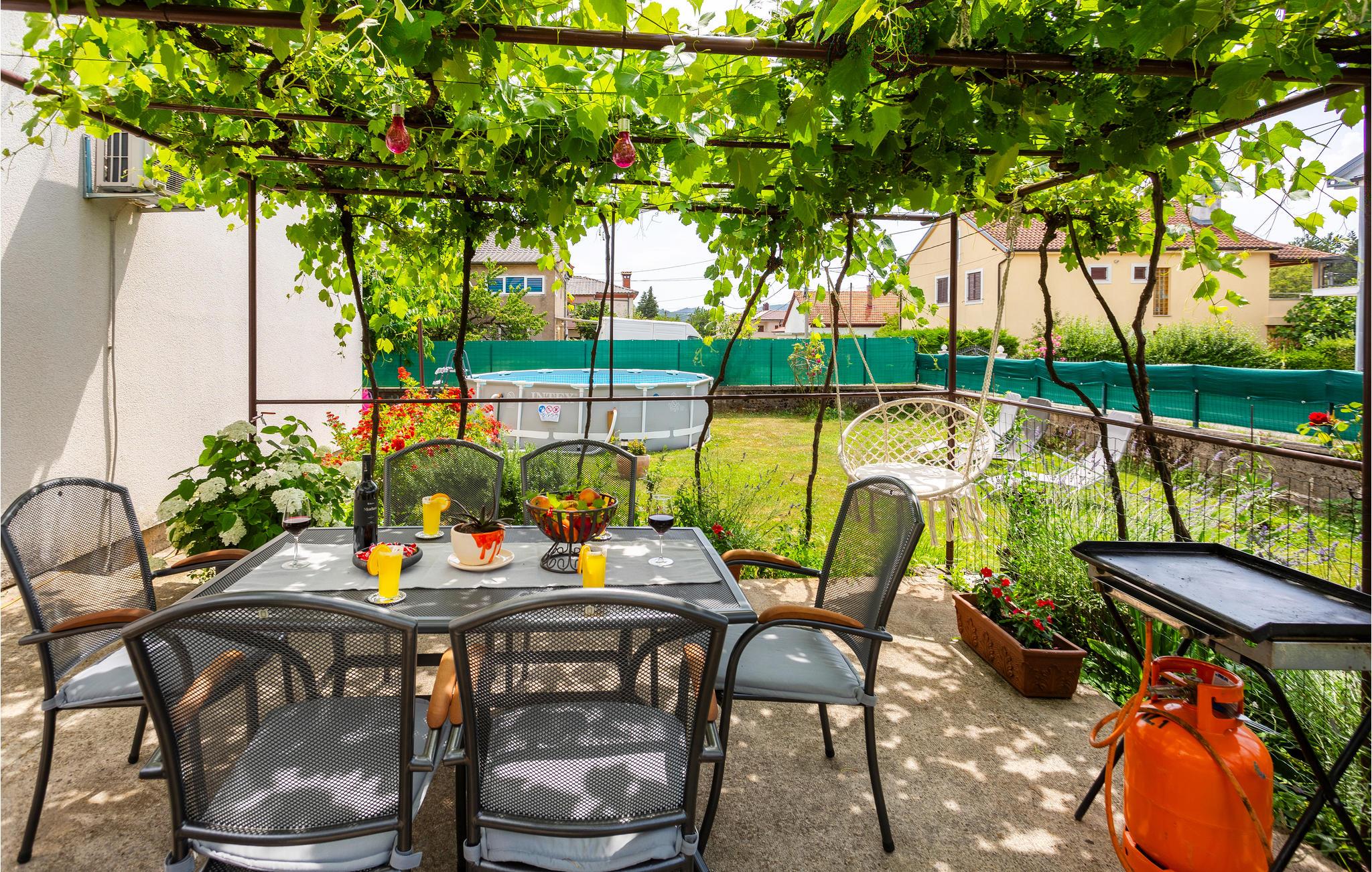 I baglandet af byen Rijeka, mellem havet og højlandet, er denne smukke lejlighed. Det ligger i stueetagen i et familiehus og er den eneste, der lejes ud. Swimmingpoolen tilbyder forfriskning på varme sommerdage. Den, samt grillen og den overdækkede terrasse, deles med husejere. I bil kan du hurtigt nå alle populære destinationer i området og nyde ferien fuldt ud. Rijeka har masser at byde på, så ligegyldig hvad ens interesser er, har byen uden tvivl noget for dig. Hvis du drømmer om at suge byens kultur og atmosfære til dig, bør du bruge tid på at besøge det imponerende slot Trsat, gågaden Korzo og markedet i Fiskehallen, Kroatiens nationalteater Ivan pl. Zajc og selvfølgelig må du ikke gå glip af at smage på de lokale specialiteter.