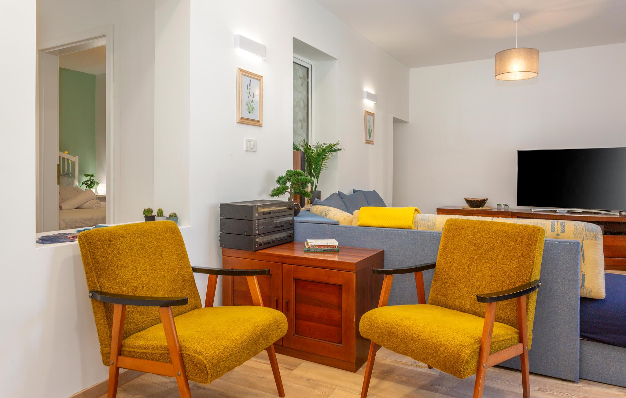 Forestil jer at vågne op om morgenen i en charmerende lejlighed i stueetagen, kun et skridt væk fra den blide lyd fra Rjecina-floden. Denne indbydende ferielejlighed kombinerer en hyggelig, vennefamilielig atmosfære med behagelig indretning og farvekoordinering. Start jeres morgen med en lækker morgenmad i spisekøkkenet eller slap af på sofaen om aftenen.