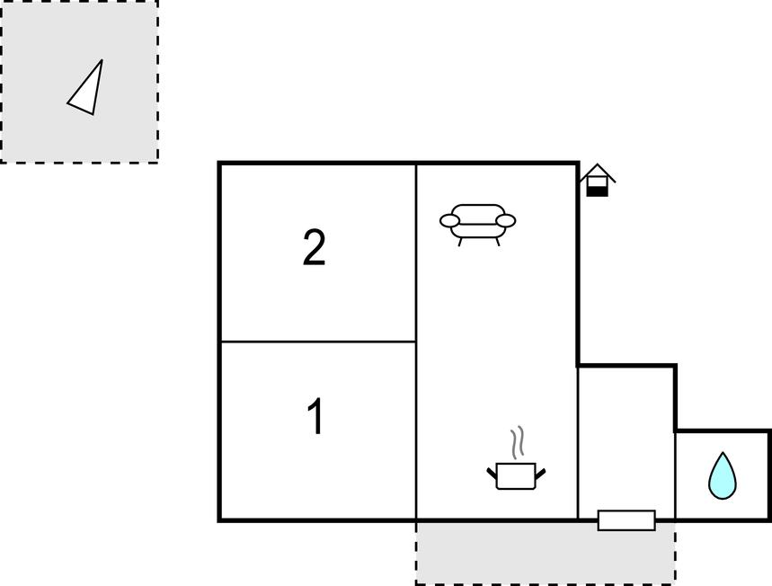 Opholdsstue/køkken - 1 Soveplads. (Sofa, madras eller lignende).