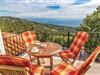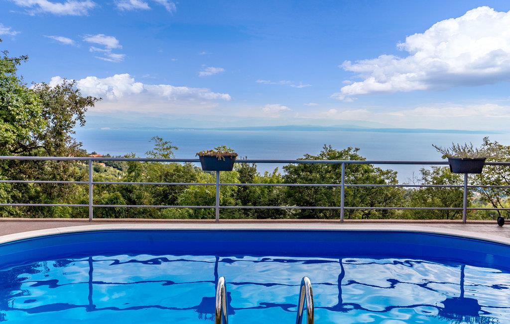 Fra den komfortable ferielejlighed kan I nyde den flotteste udsigt over havet, den rolige beliggenhed og poolen, som kun står til rådighed for jer. Her får I helt sikkert en dejlig og afslappende ferie. Ferieboligen har skråvægge med en lofthøjde på 120 cm og ligger på første sal i en privat ejendom med egen tilkørsel og indgang. Det andet badeværelse kan I finde i stueetagen, hvor poolen er. Den åbne terrasse er på første sal og den overdækkede terrasse er ved indgangen i stueetagen. Nyd den velplejede fælles have. I bil kommer I til kiesstrande og det krystalklare hav, hvor I også kan spille beachvolleyball og fodbold.