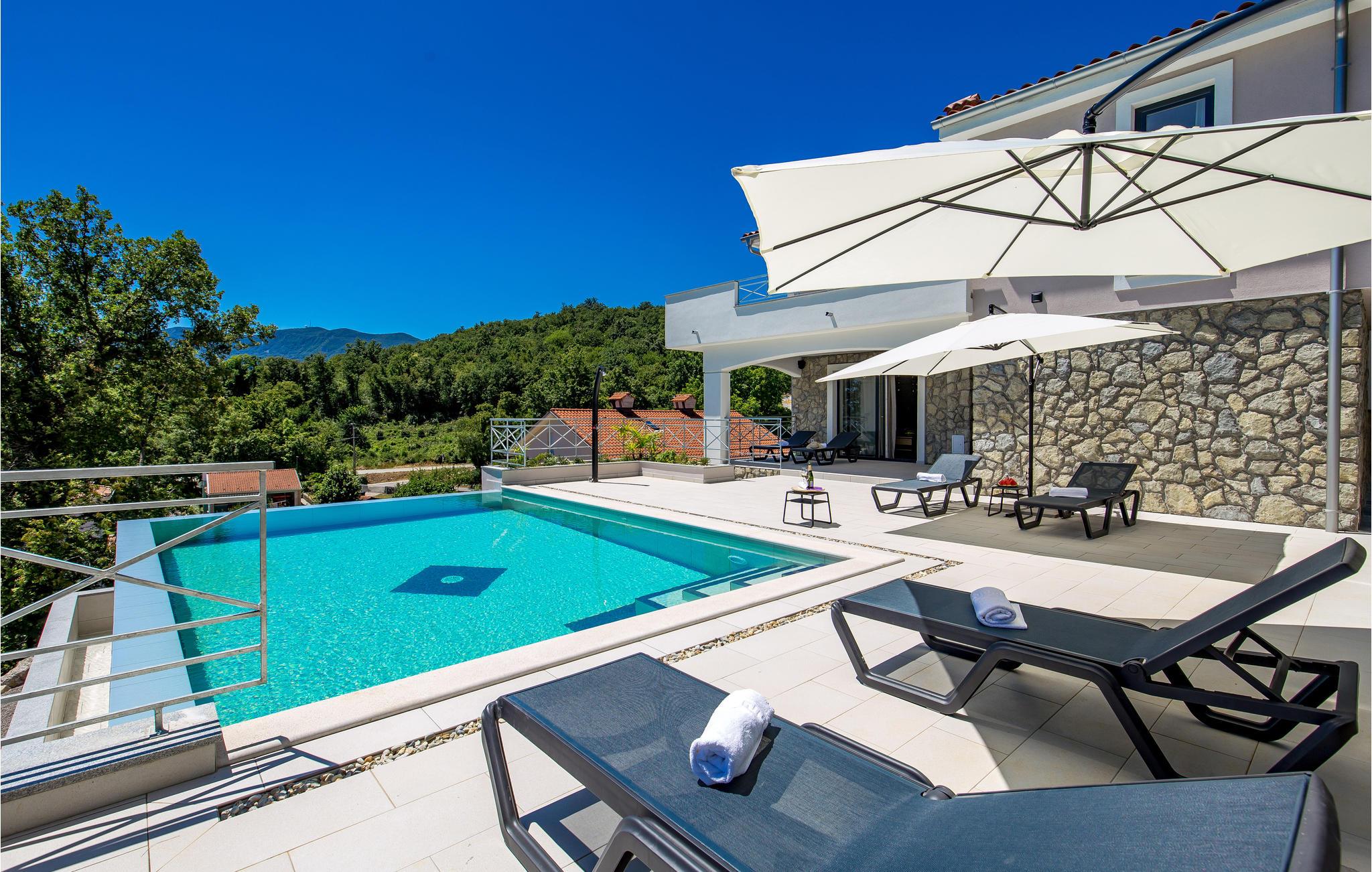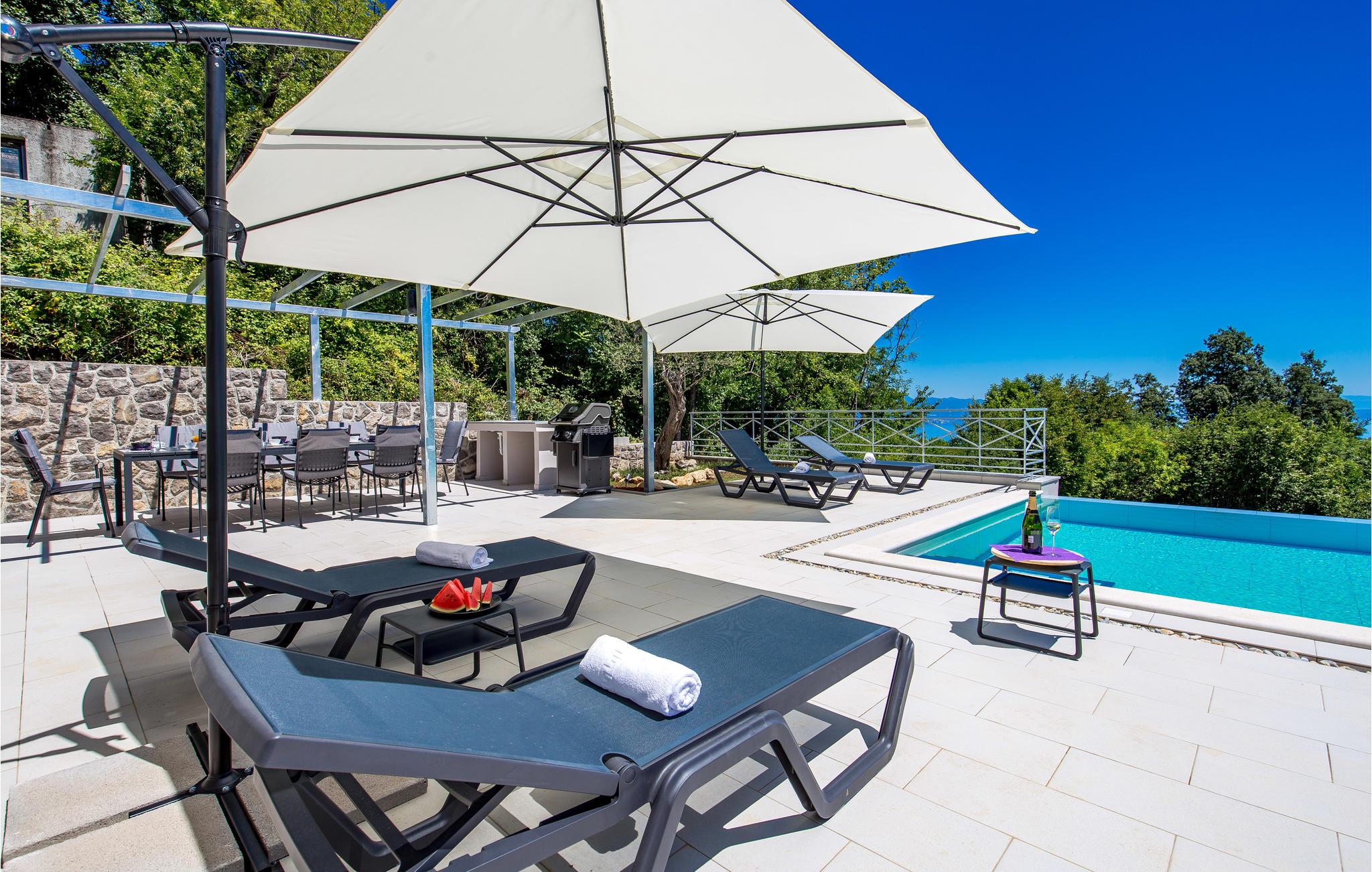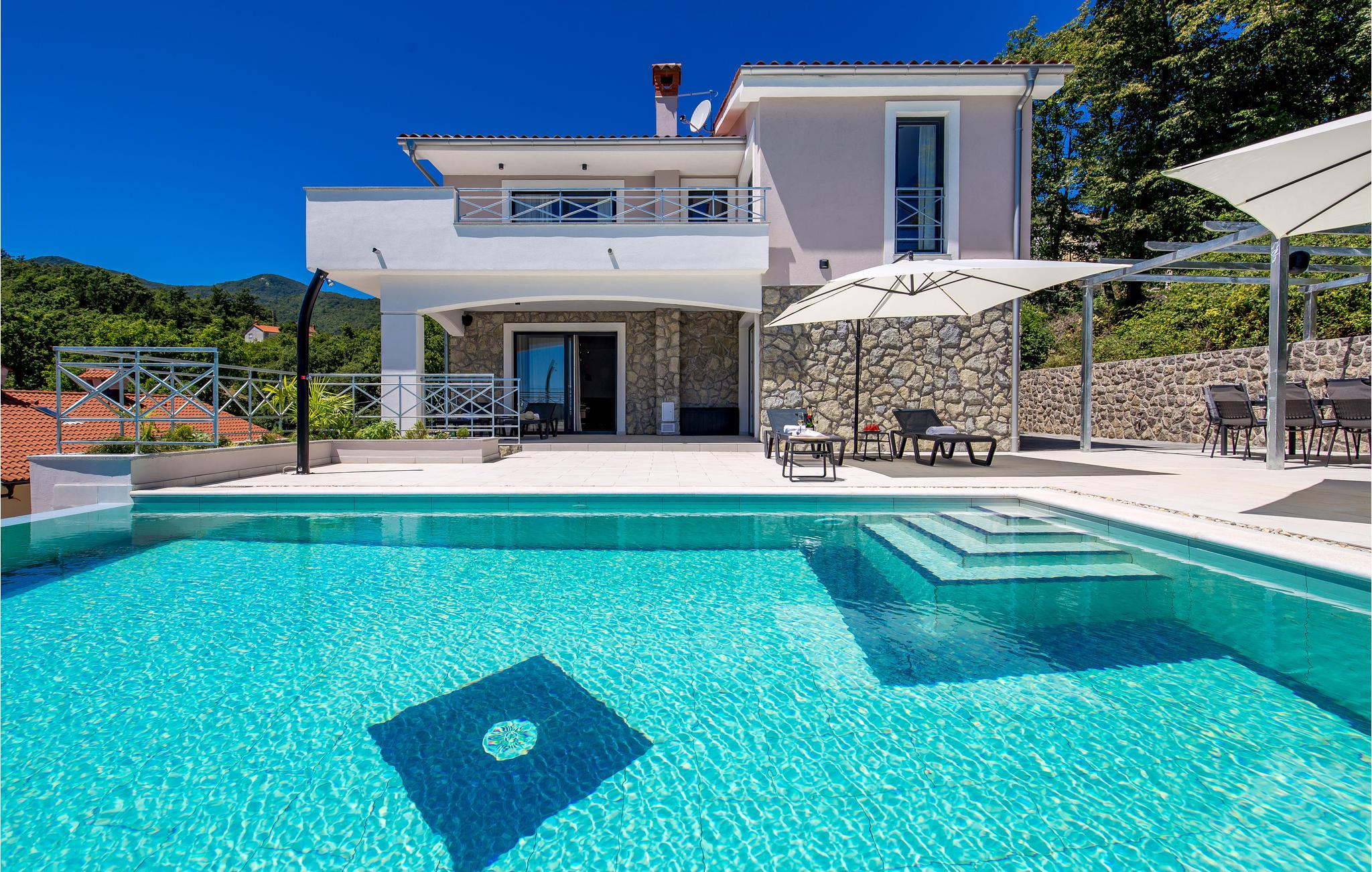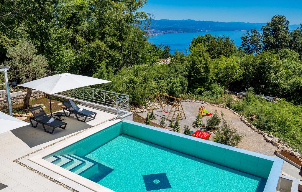 Langt fra byens travlhed, i smukke naturlige omgivelser over Opatija og Icici, ligger dette feriehus med swimmingpool. Huset er smukt og harmonisk indrettet. Tag en dukkert i den udendørs pool eller slap af med en god bog på en terrassen med den vidunderlige udsigt over Rijeka og Kvarner.