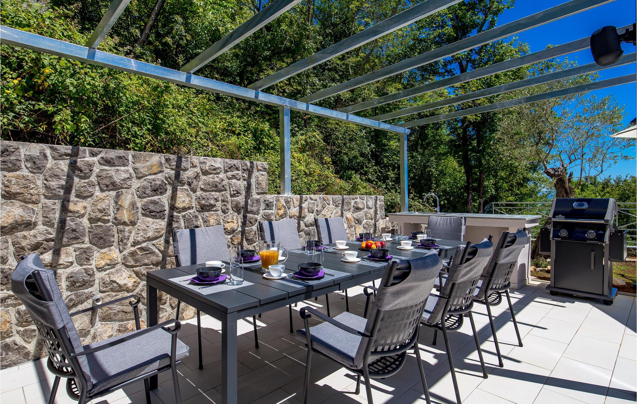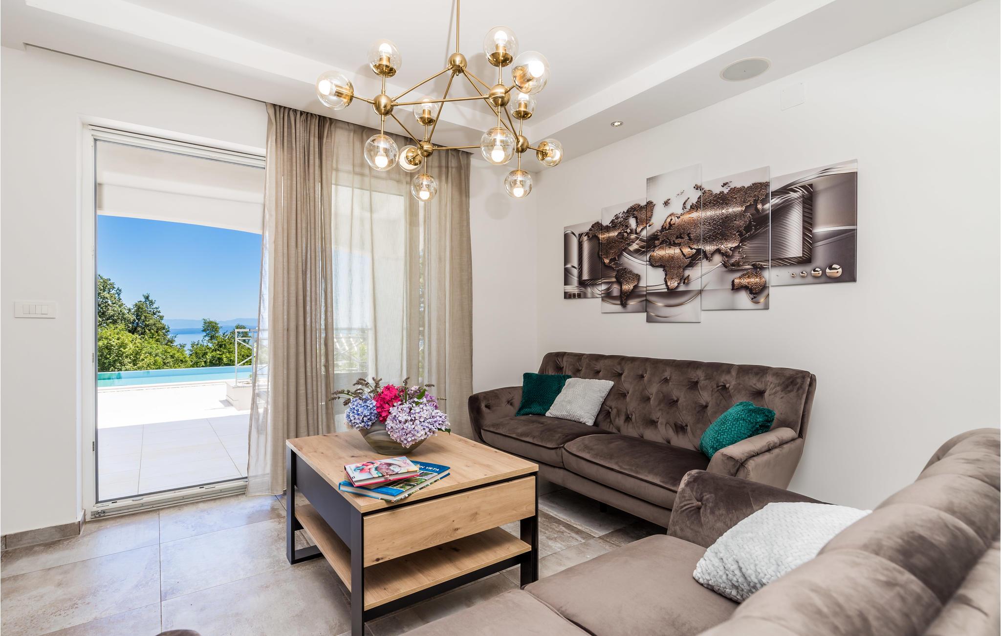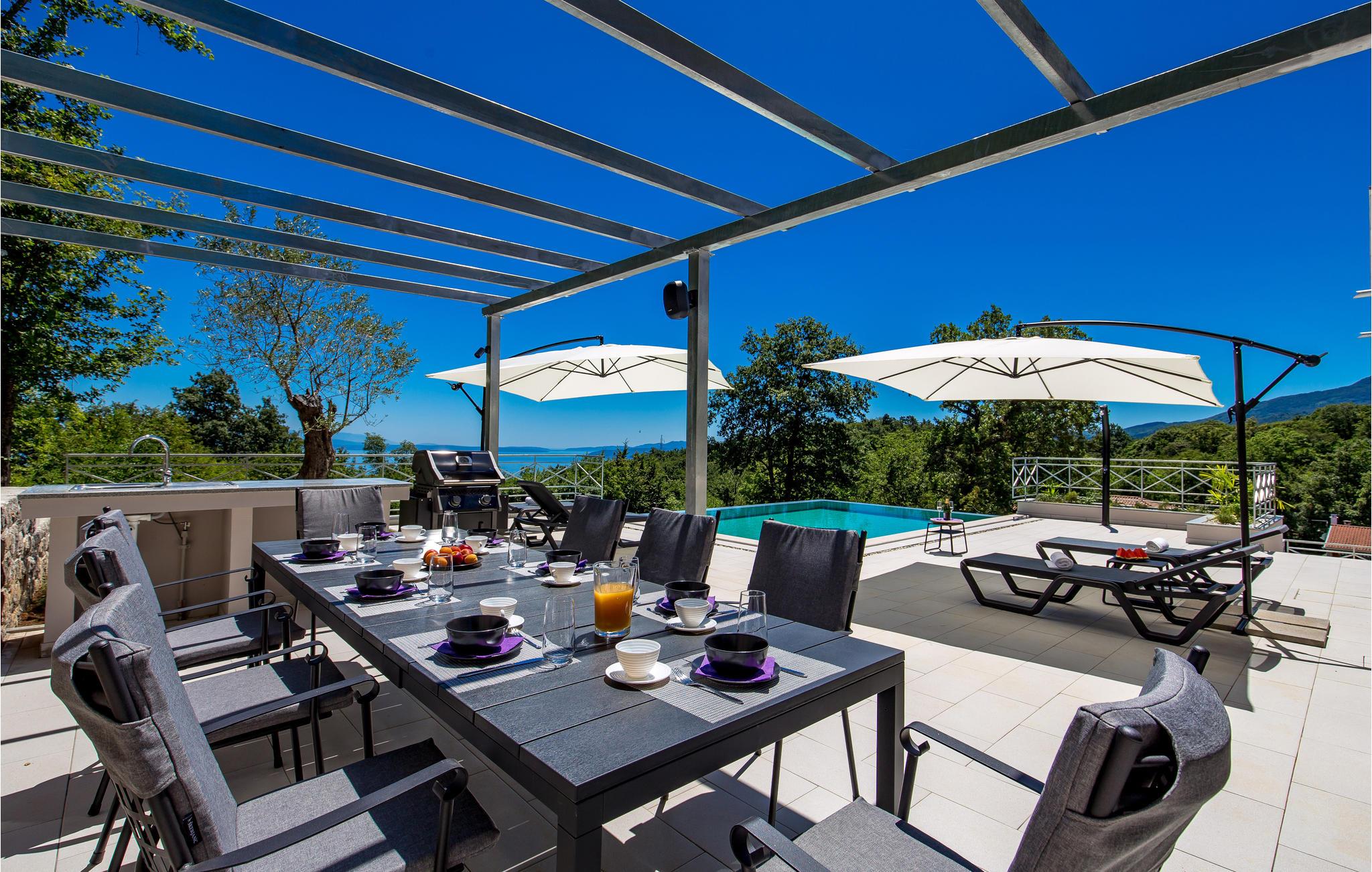Langt fra byens travlhed, i smukke naturlige omgivelser over Opatija og Icici, ligger dette feriehus med swimmingpool. Huset er smukt og harmonisk indrettet. Tag en dukkert i den udendørs pool eller slap af med en god bog på en terrassen med den vidunderlige udsigt over Rijeka og Kvarner.