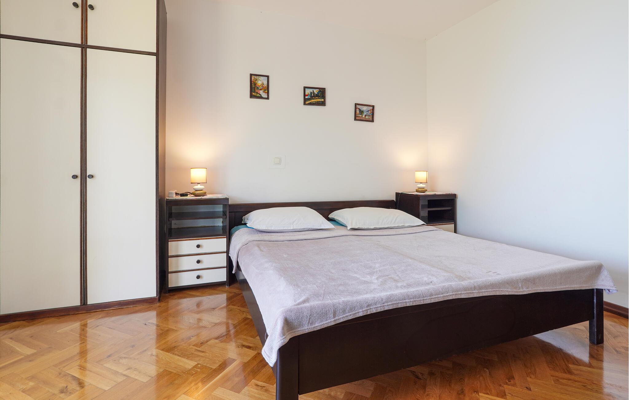 Velkommen til denne rummelige ferielejlighed, som vil forkæle jer med smuk udsigt og masser af plads til at underholde venner eller familie. Tilbered lækre måltider lavet af lokale råvarer, og planlæg jeres aktiviteter ved det indbydende spisebord, hvor I kan streame en spændende film om aftenen.