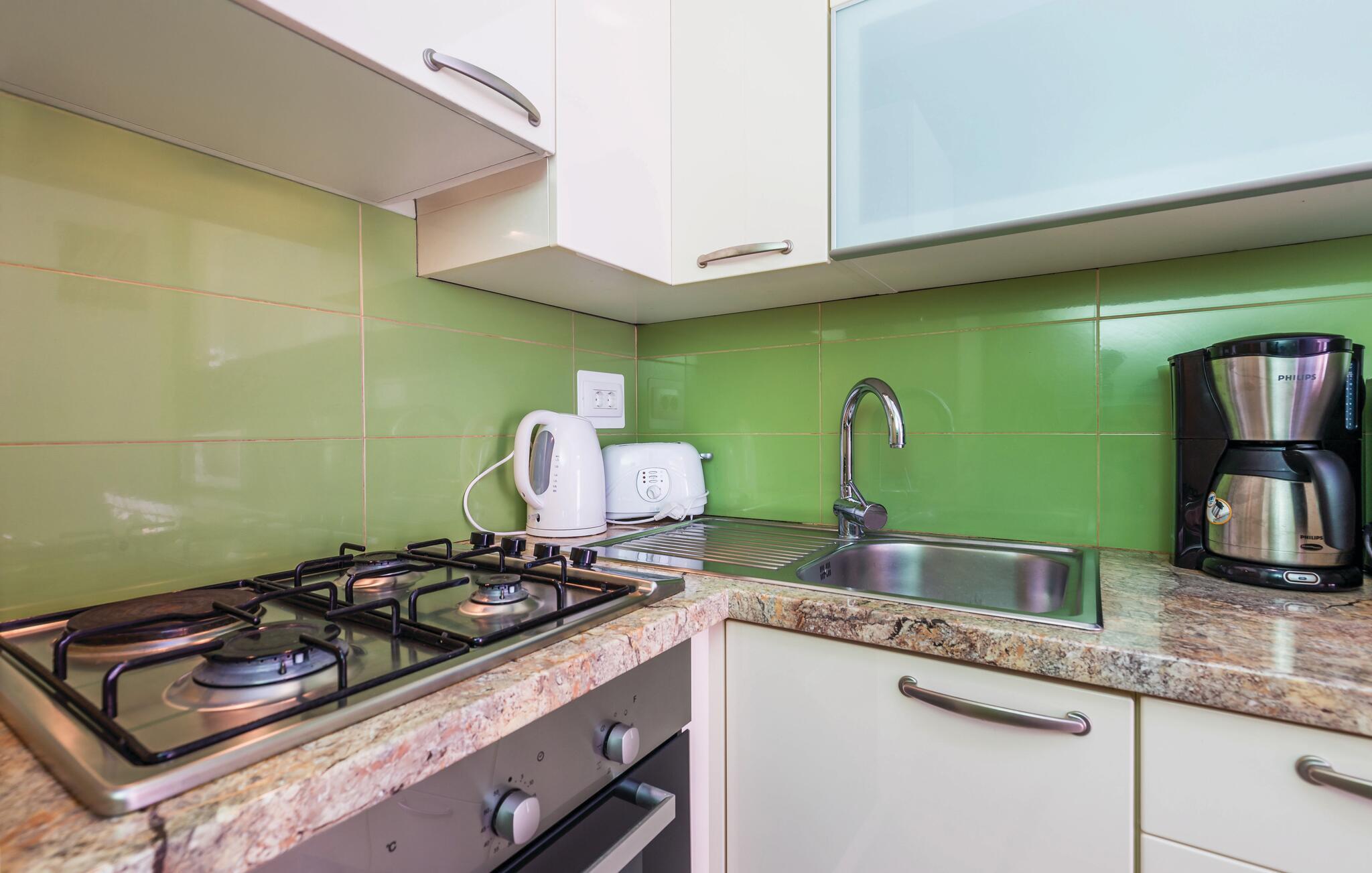 Lejligheden har en rummelig terrasse, hvor du kan slappe af hele dagen, især på de behagelige, varme sommeraftener.