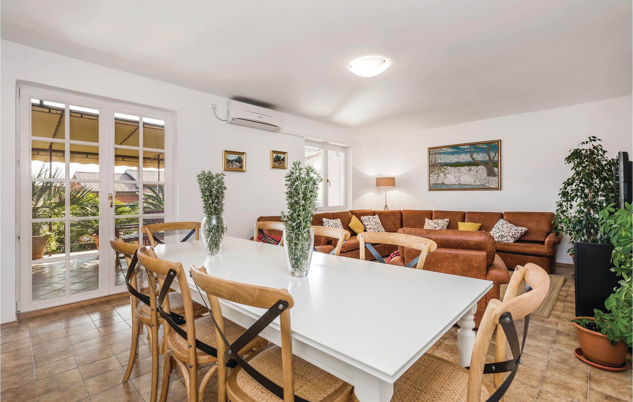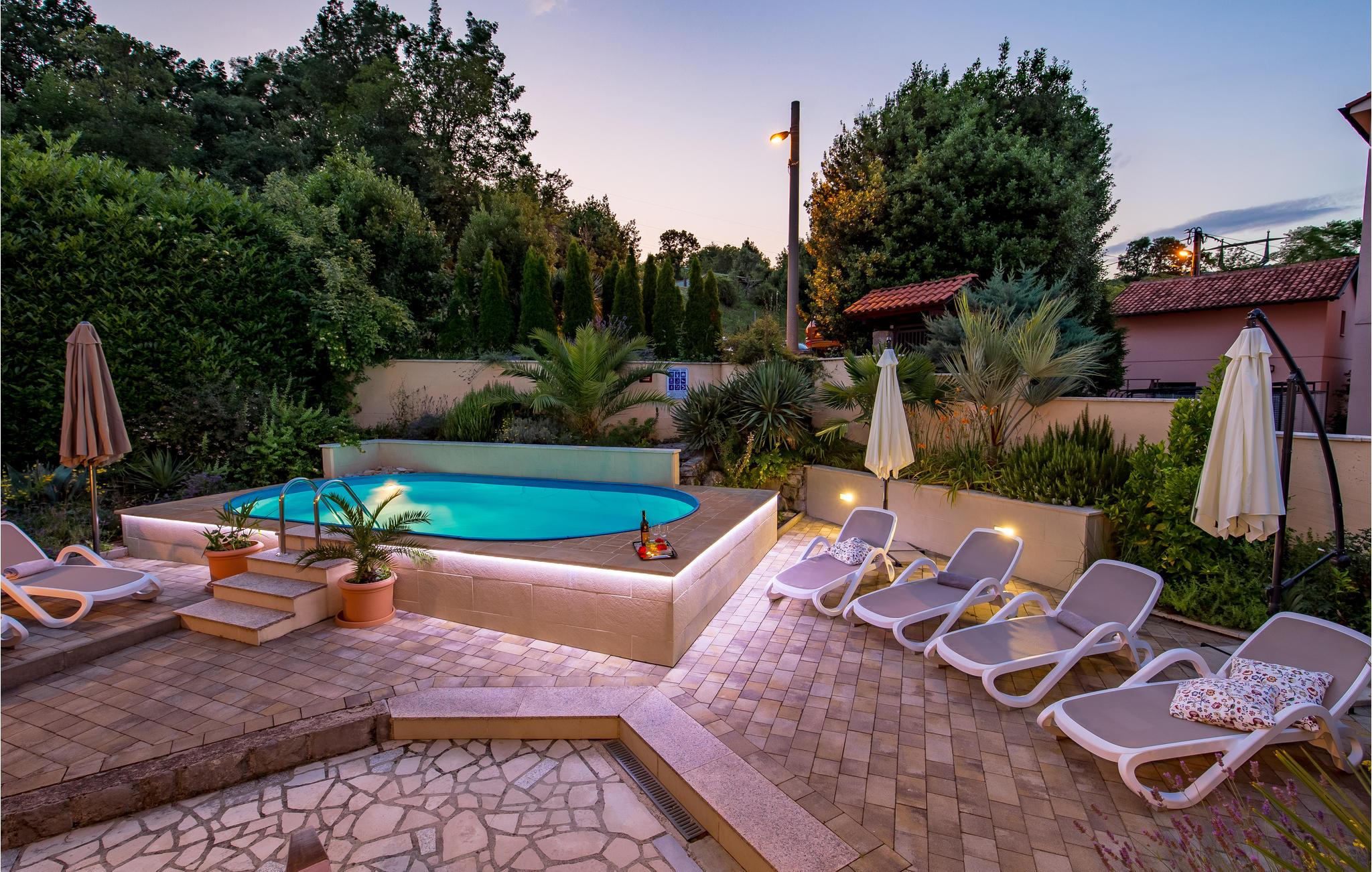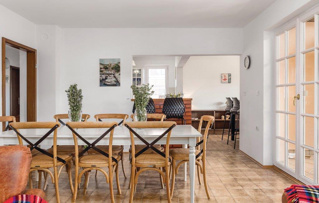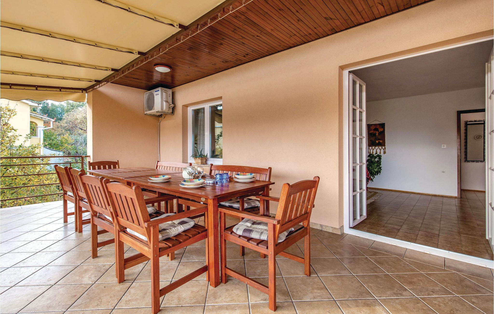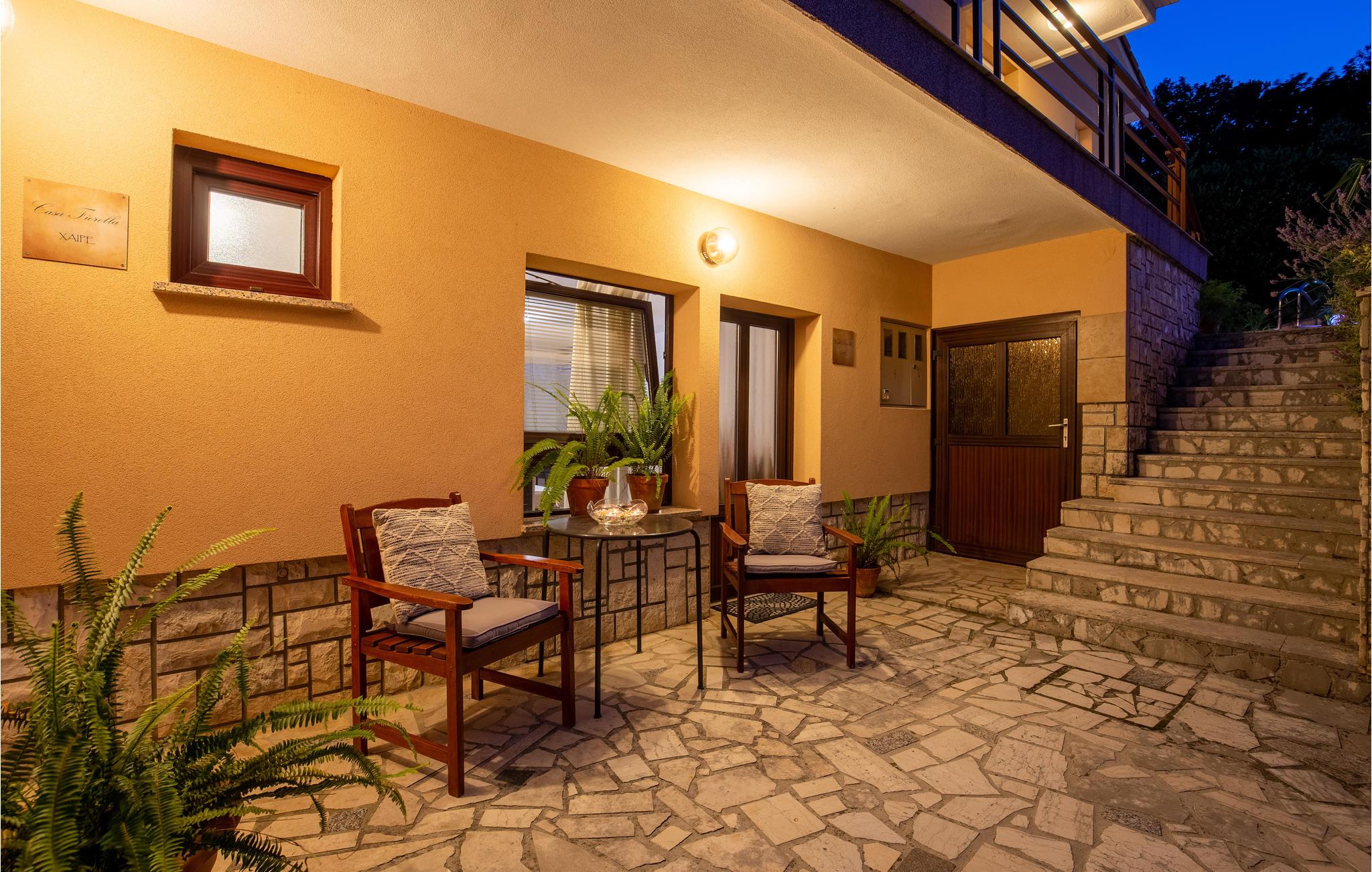 Bo i en grøn og fredelig bydel i Ika. Underetage og første sal i dette hus, er forbundet med udendørs trapper. I stueplan er der to lejligheder, på første sal ligger en større lejlighed med fællesrum med god plads til alle. I hver lejlighed er der et køkken og et badeværelse. På øverste etage er der også en stor terrasse og i haven er der grill og forskellige legeredskaber. Ika er en lille badeby ved den livlige og berømte riviera ved Opatija. I kan bade fra en af de dejlige strande i byerne Ika, Medveji, Moscenica Draga og Brsec.