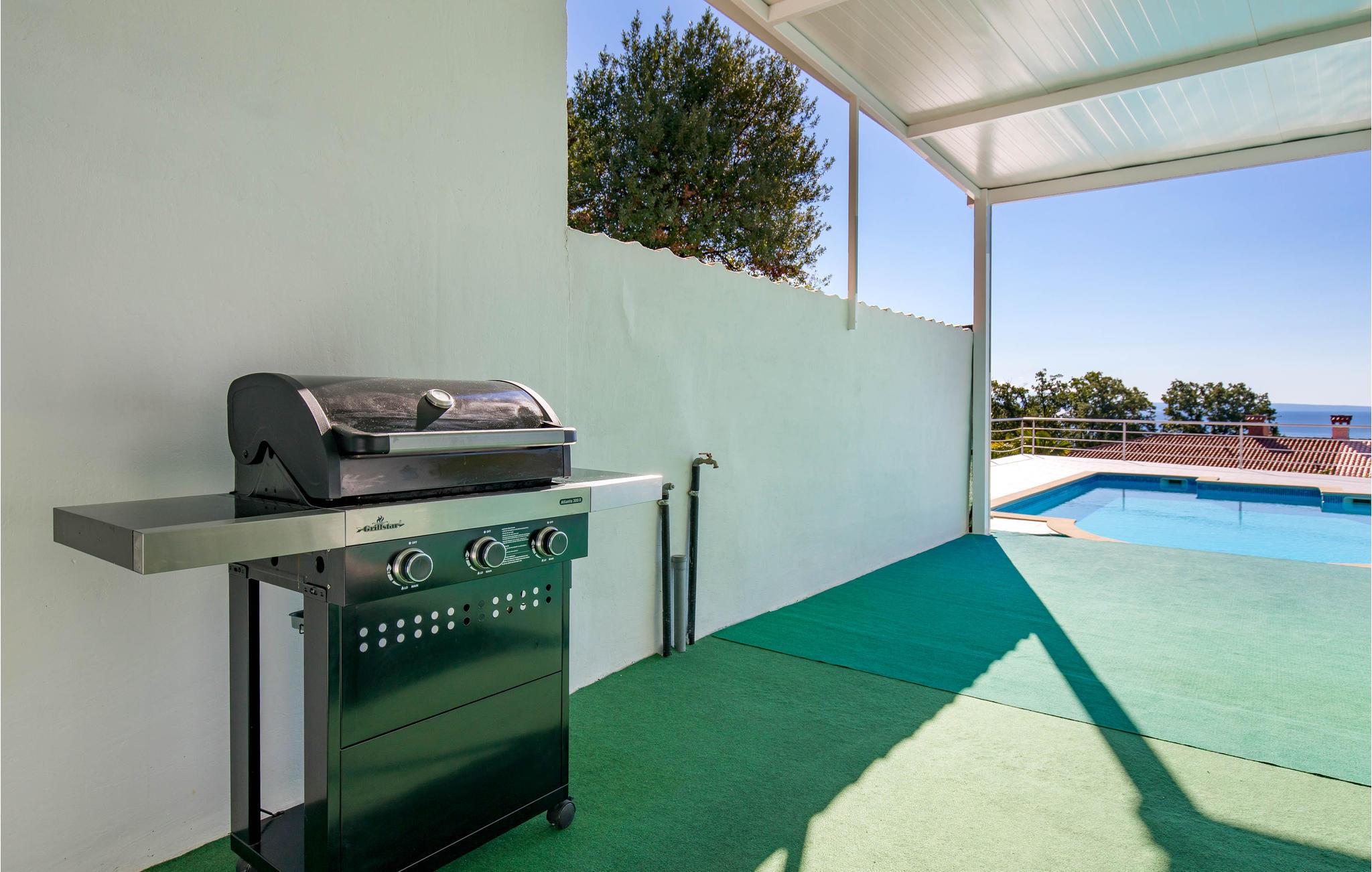 Det praktiske sommerhus tilbyder jer et skønt hjem under jeres ferie. Huset er ideelt til 2 par eller en lille familie med børn. Her kan I slappe af og bruge en masse tid udendørs. Grunden er indhegnet med stor overdækket terrasse og solterrasse ved poolen. Fra huset og fra den store terrasse kan I nyde en smuk panoramaudsigt over havet og øerne Cres og Krk. I vil bruge det meste af jeres tid på at nyde naturen i swimmingpoolen under solen.