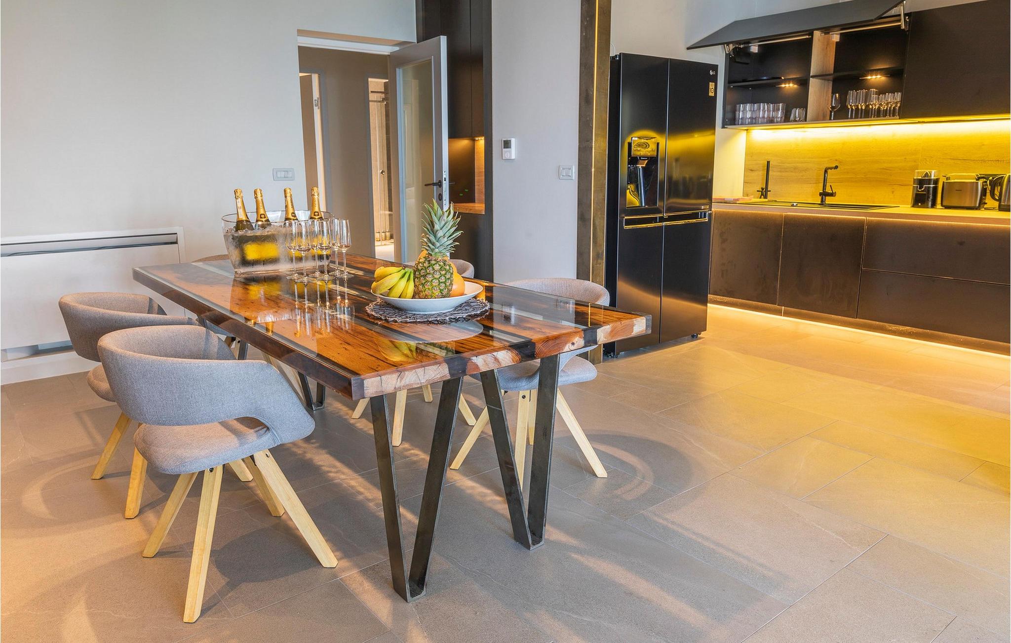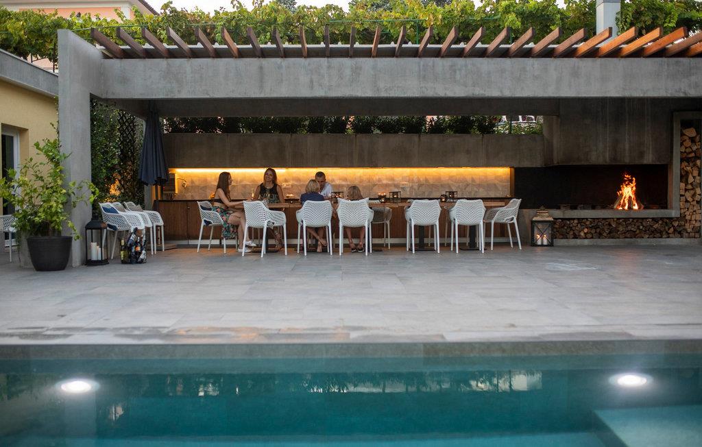 På skråningerne af Mount Ucka ligger den smukke fiskerby Ika, hvor du finder vores charmerende Villa Opatija Hills Ika. Slap af i den stilhed, du finder i denne smukke by, og forkæl dig selv med en vidunderlig ferie i hjertet af Opatija Riviera. Denne smukke villa byder på 490 m2 plads til 12 personer fordelt på 7 skønne soveværelser. Villaen består af i alt 4 luksuriøst indrettede lejligheder på hver sin etage. Apartment-1 (Deluxe Romantic Apartment) har et soveværelse og et badeværelse med regnbruser, mens den rummelige Apartment-2 (Luxurious Artistic Designer Apartment) har 2 soveværelser og to smukt dekorerede badeværelser. Opholdsområdet falder perfekt ind i terrassen og det luksuriøse designer-spabad (90 cm dybt). Den tredje og største lejlighed (Contemporary Penthouse) har 3 soveværelser, 2 luksuriøst udstyrede badeværelser med følelsesmæssige brusere og et ekstra toilet. Den sidste fjerde lejlighed i denne smukke villa (Contemporary Cozy Apartment) er en bungalow med en afsondret haveterrasse, en separat stue med køkken, et soveværelse og et en-suite badeværelse. Du vil blive overrasket over den perfekt integrerede, smukke overløbspool med en bredde på 3,5 x 10 m og en dybde på 140 cm (opvarmet på forespørgsel). Den anden overløbspool (10 m2) er udstyret med gejsere, 2 vandfald, 4 massagestillinger og et cirkulerende filter/desinfektionssystem på 3 niveauer (opvarmet). Også tilgængelig for vores gæster er det fantastiske Sundance Spa-boblebad (Marin 880-serien), den udendørs kulgrill og et spisebord, ideelt til aftensammenkomster over et glas god vin. Villaen er fuldt indhegnet og tilbyder intimitet til vores gæster. Gæsterne har også 4 parkeringspladser i gården, og de kan parkere så mange, som de har brug for lige foran gården. Byen Ika var engang et paradis for den østrig-ungarske elite, i dag er den temmelig udsmykket med nye og moderne villaer og et af de mest luksuriøse hoteller i Kroatien. På stedet kan du prøve forskellige sportsaktiviteter fra svømning, dykning eller fiskeri til cykling, gåture eller vandreture. Villaværterne kan give dig en omfattende liste over de bedste taverner og restauranter i området eller organisere en privat kok til at tilberede lokale delikatesser i villaens privatliv. Denne fiskerby er stolt af sin århundreder gamle tradition inden for skibsbygning og fiskeri og er et studentercenter for hotel- og turismeledelse. Besøg en lokal fiskeaften og beundre de traditionelle fiskespecialiteter og traditioner på dette smukke sted. Kun få minutters kørsel fra smukke strande og omgivet af århundreder gamle egeskove, er Villa Opatija Hills Ika den perfekte destination, hvis du leder efter fred og fornøjelse. Bemærk venligst, at denne ejendom kun accepterer ungdomsgrupper eller polterabender mod betaling af et refunderbart depositum. Er I en ungdomsgruppe eller polterabend, vil I blive bedt om at betale depositum ved ankomst. Ethvert beløb, der kræves for at reparere eventuelle skader på boligen forårsaget af dig under dit ophold, vil blive trukket fra depositumet og derefter returneret til dig.