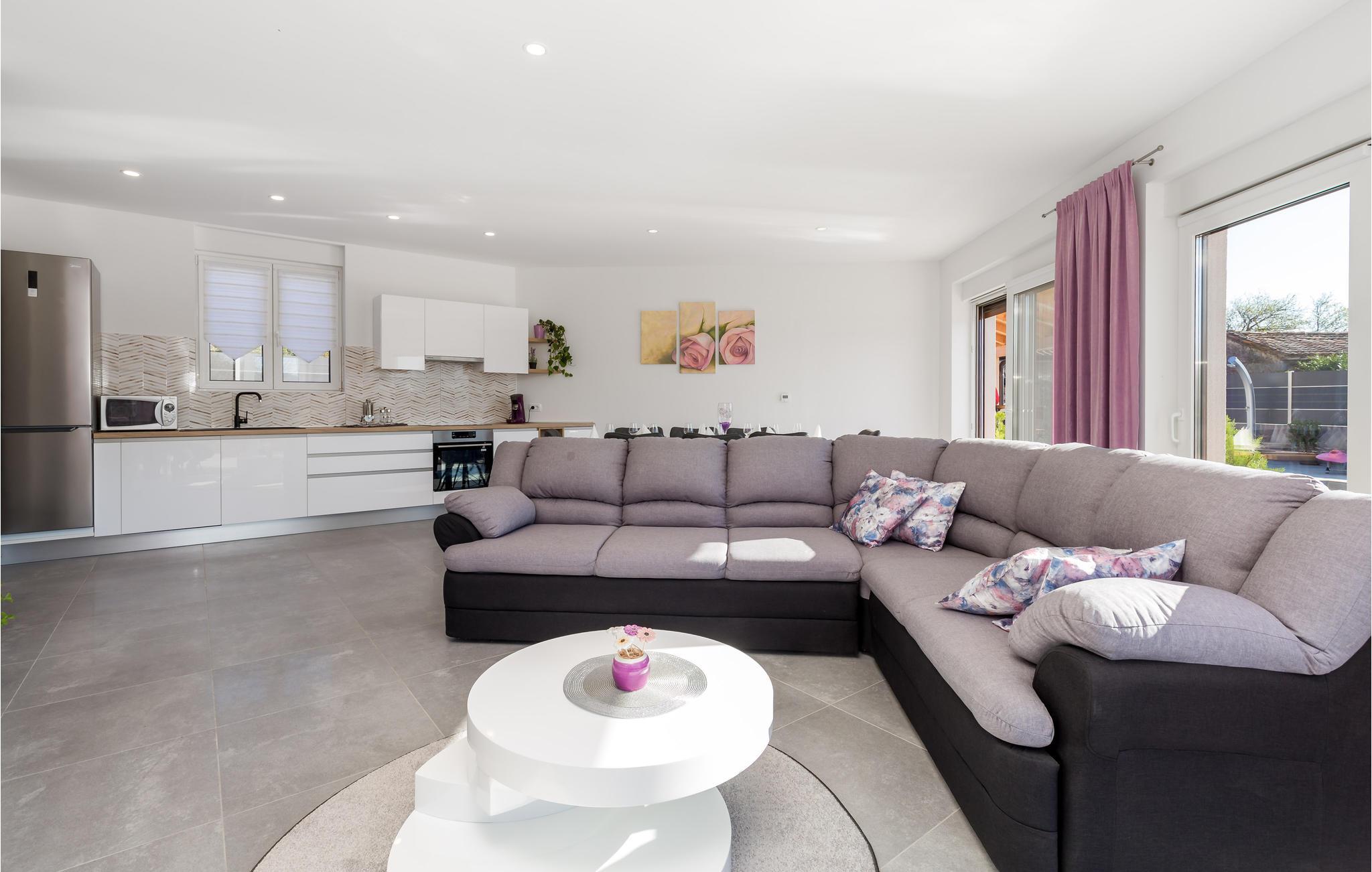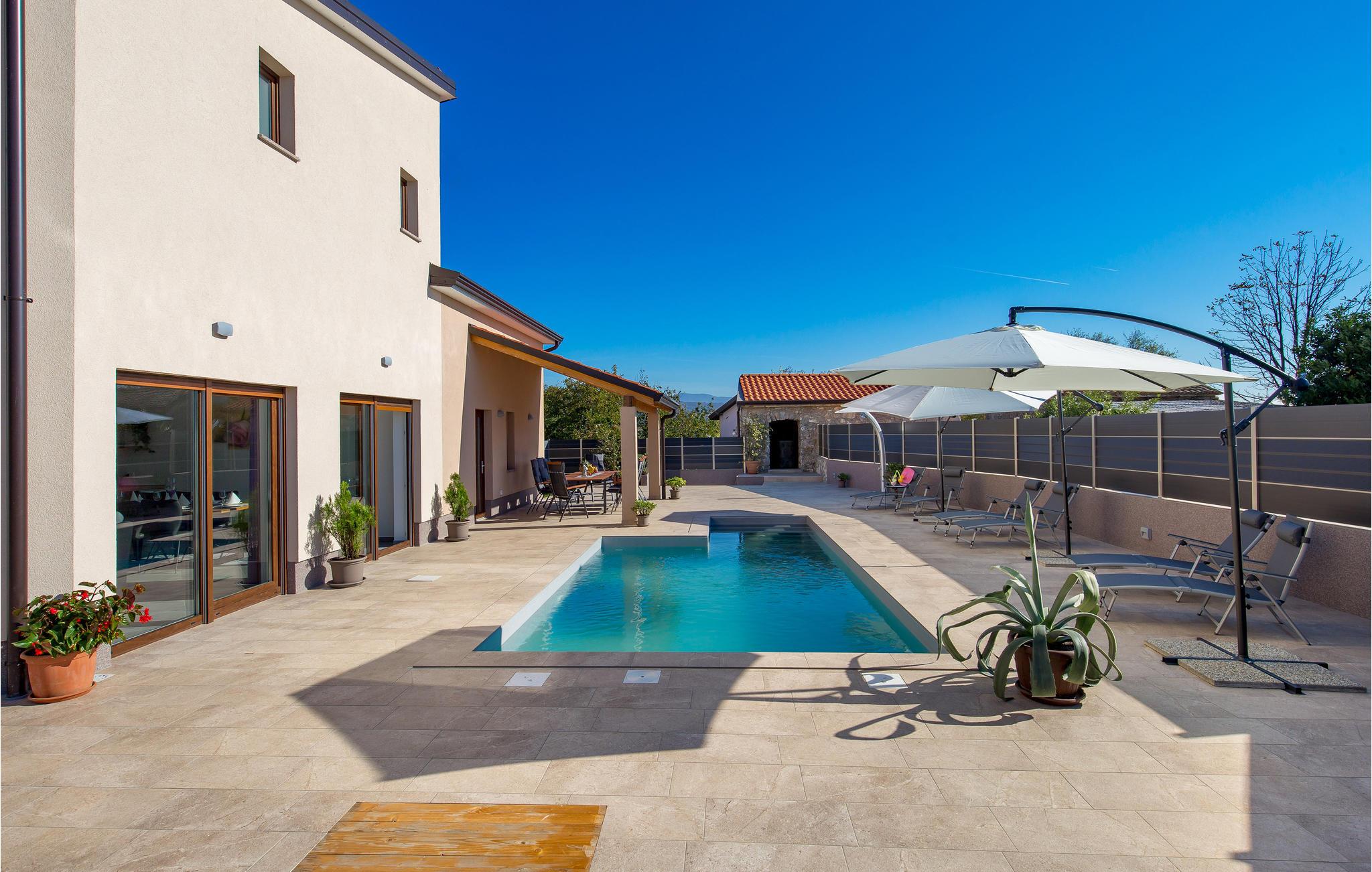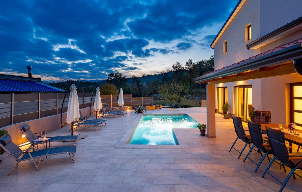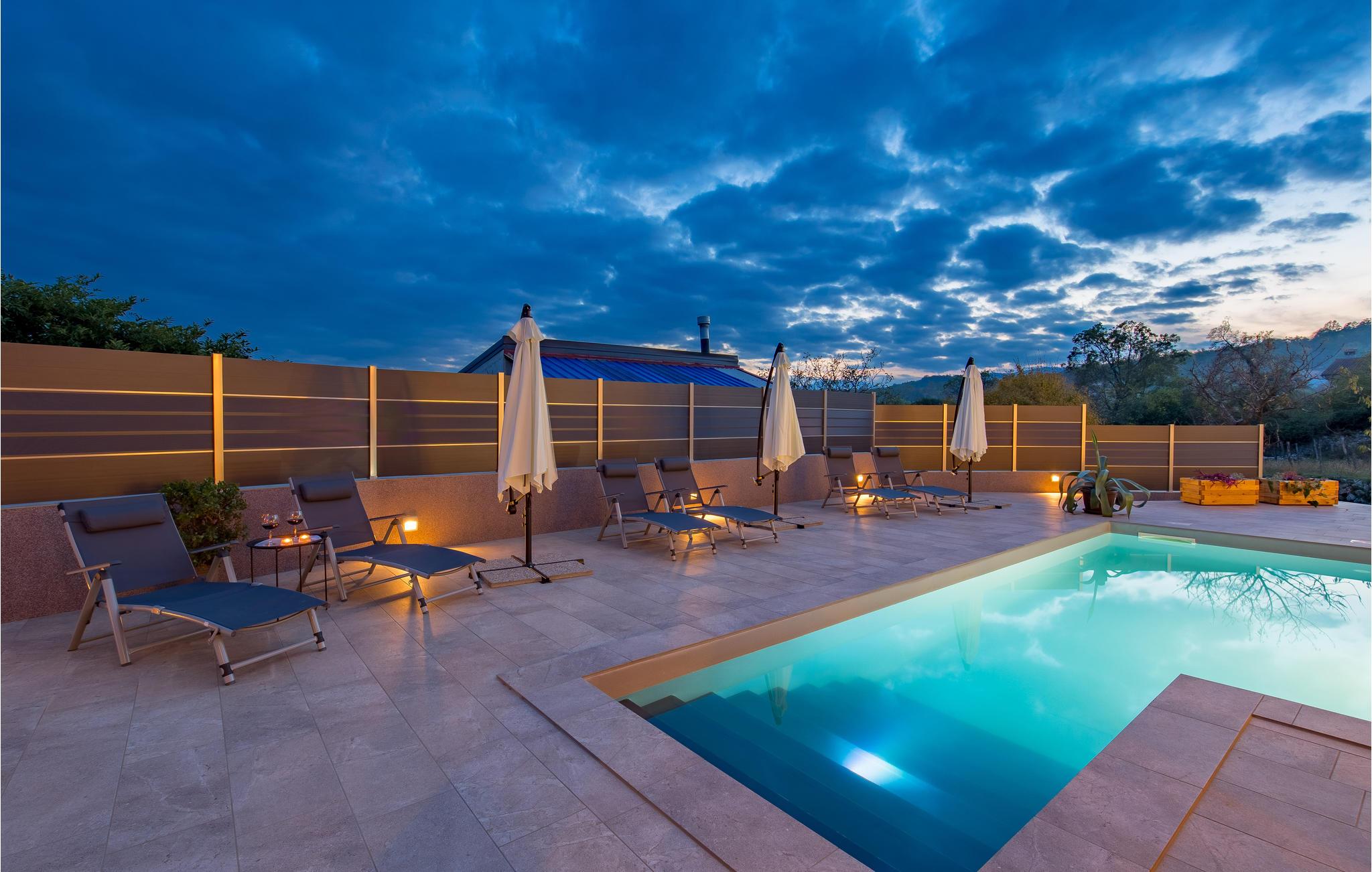 Glæd dig til en afslappende og behagelig ferie i dette familievenlige, ultramoderne og smukt indrettede feriehus. Hop ind i den private pool om morgenen og nyd morgenkaffen på terrassen. Slap af på liggestolene med en iskold forfriskning, mens dine børn leger på den indhegnede ejendom.